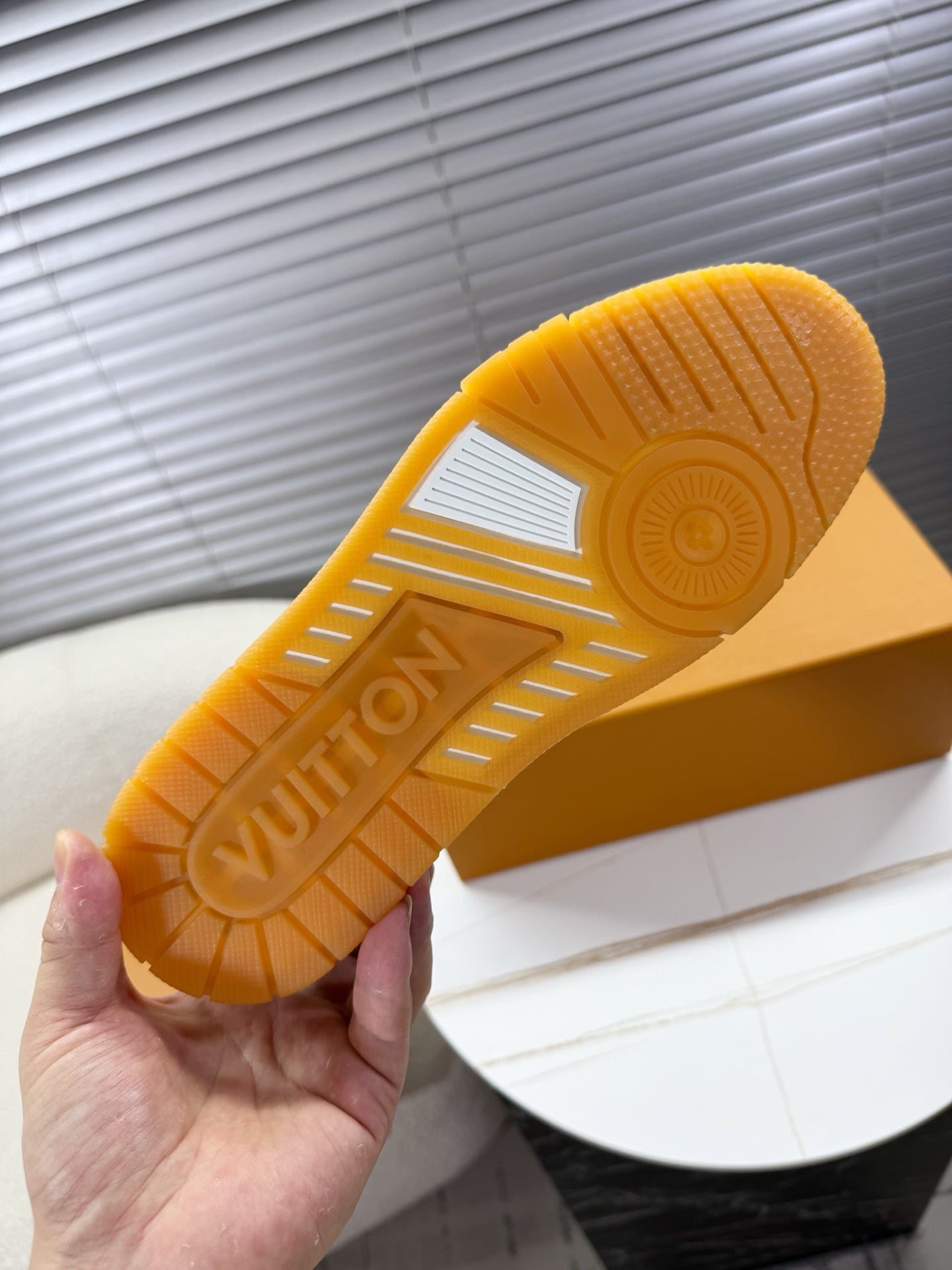 LV 1AHTGR Trainer Sports Shoes White Orange Grained Calfskin 511758