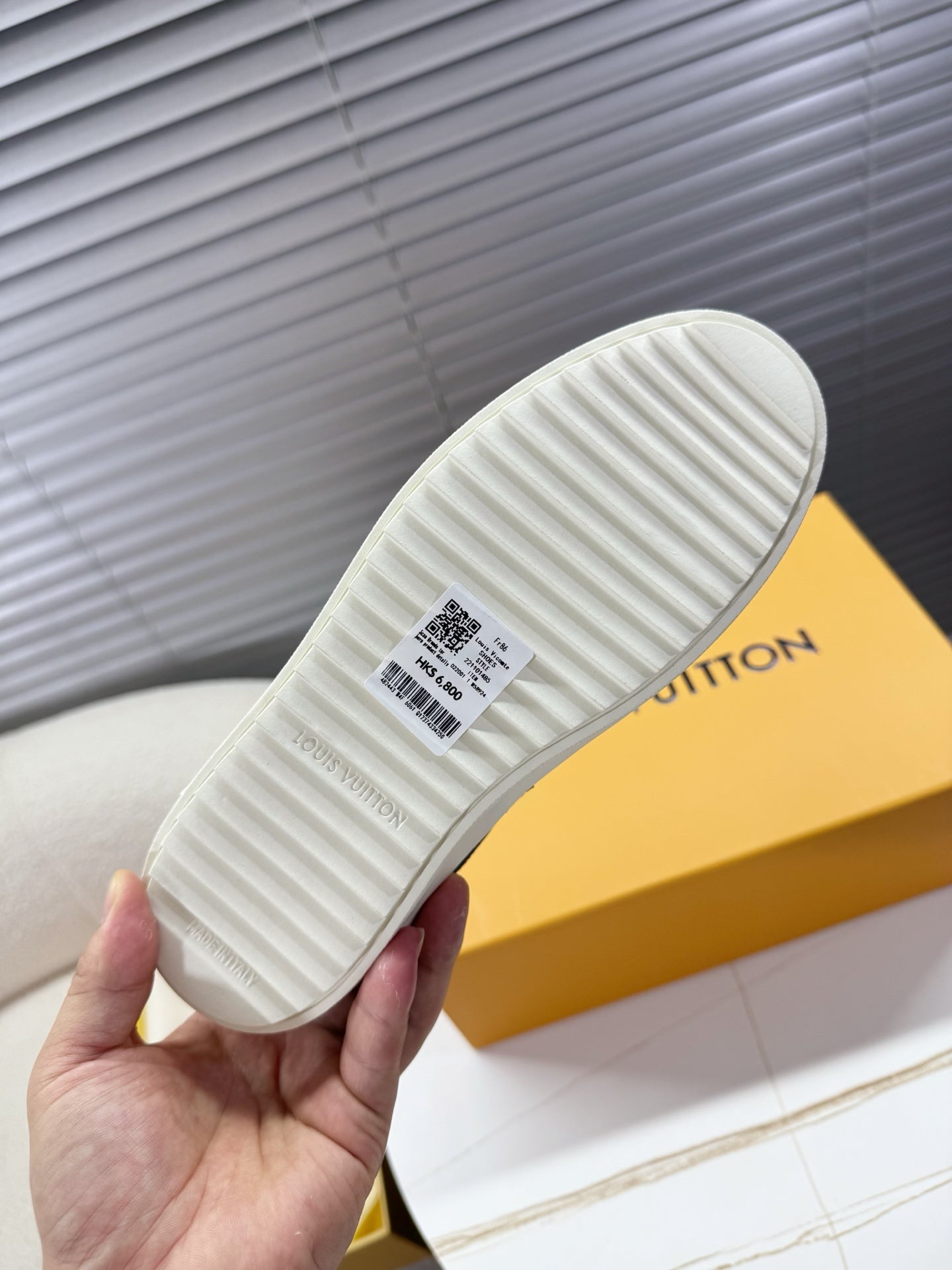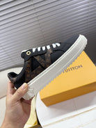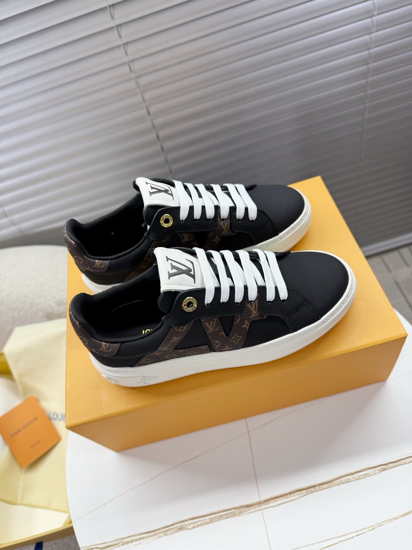 LV 1AIEGO Time Out Sneaker Black Cowhide Brown Monogram Canvas 511749