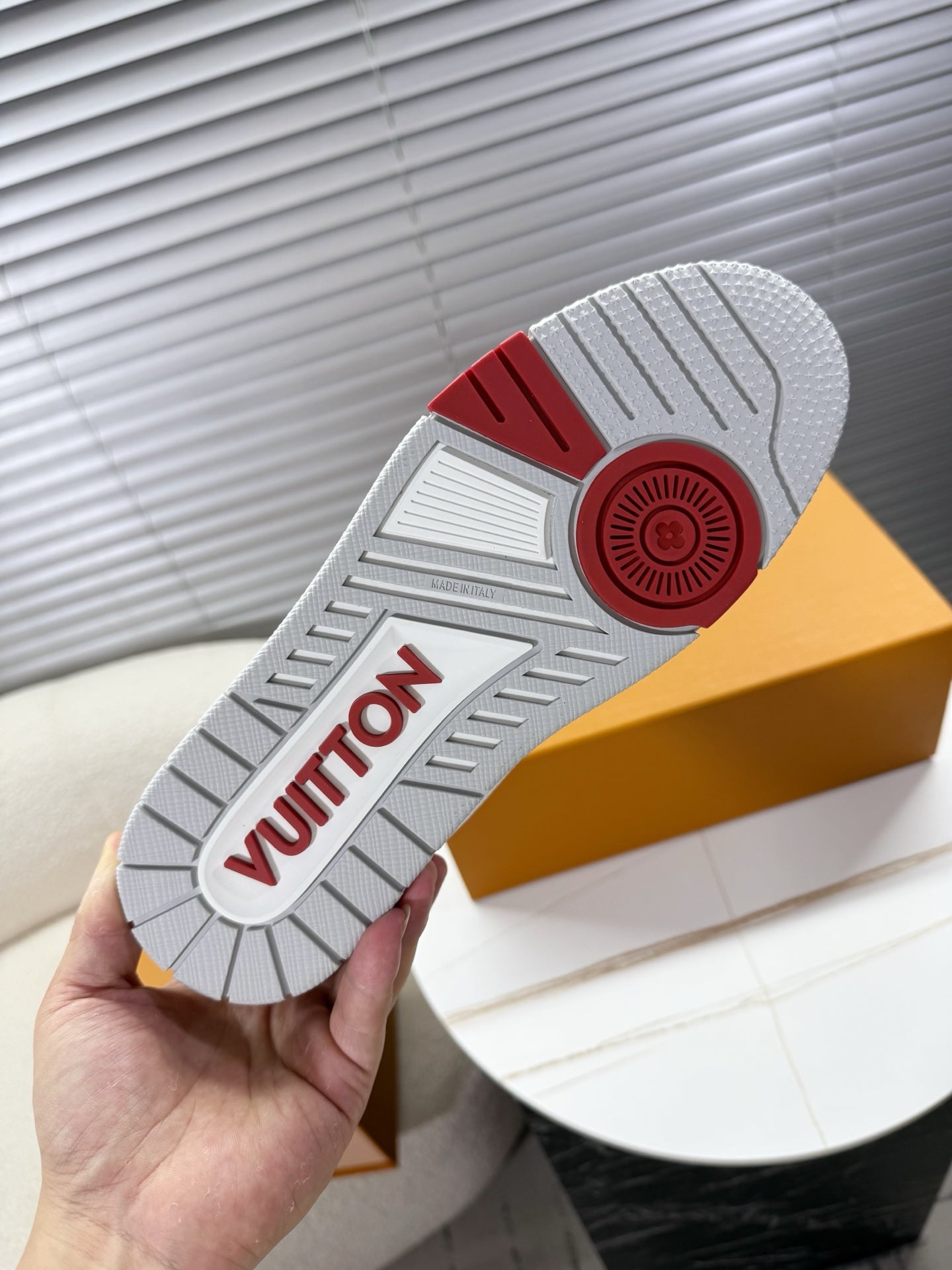 LV 1AIJ41 Trainer Sports Shoes White Red Grained Calfskin 511753