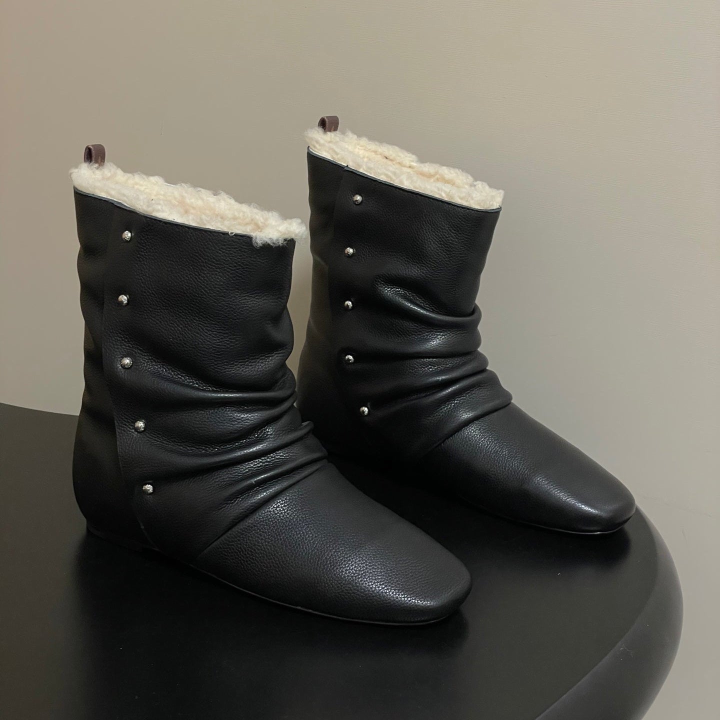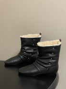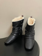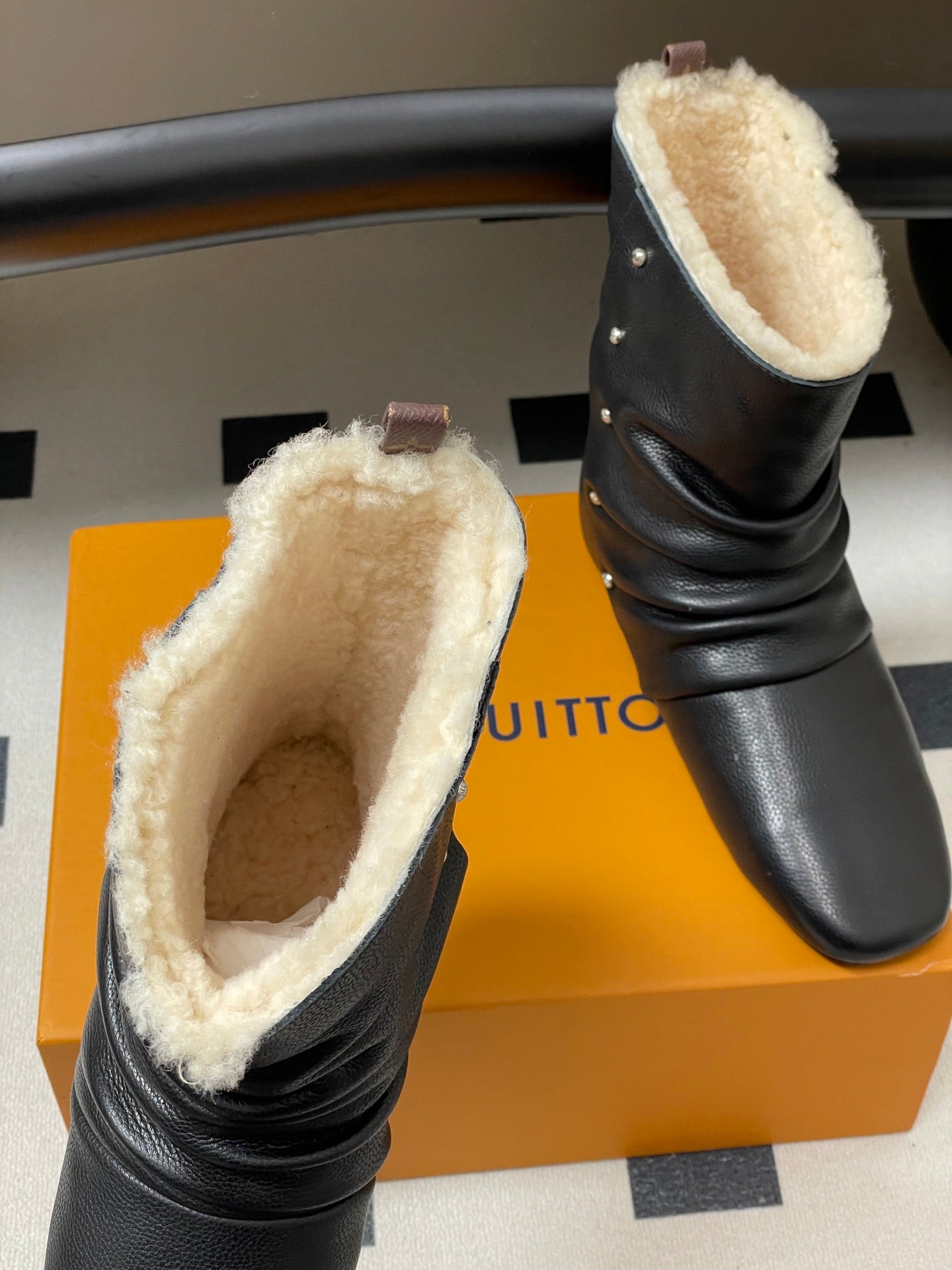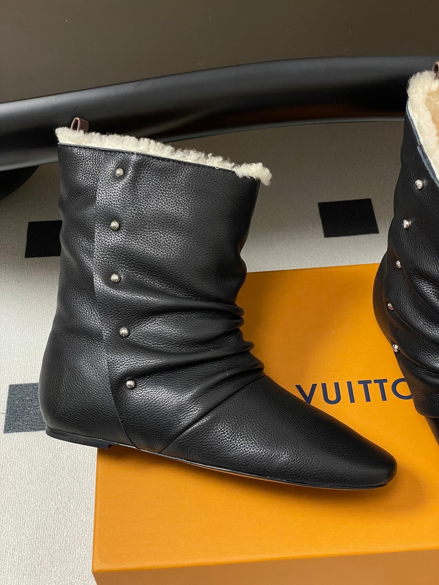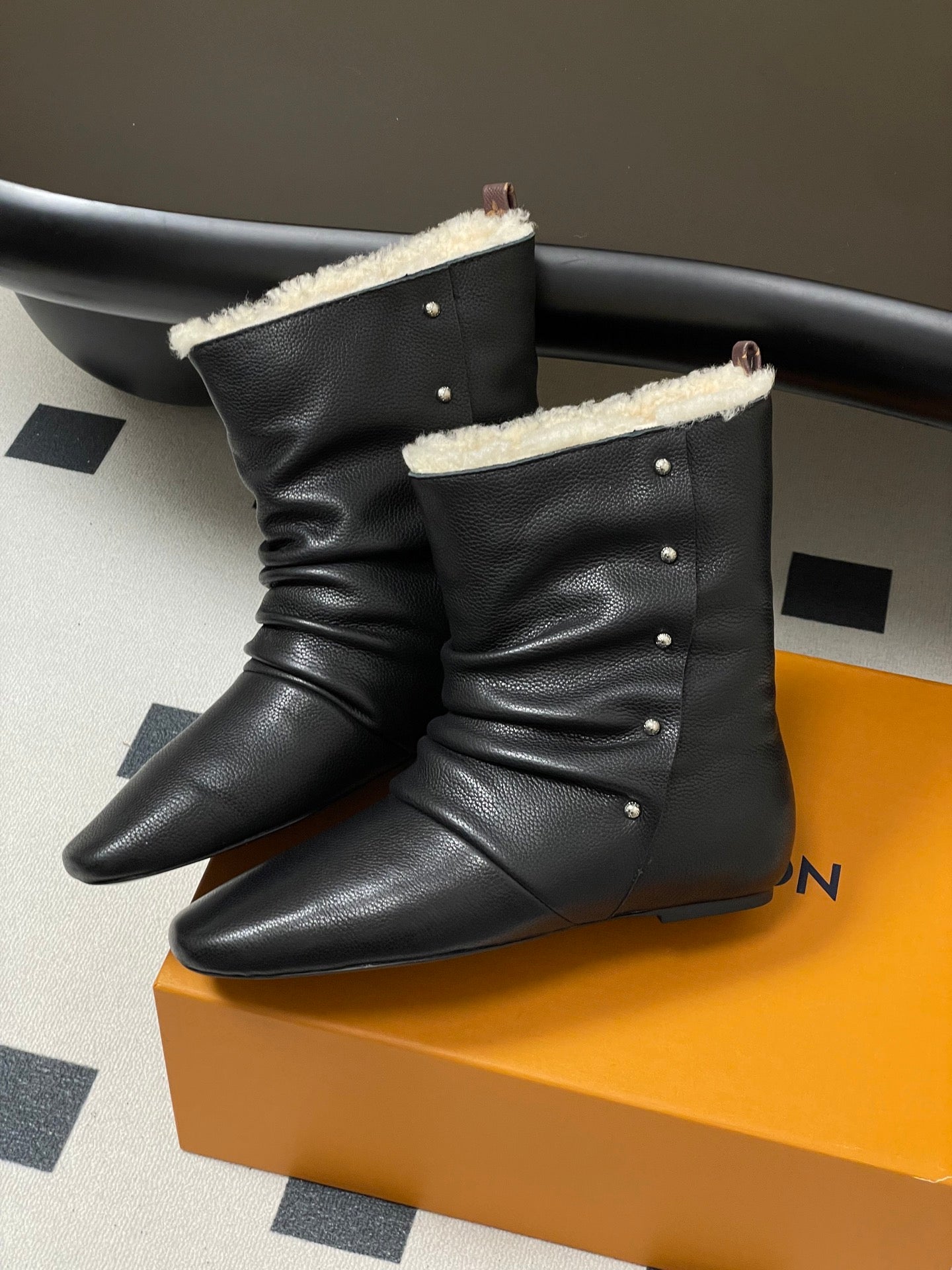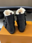 LV 25Fw Nomad Slip-on Ankle Boots Flat Black Grain Leather Wool-lined 534594 .