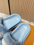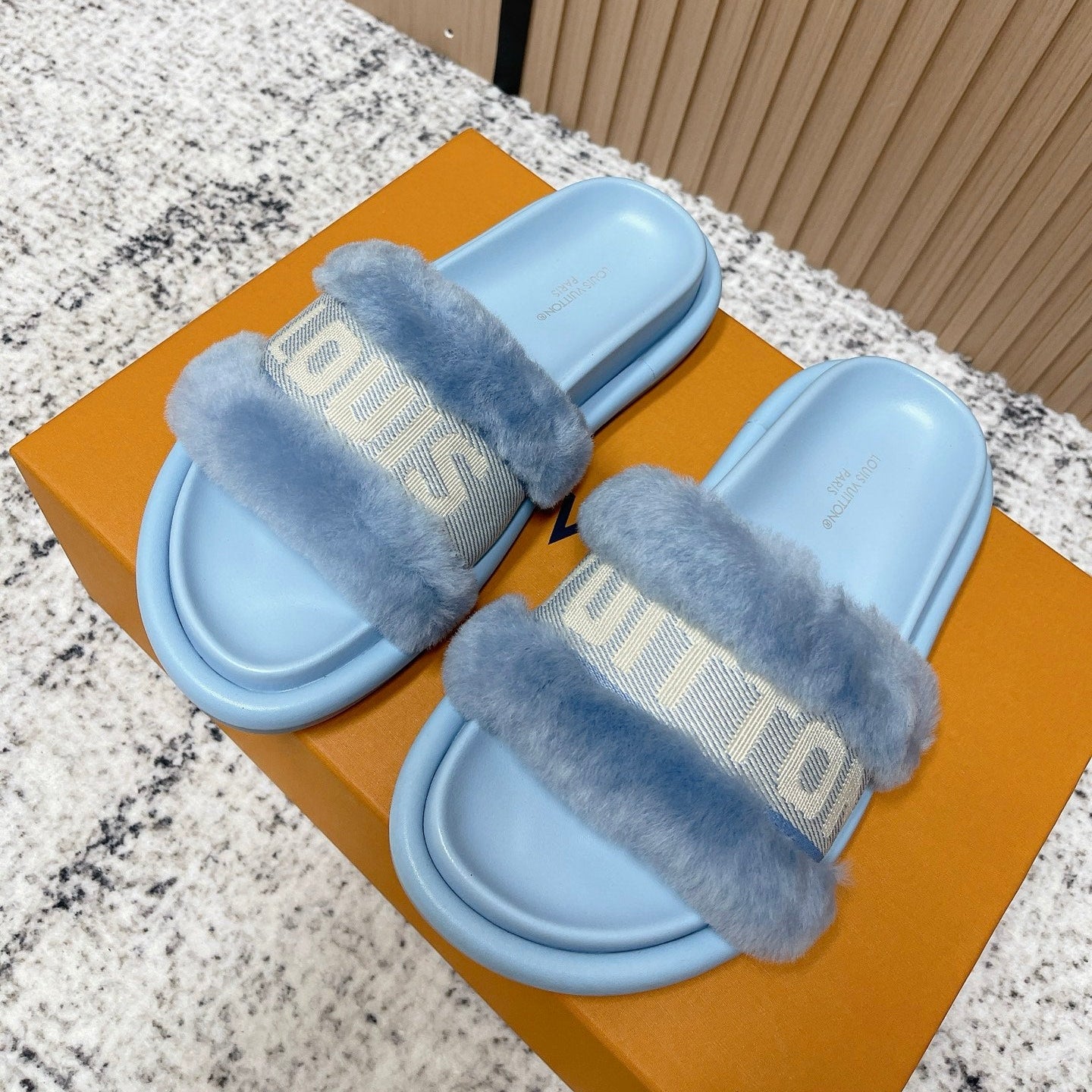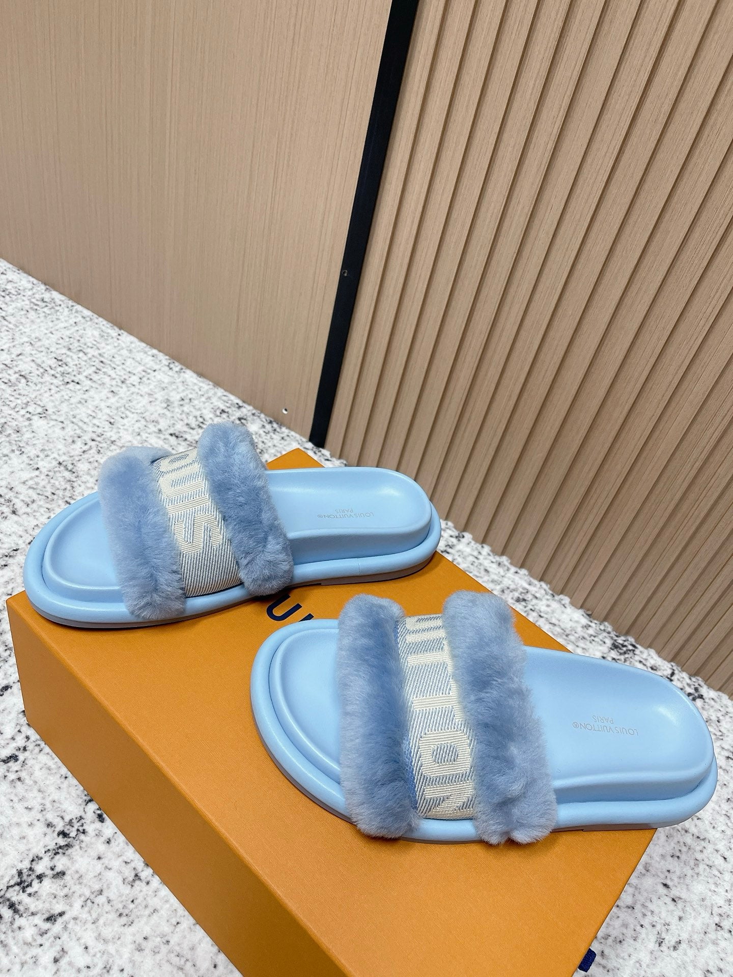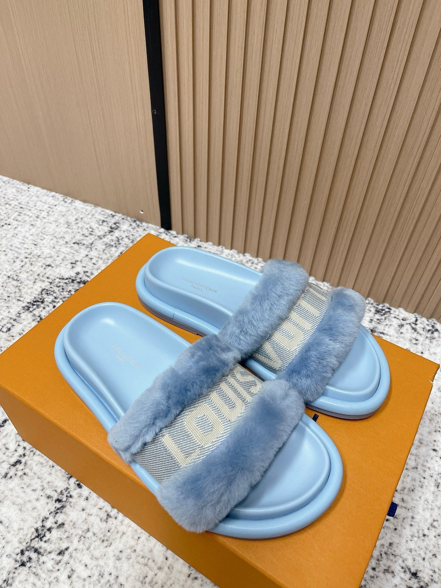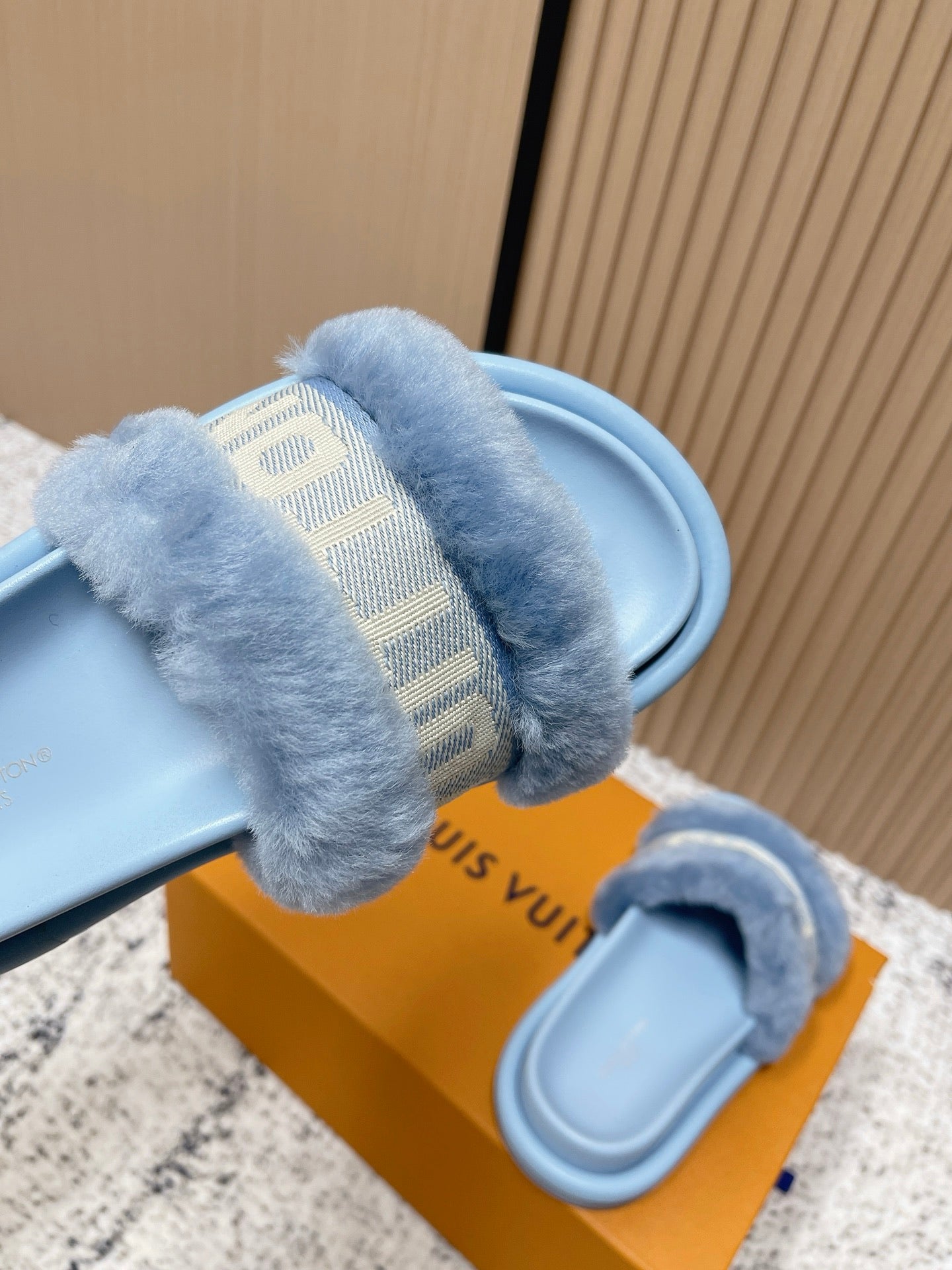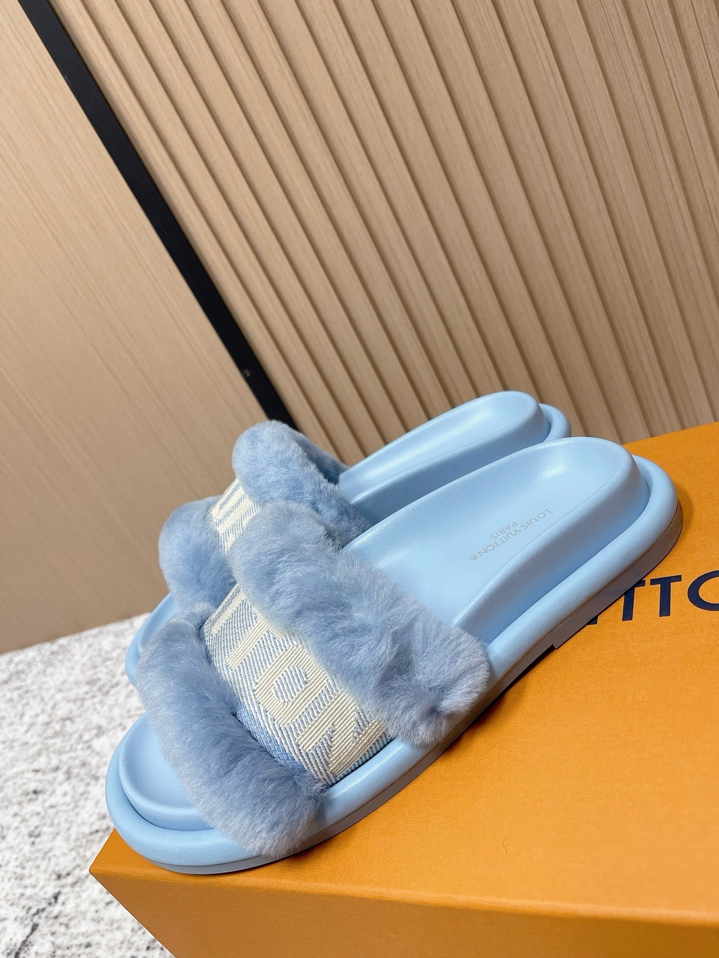 LV 25SS FW Platform Slippers Blue Canvas Wool 533771