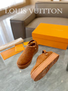 LV Aspen Platform Clog Orange Brown Monogram Suede