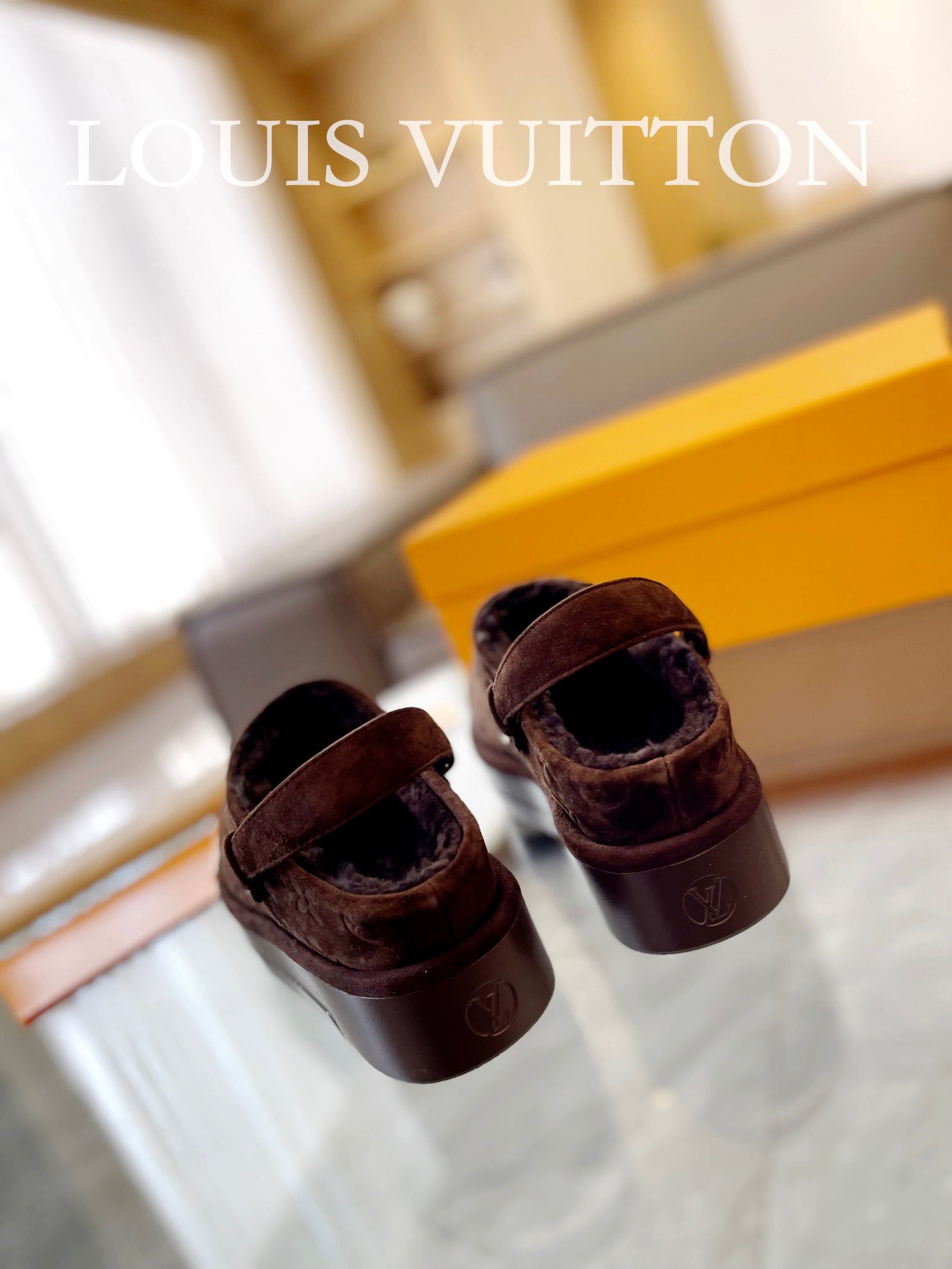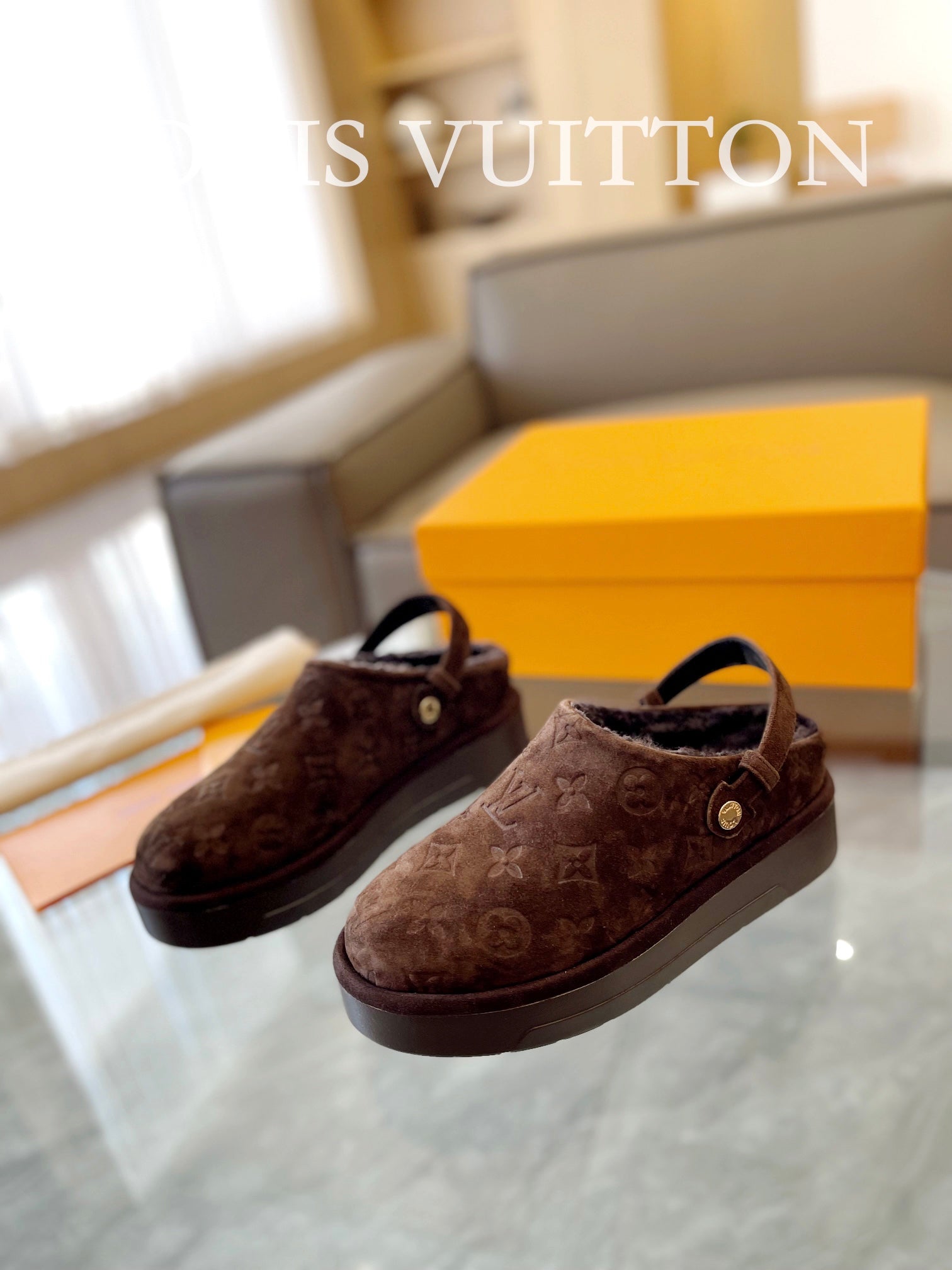 LV Aspen Platform Clog Walnut Brown Monogram Suede