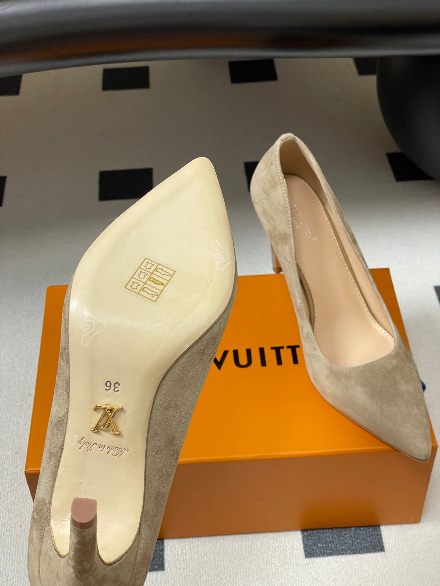 LV GALA High Heels Flats Series 85mm Beige Suede 534539