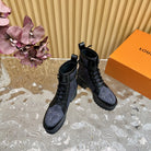 LV Laureate Platform Desert Boot 70mm Blue Black Monogram Jacquard Fabric