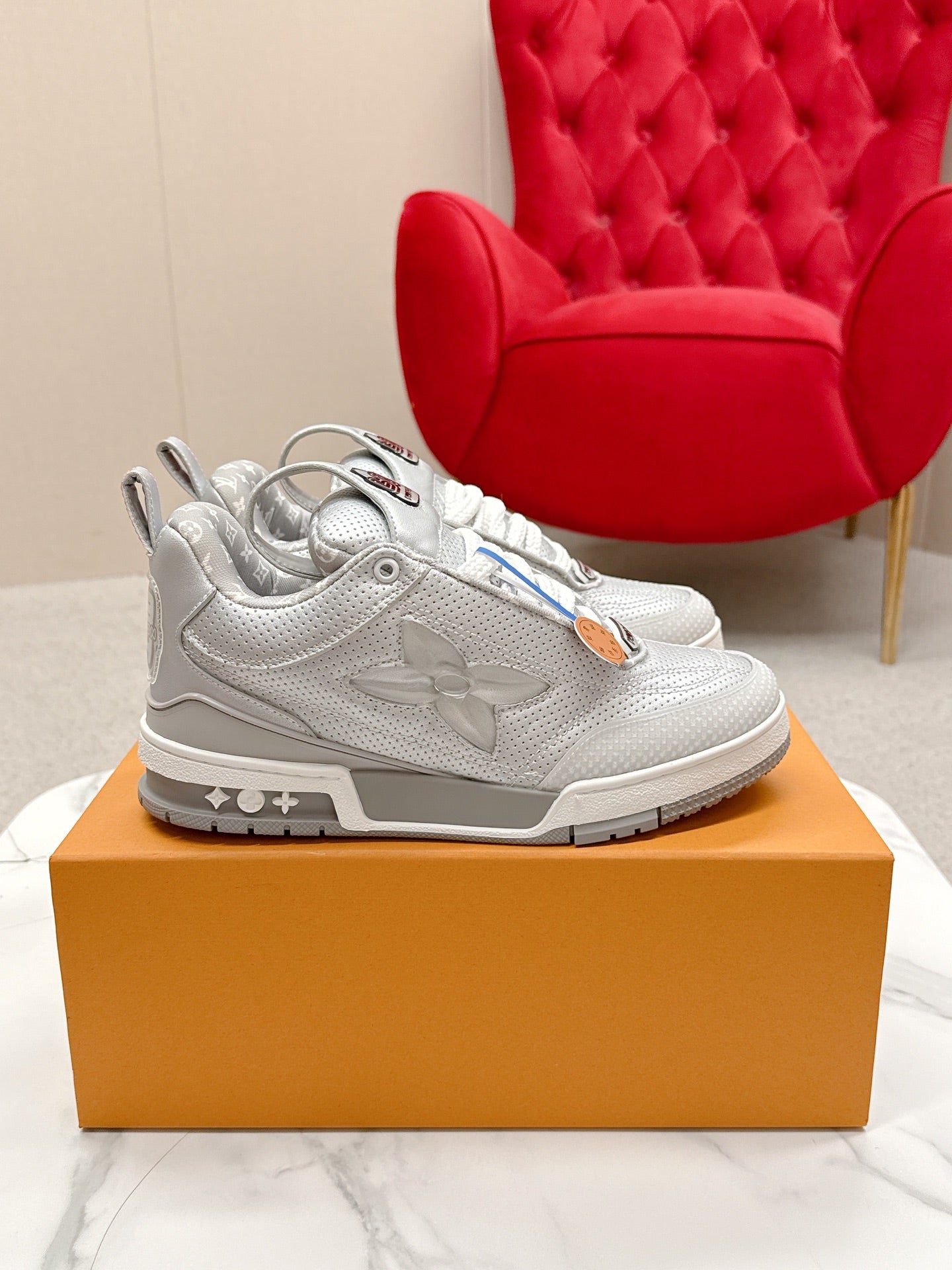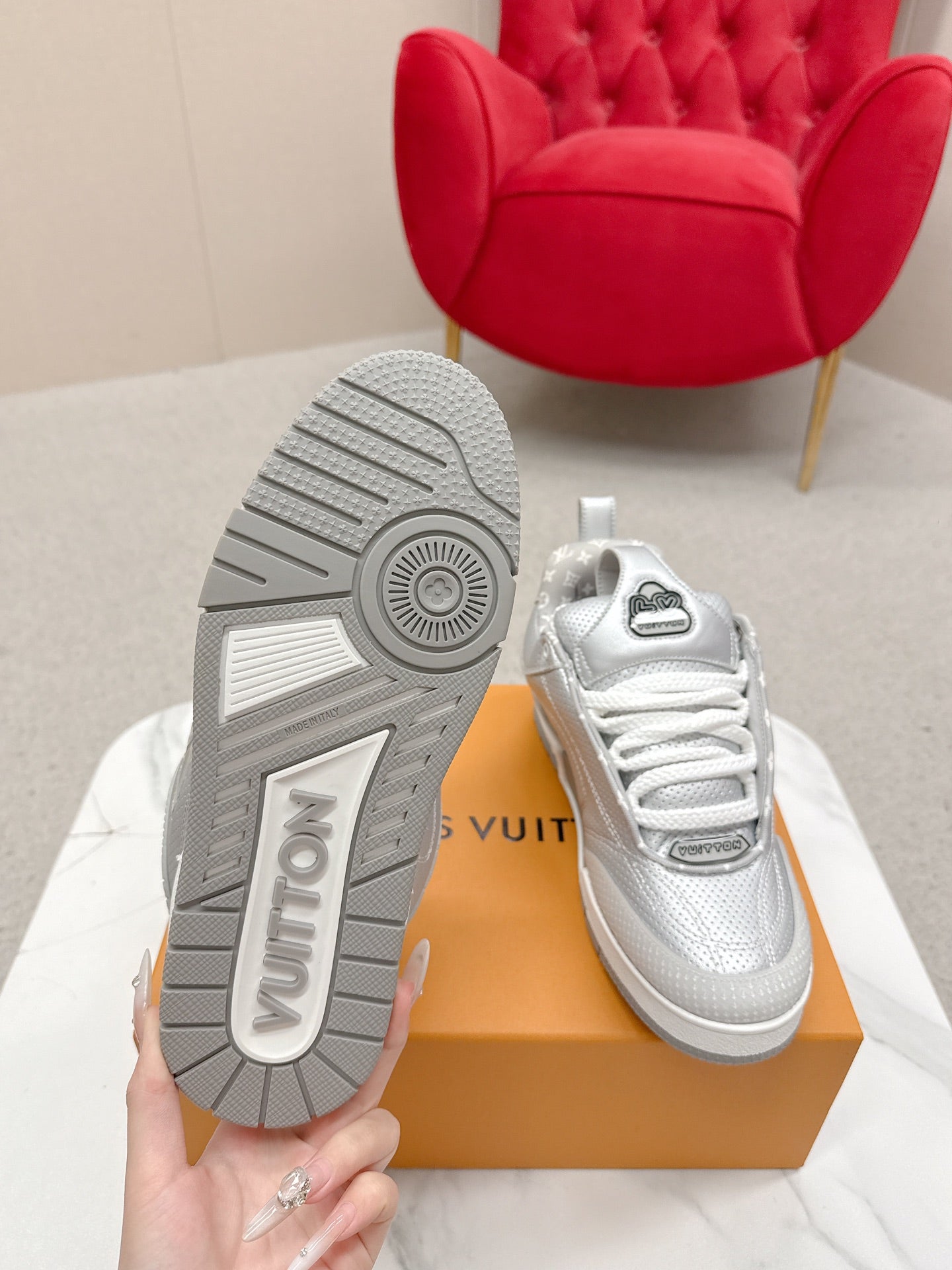 LV Skate Sneakers Silver Metallic and Perforated Calf Leather 528548