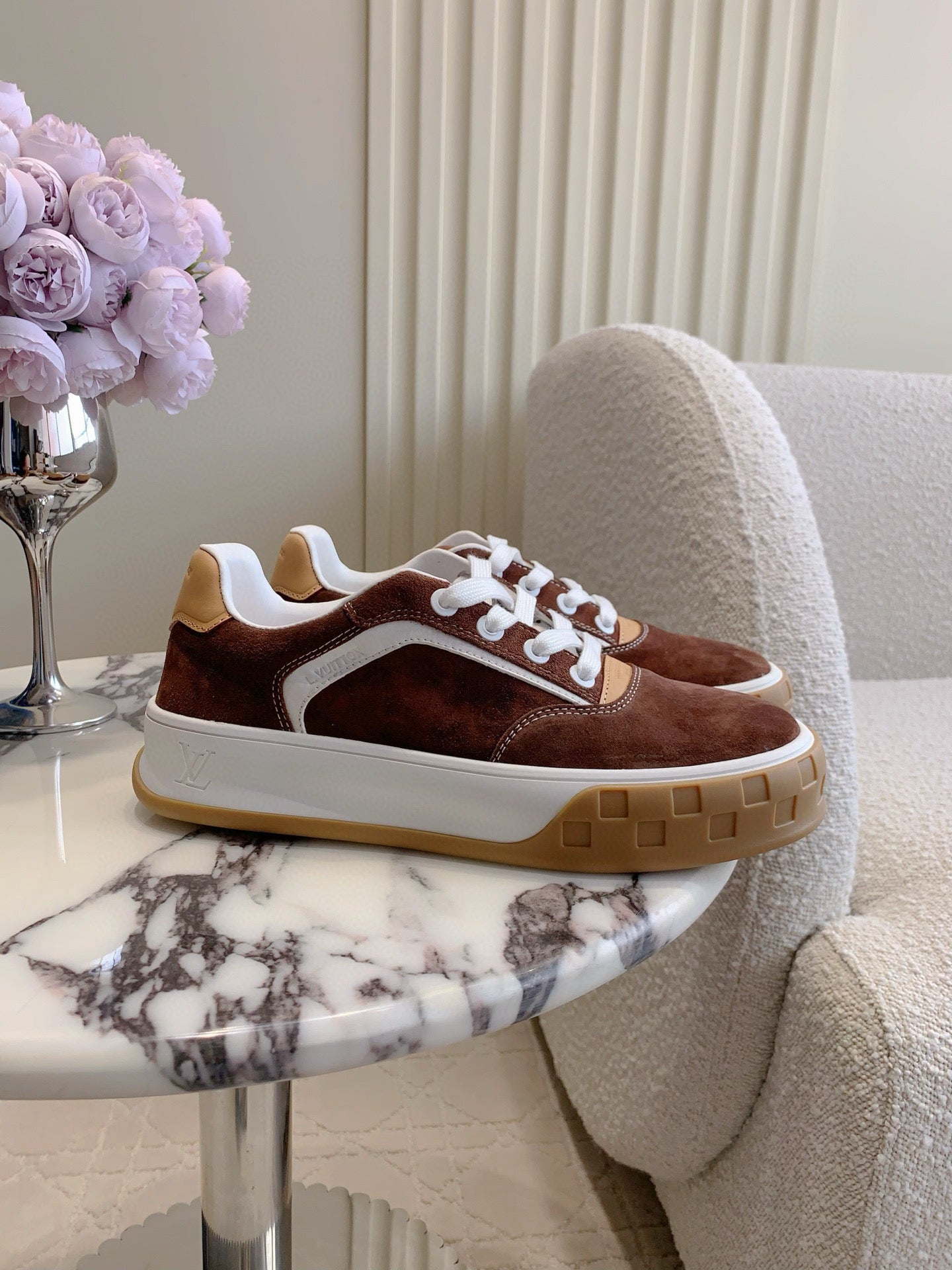 LV Tilted Sneaker Brown Suede Calf Leather 516874