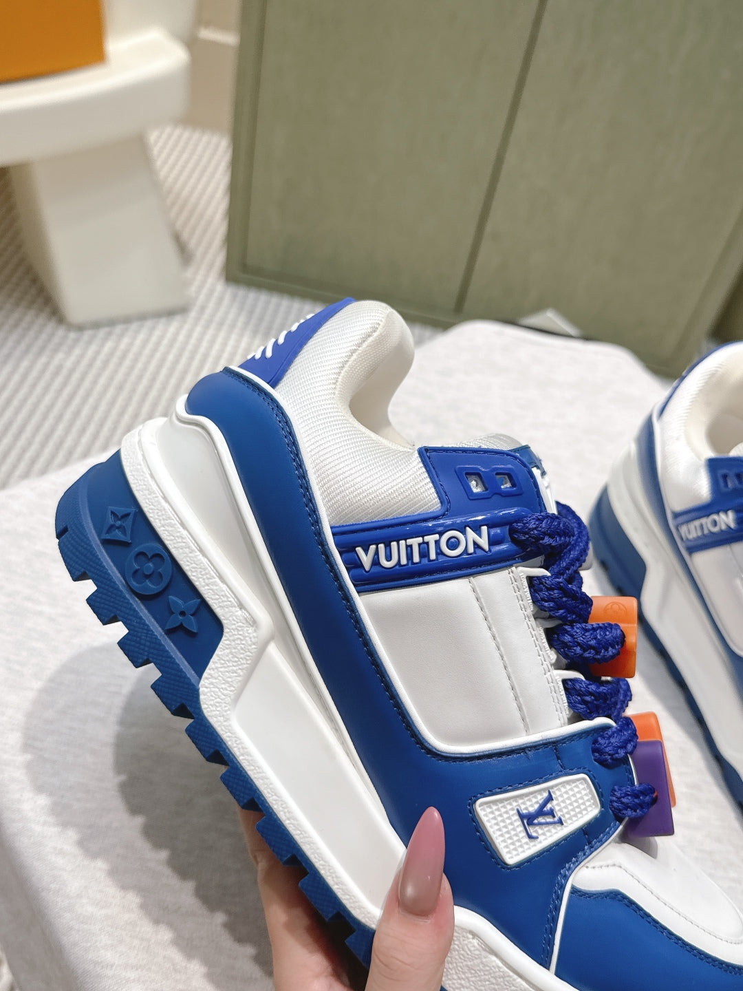 LV Trainer Maxi Sneakers Blue Mix White Calfskin Mesh 515192
