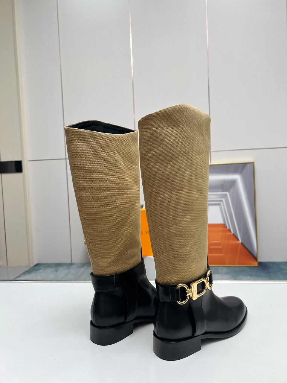 LV Westside Flat High Boot 40mm Black Mix Light Brown Lambskin