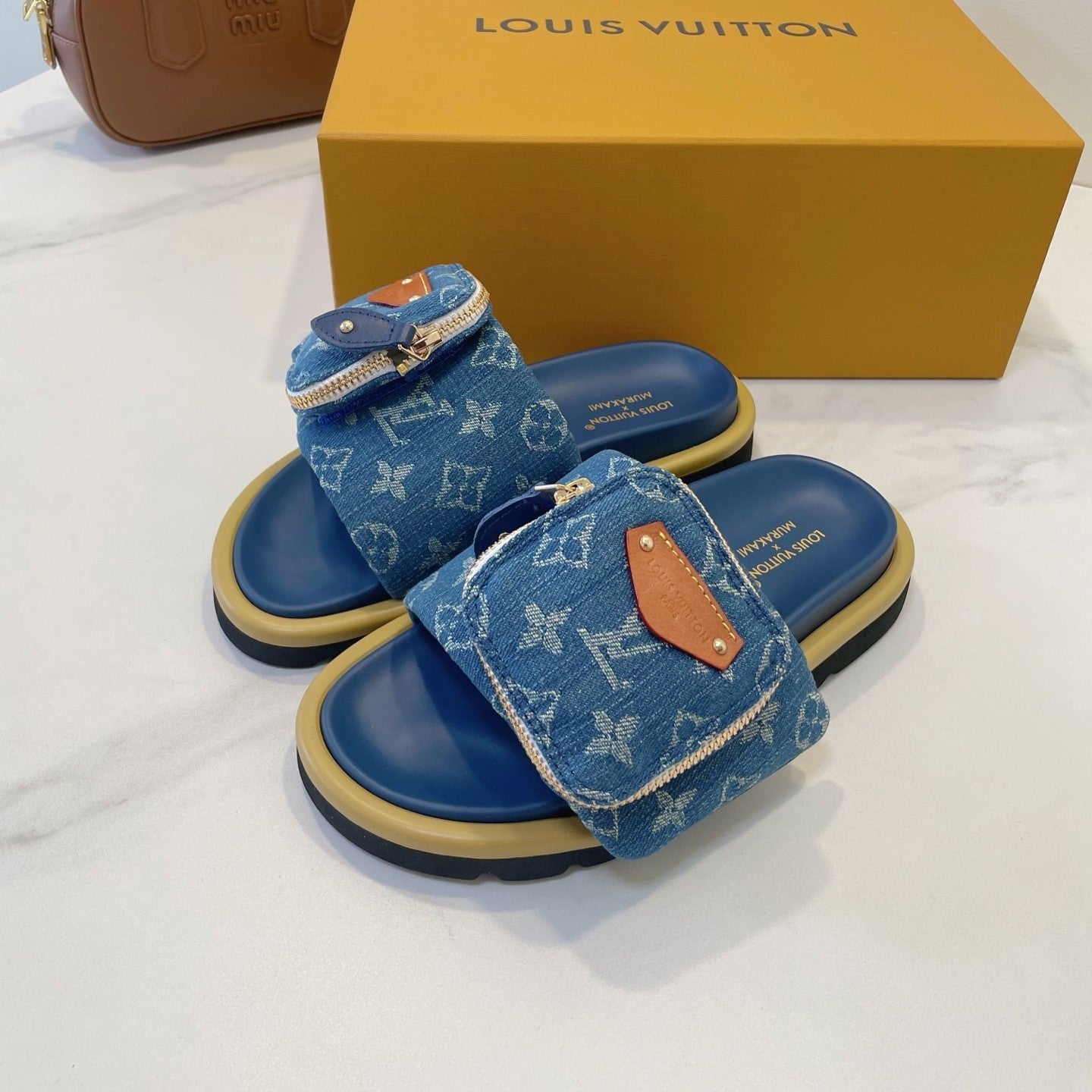 LV x TM Pool Pillow Flat Comfort Mule Blue Denim 241326