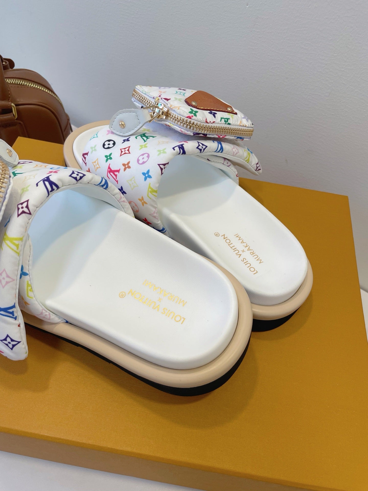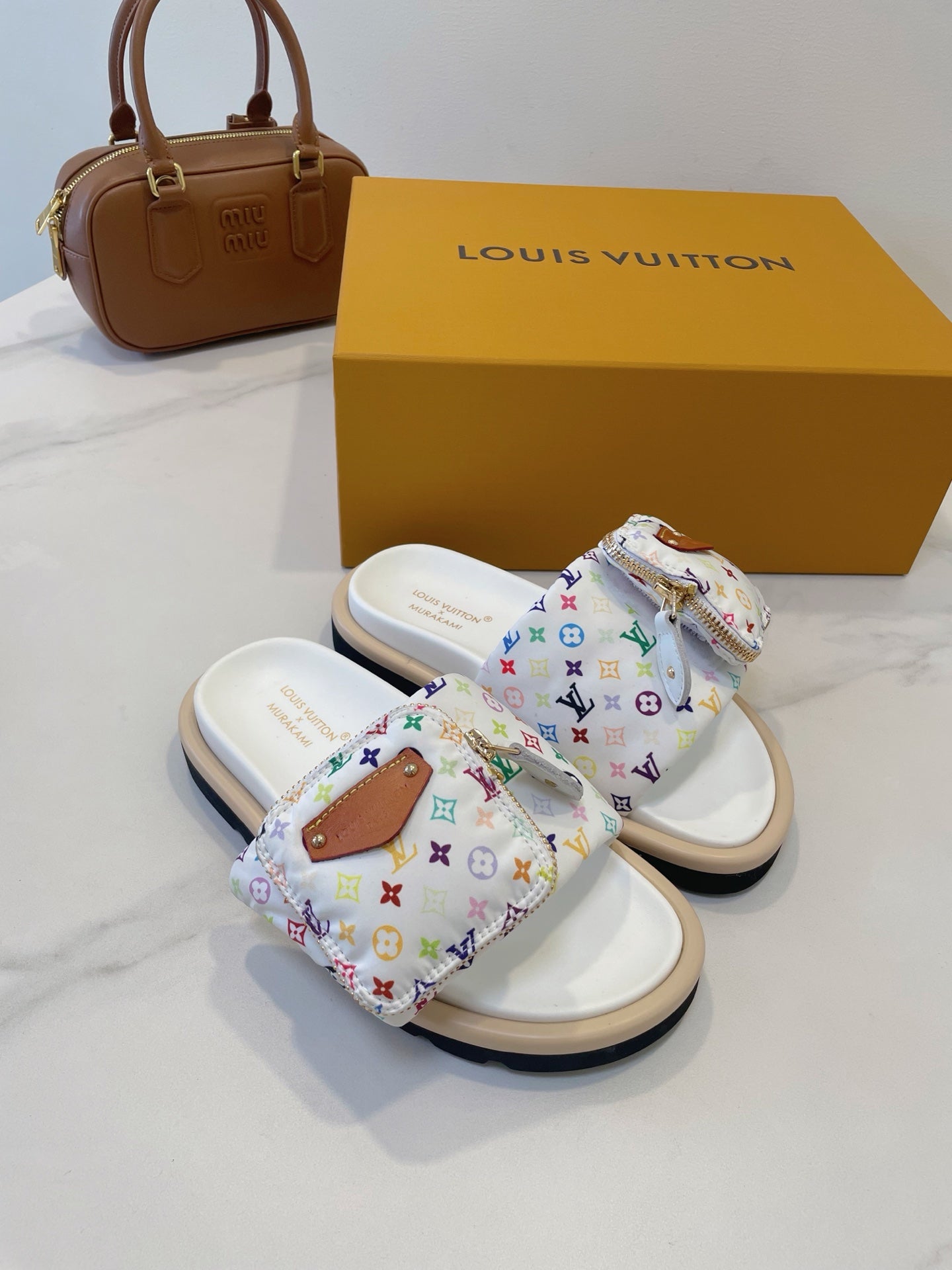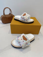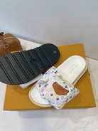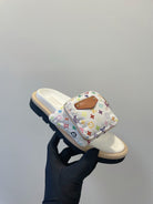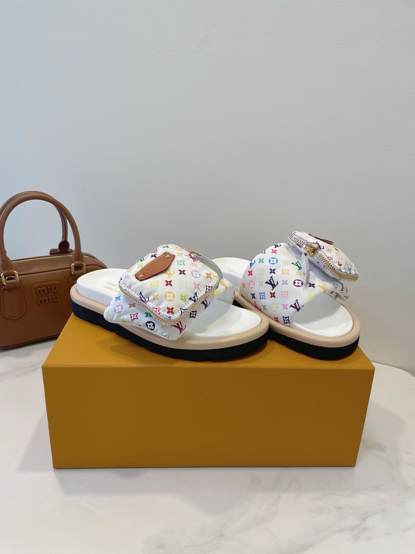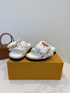 LV x TM Pool Pillow Flat Comfort Mule White and Multicolored Monogram Nylon 241328