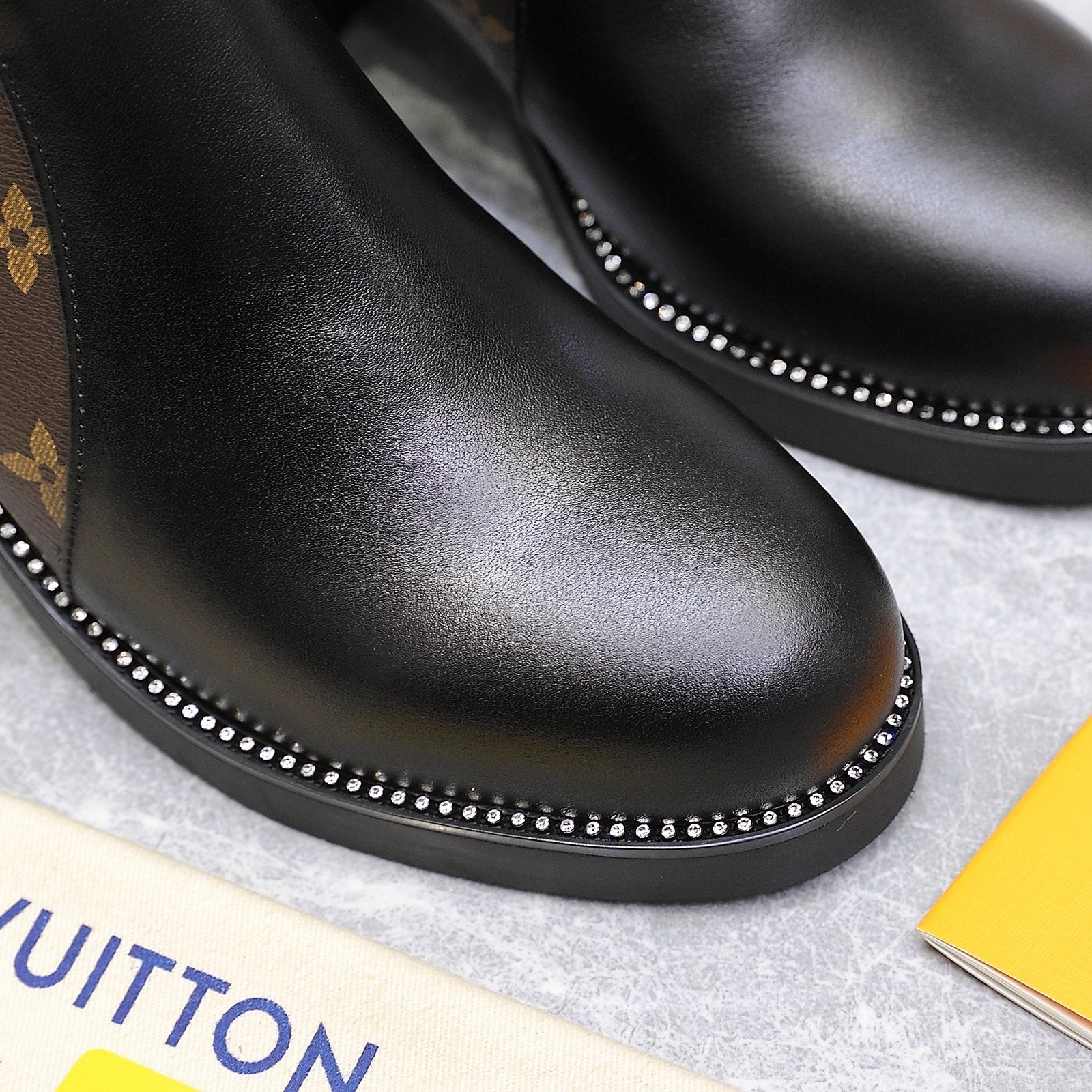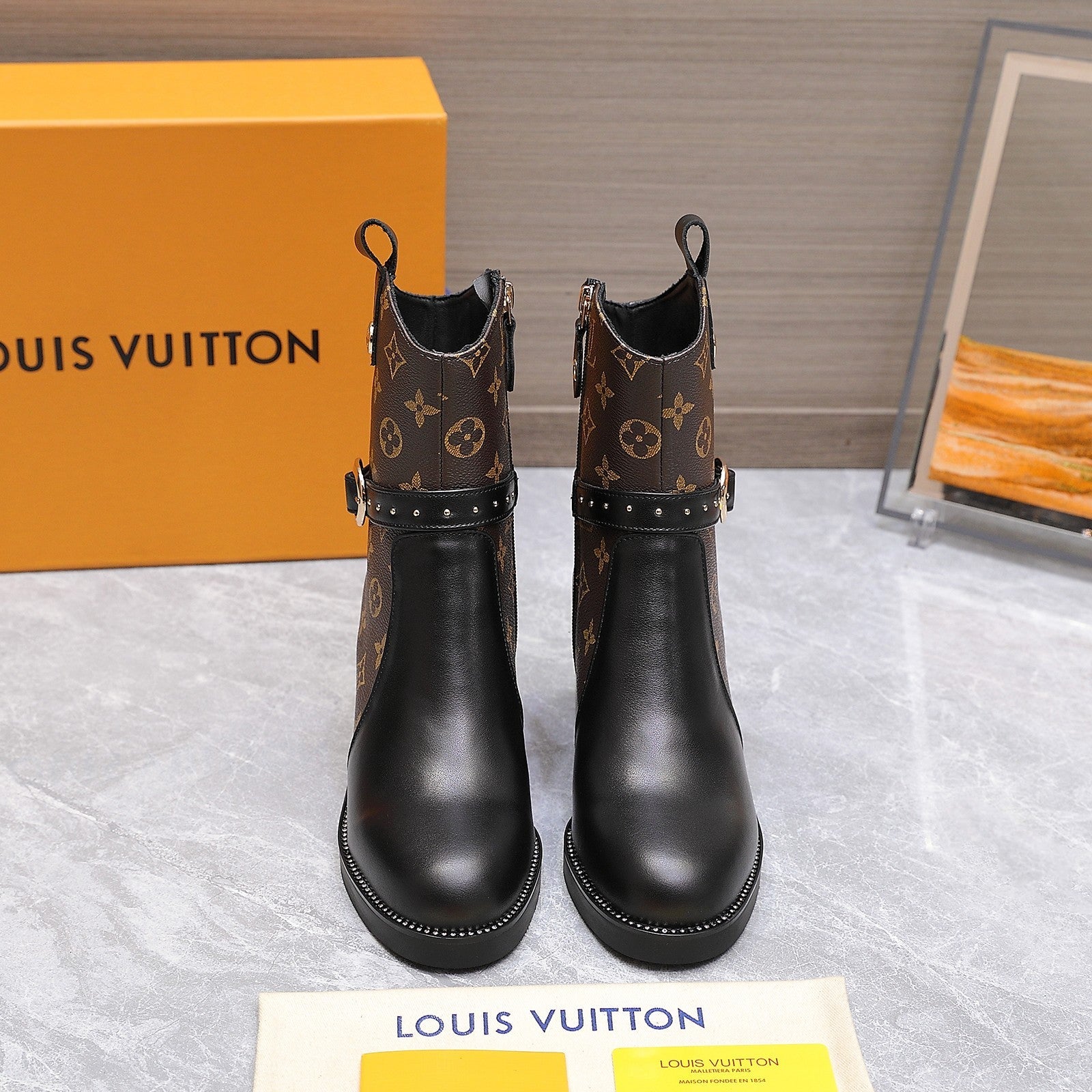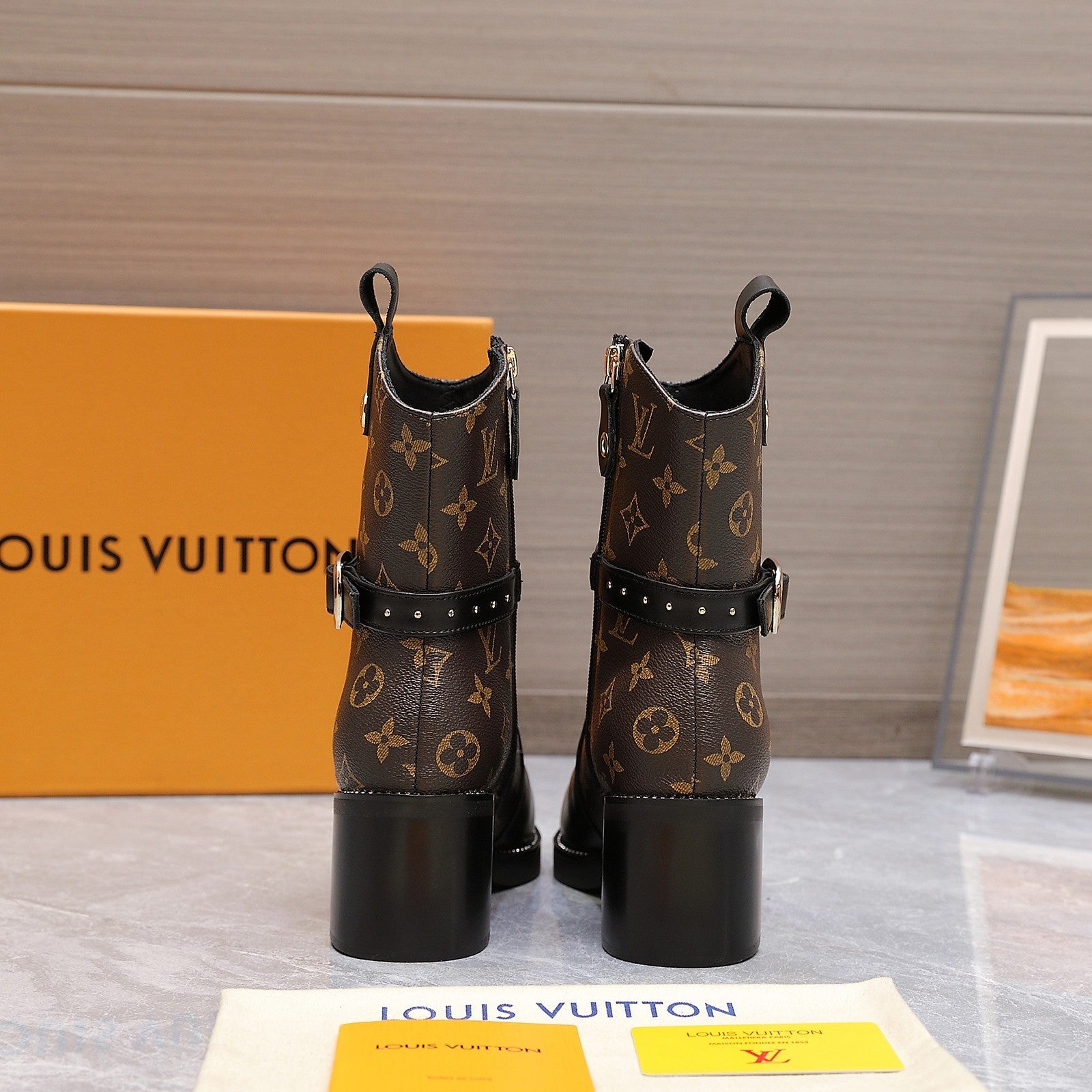 LVx Silhouette Buckle Ankle Boot 55mm Black Calfskin & Monogram Canvas GHW 425693