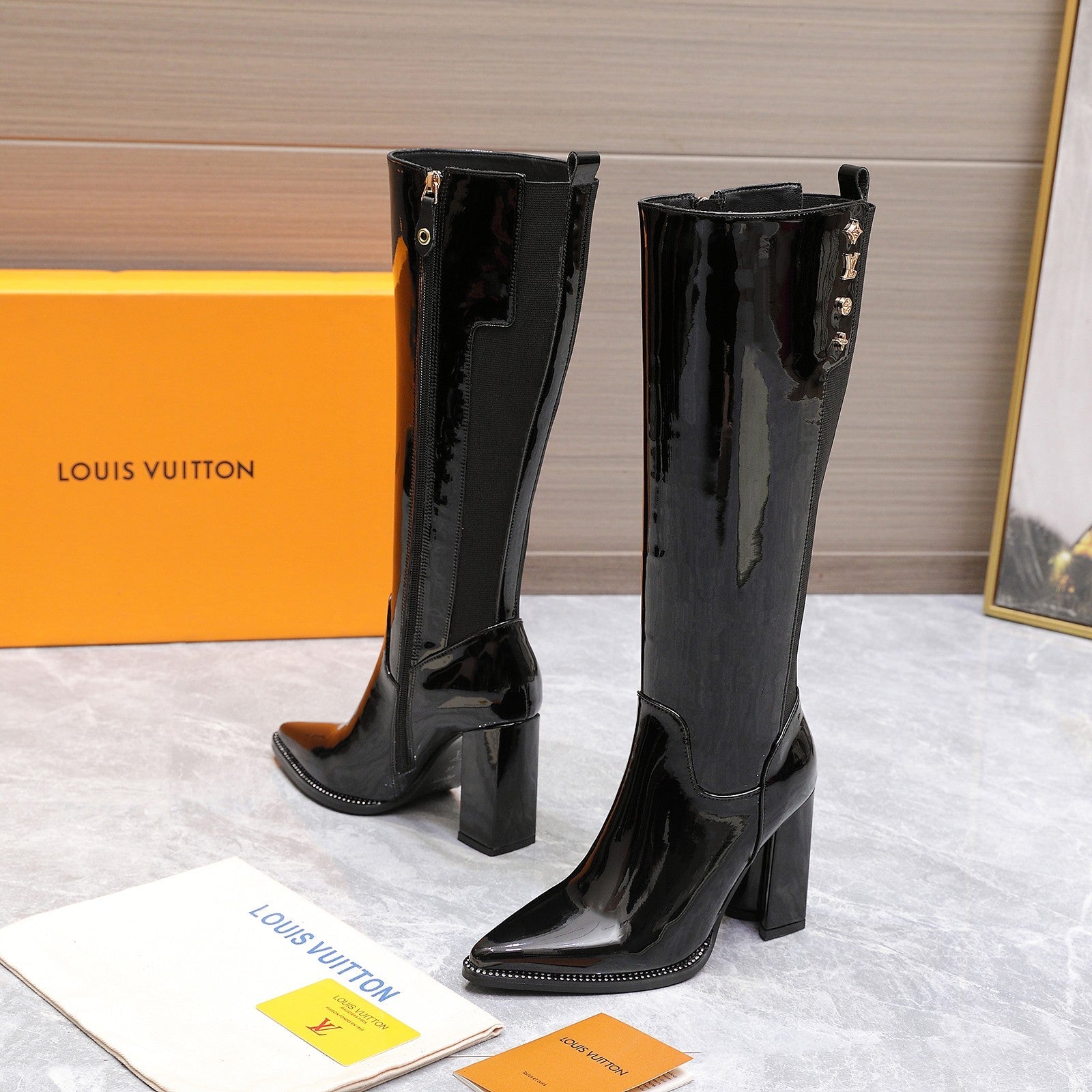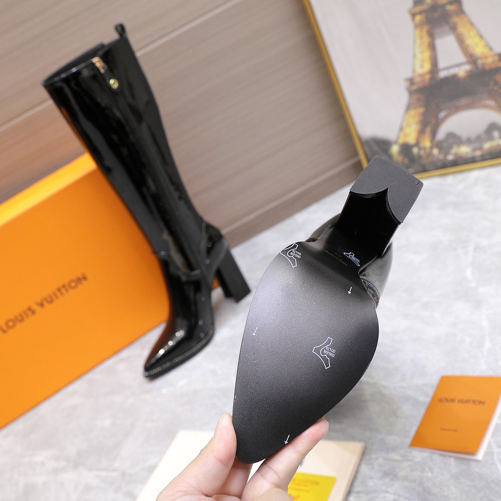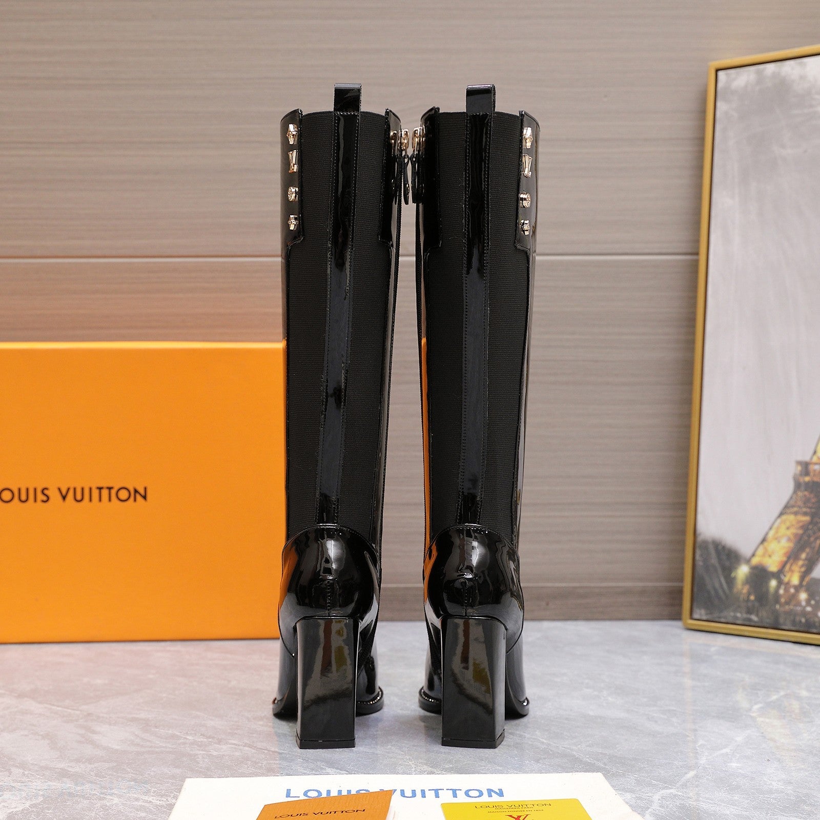 LVx Silhouette Logo Stud Long Boot 95mm Black Patent Leather 425692