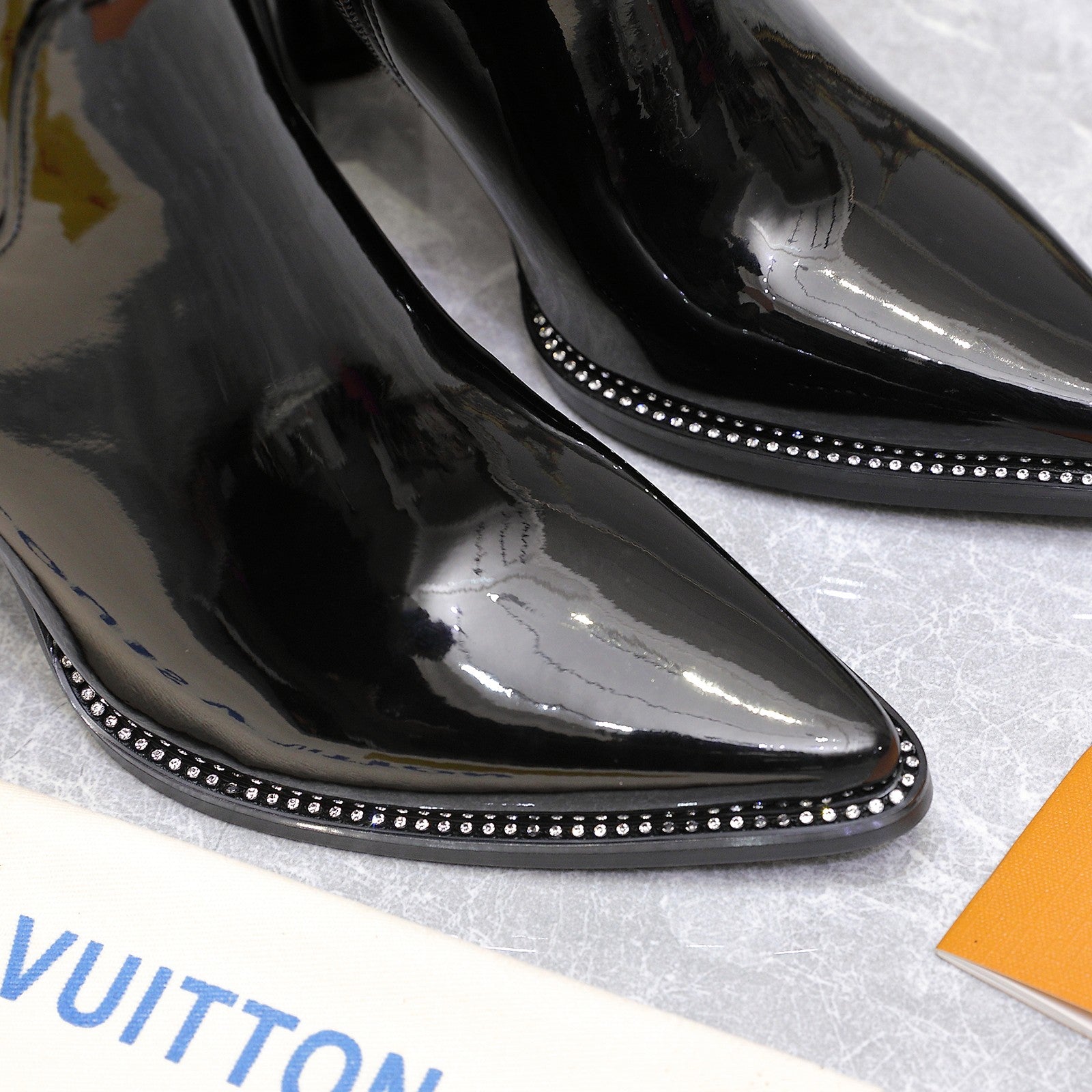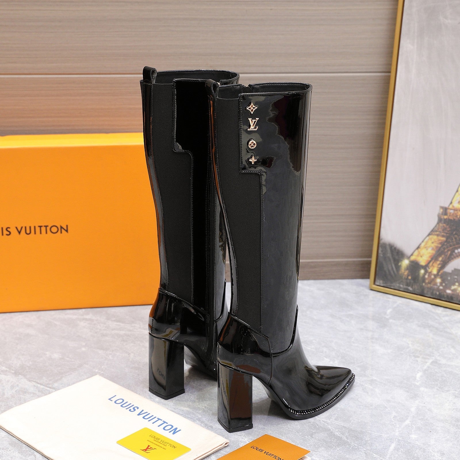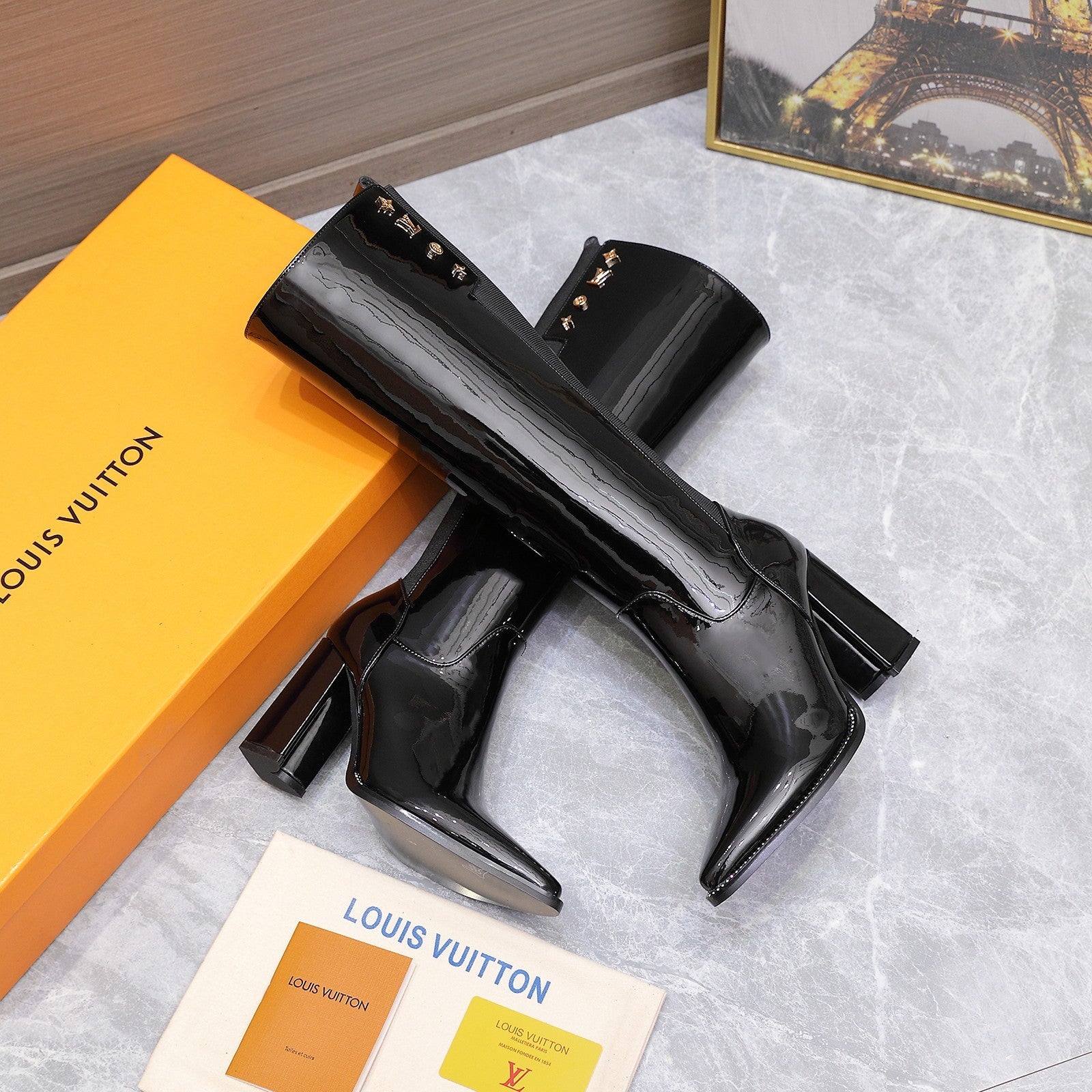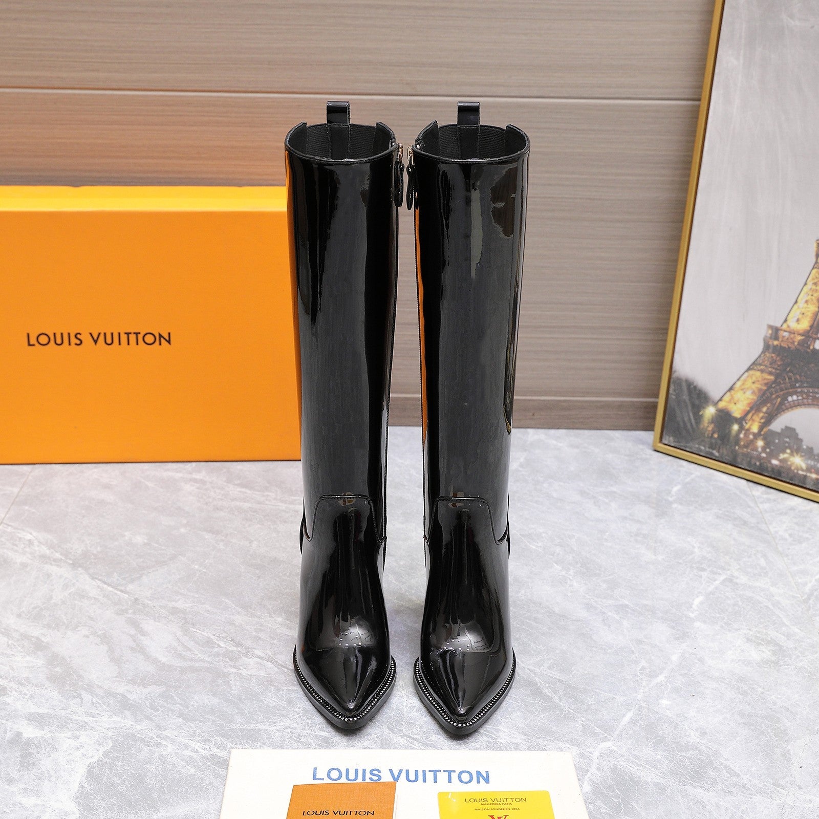 LVx Silhouette Logo Stud Long Boot 95mm Black Patent Leather 425692