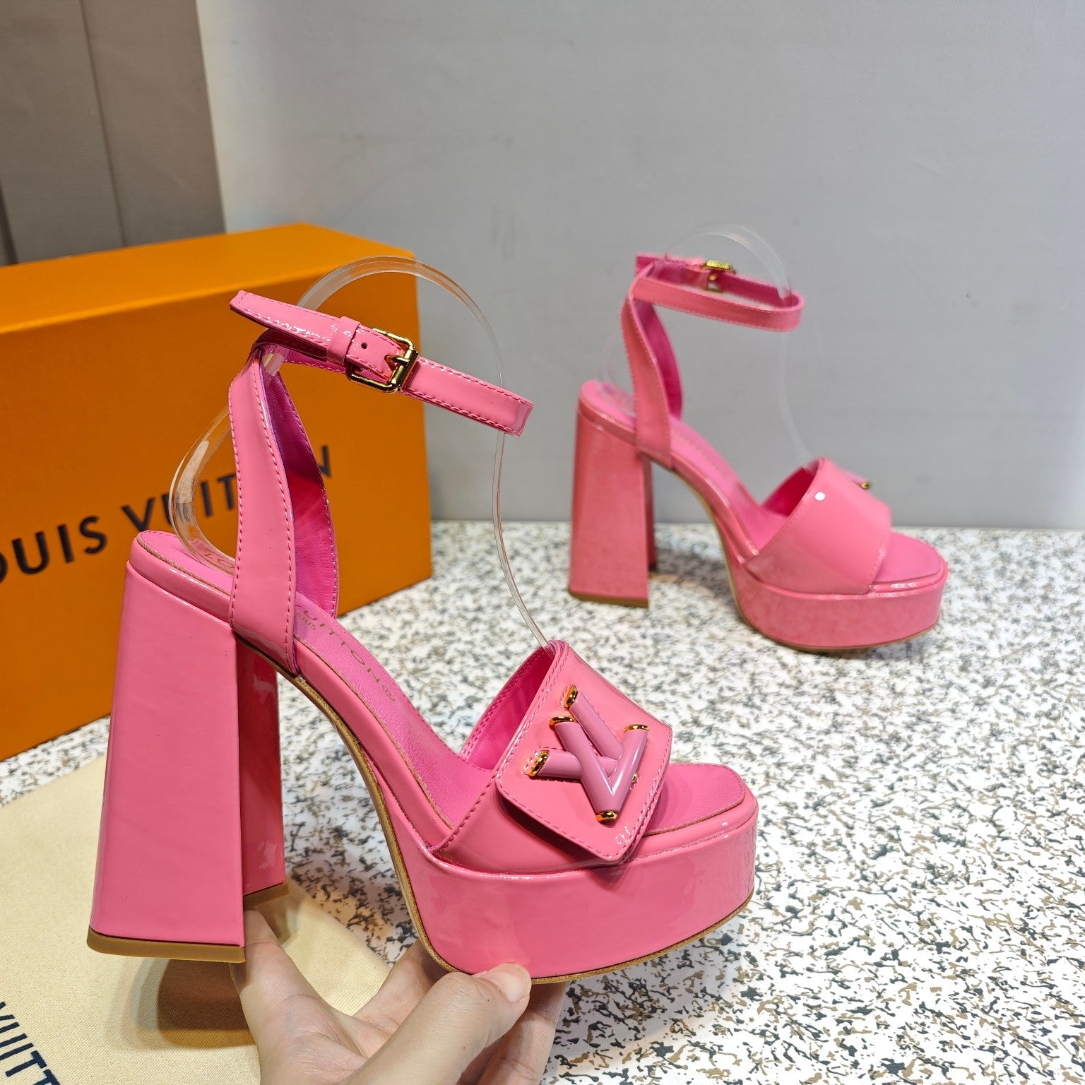 LV Shake Platform Sandal 110mm Pink Patent Leather 456136