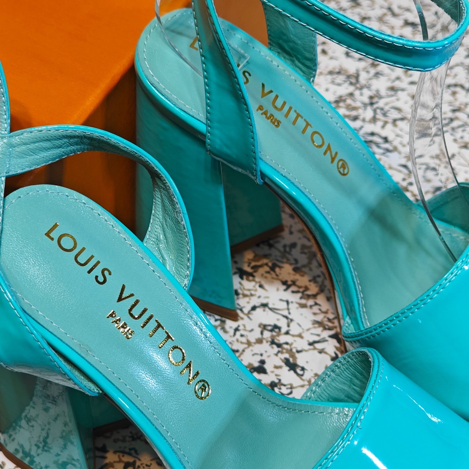 LV Shake Platform Sandal 110mm Turquoise Patent Leather 456138