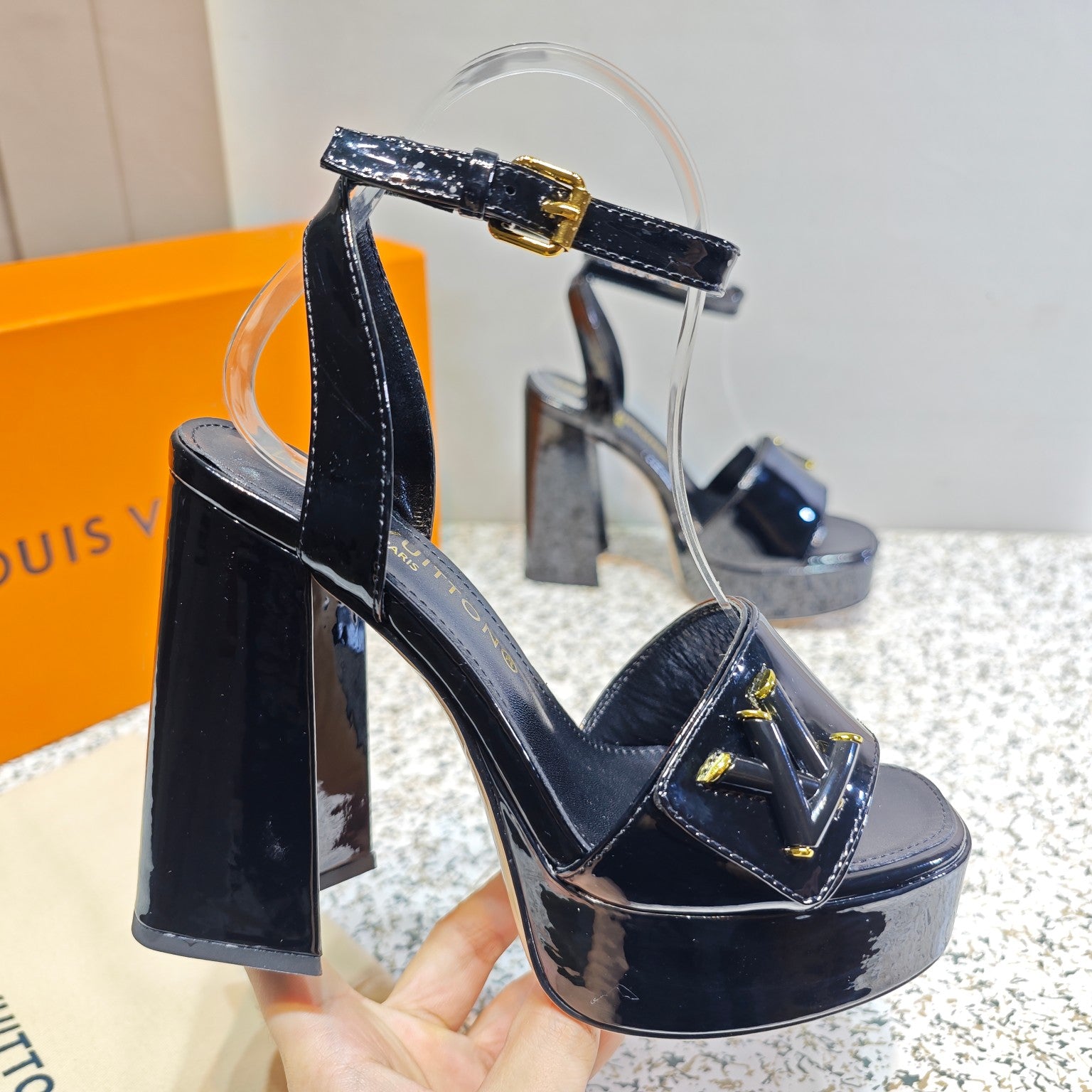 LV Shake Platform Sandal 110mm Black Patent Leather 456141