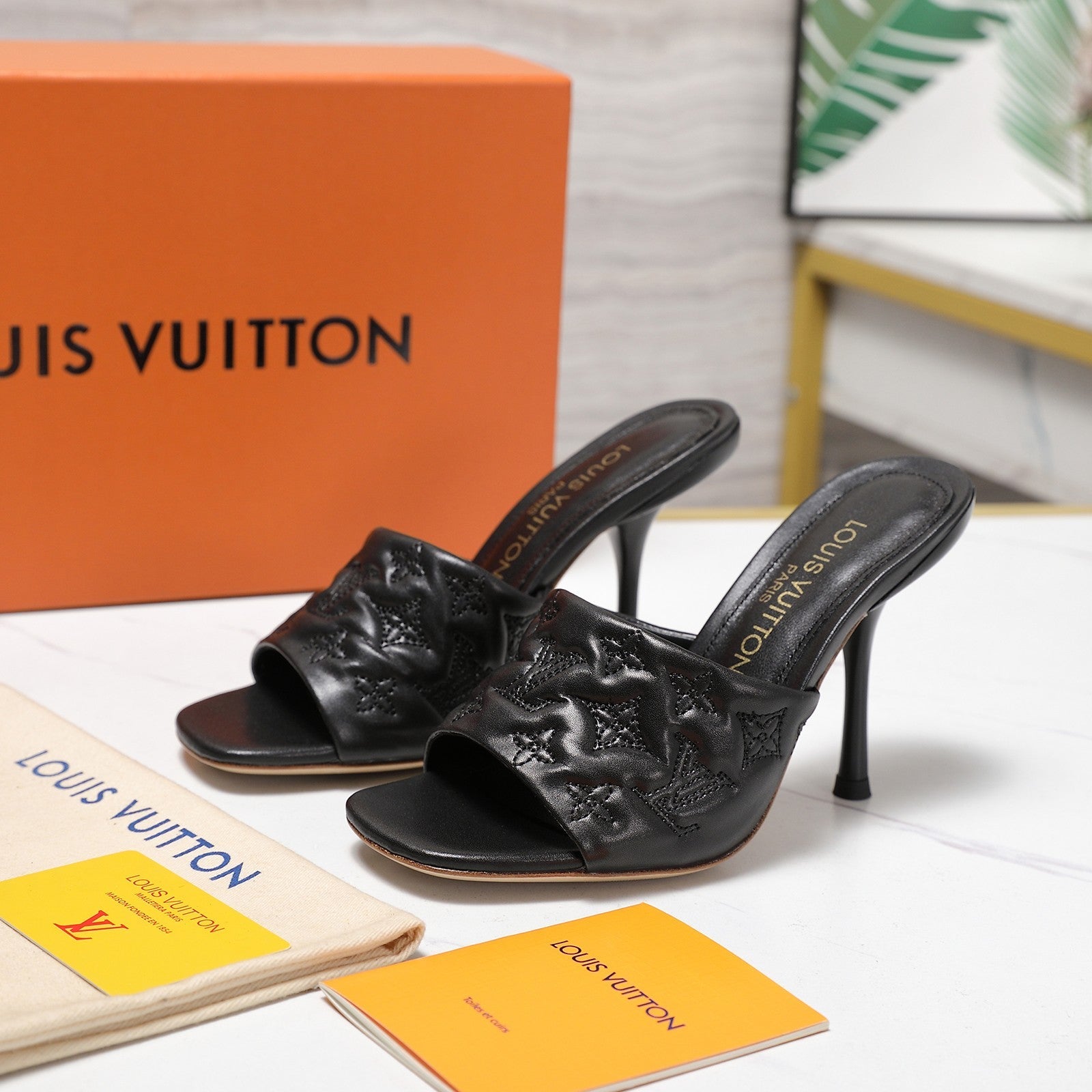 LV Revival Mule 90mm Black Monogram-Embossed Lambskin 456147