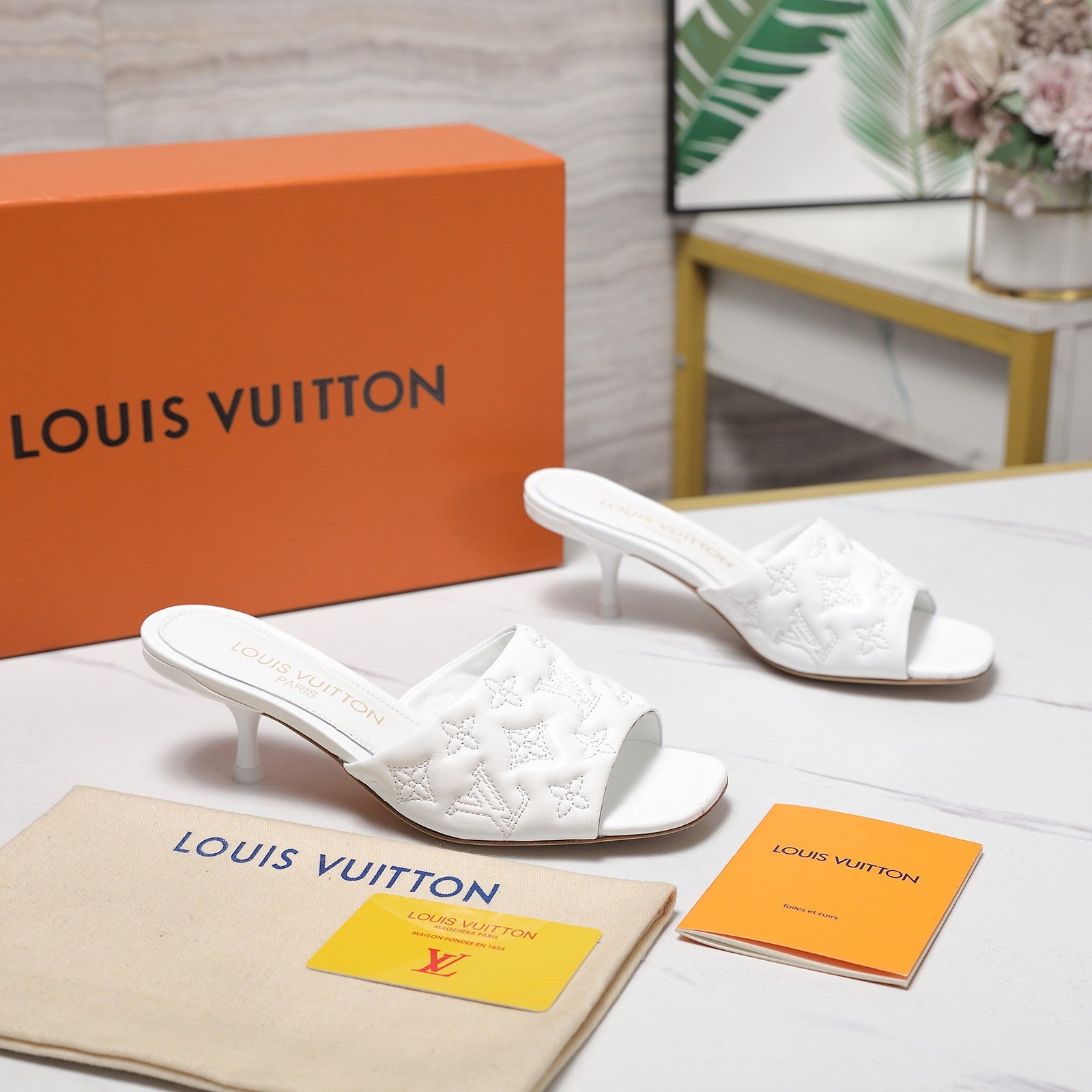 LV Revival Mule 55mm White Monogram-Embossed Lambskin 456150