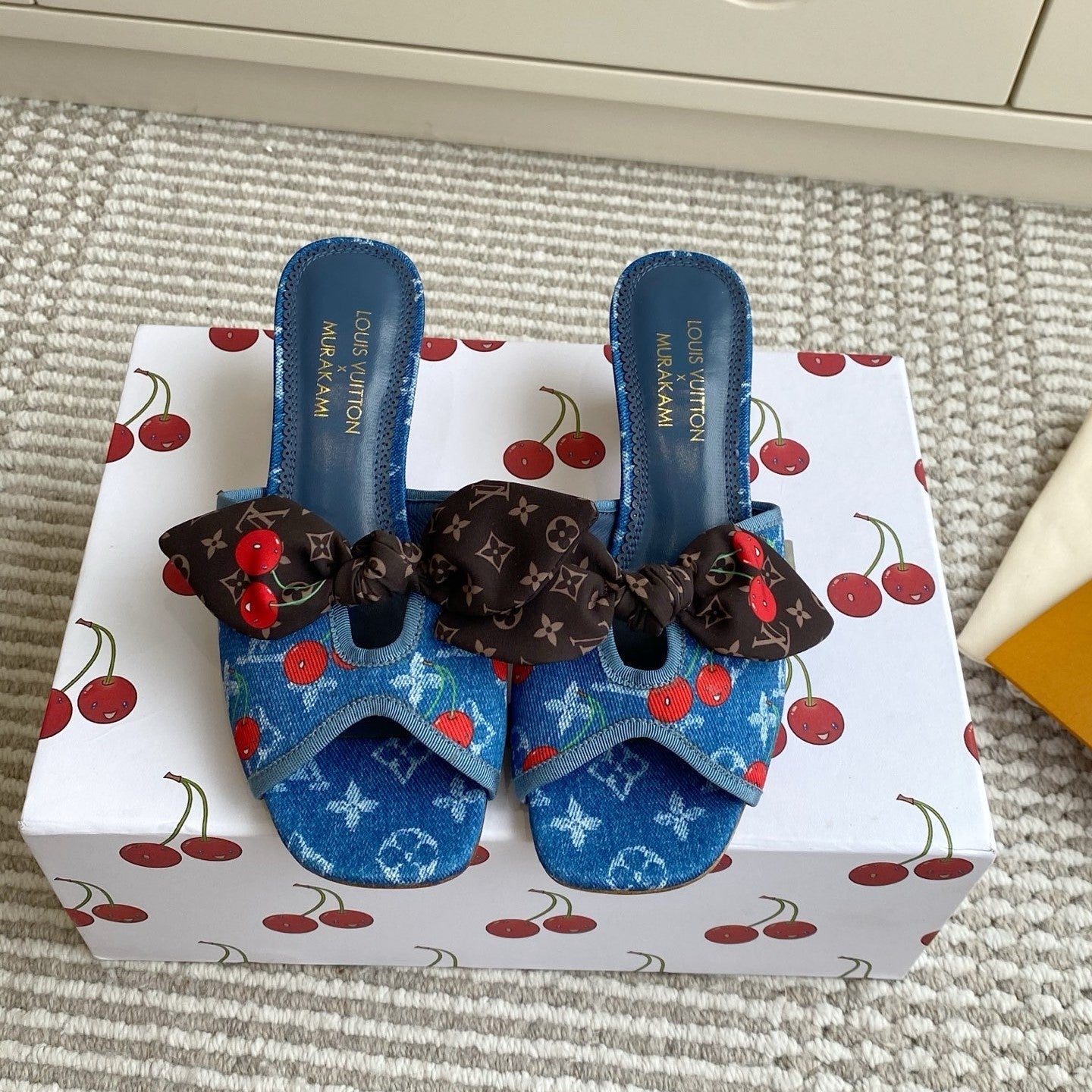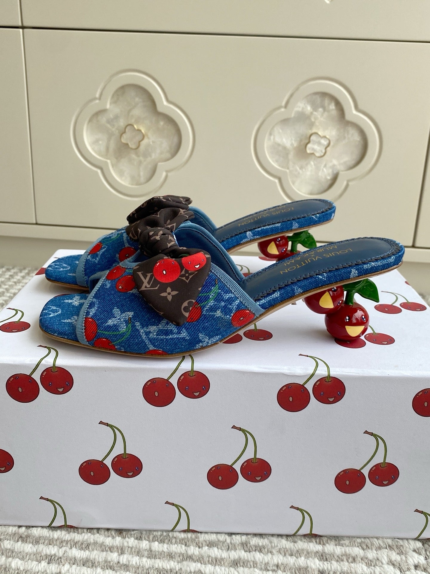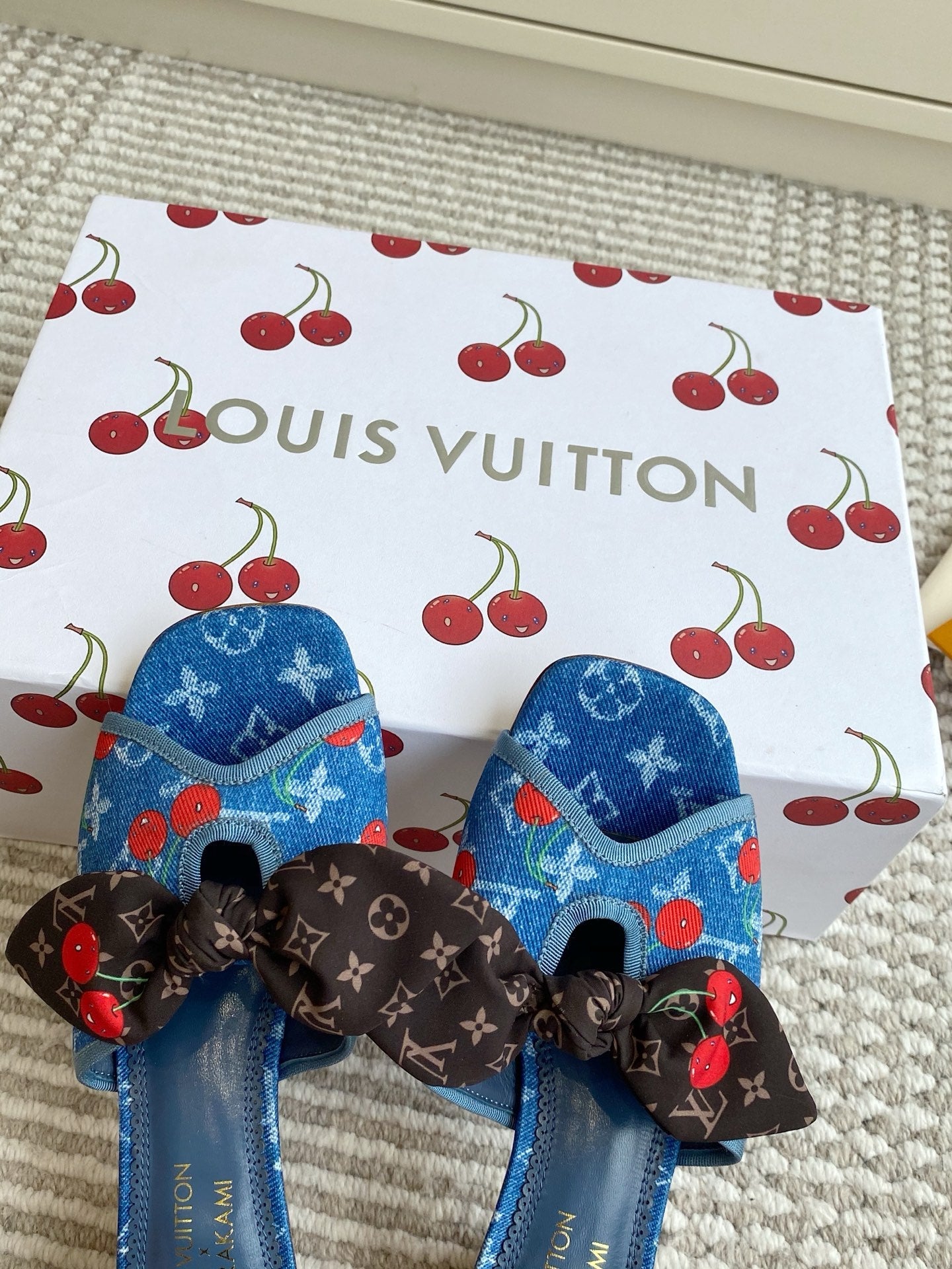 Cherry Series LV X TM CHERIE Sandals Beige Light Blue Denim 442129