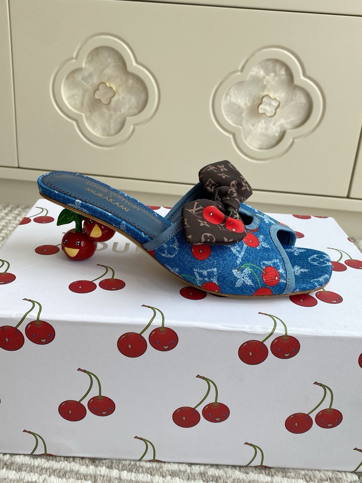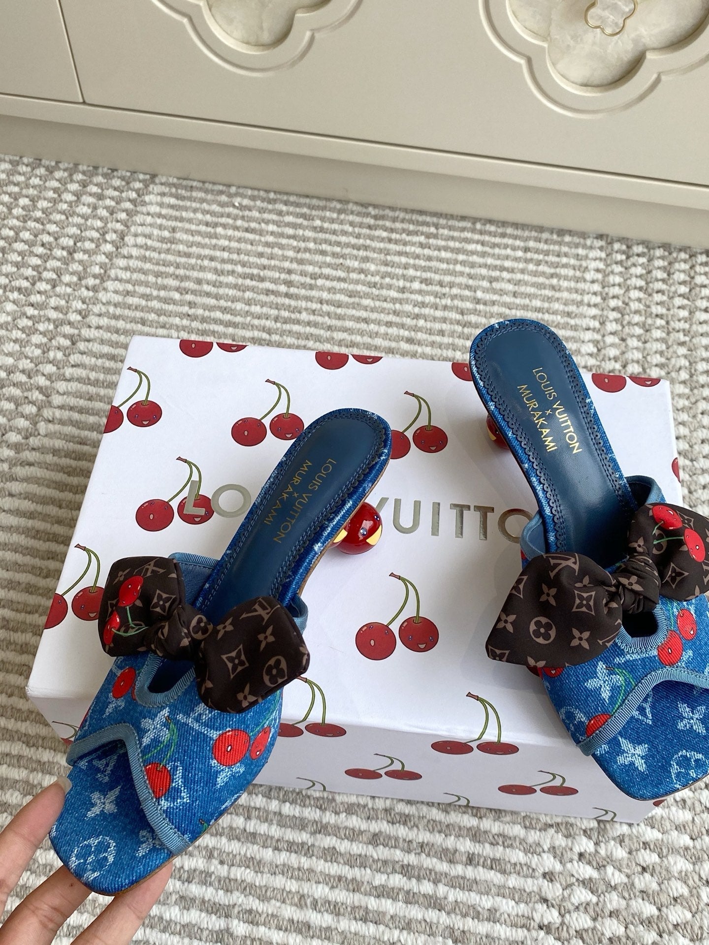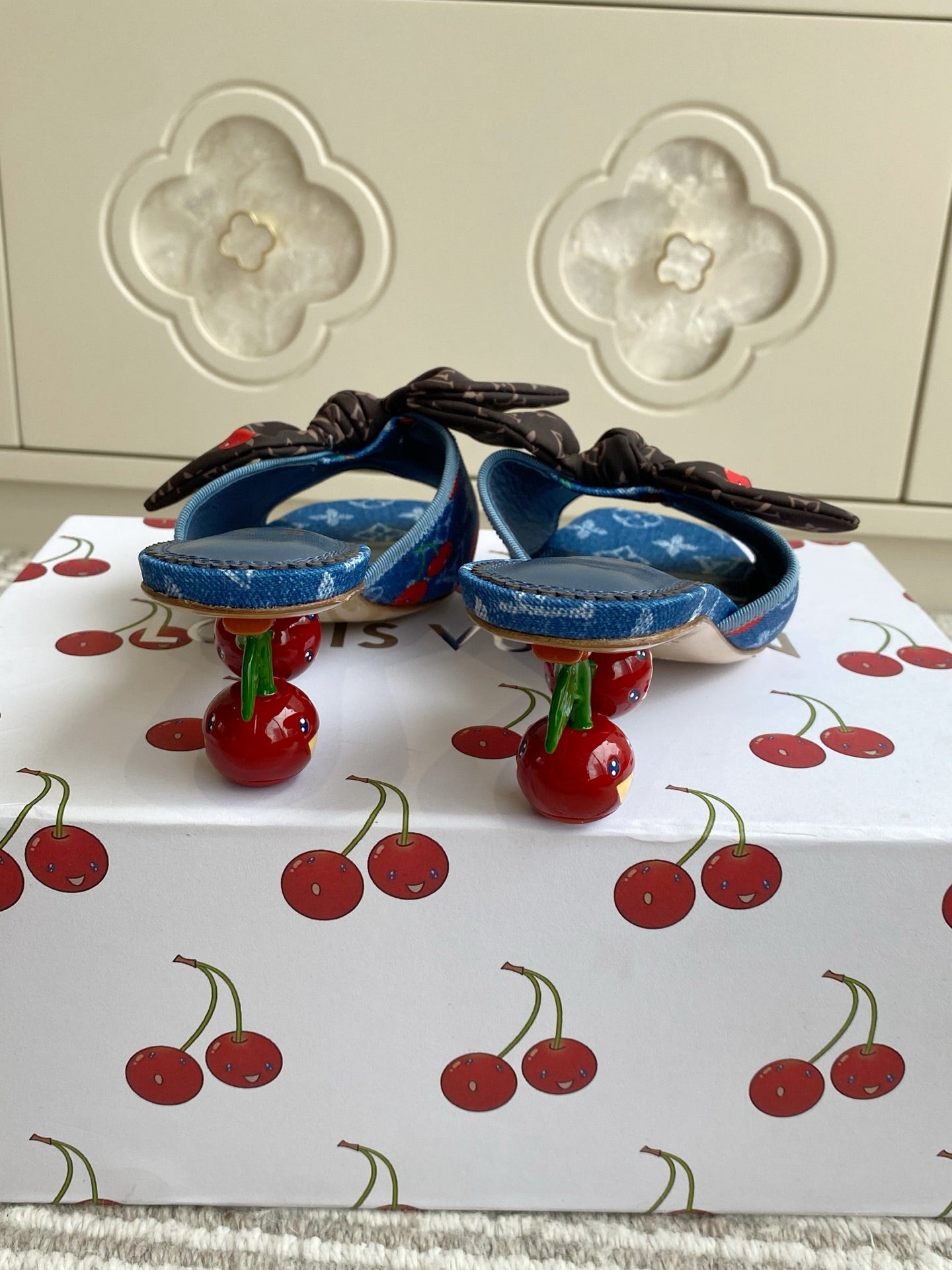 Cherry Series LV X TM CHERIE Sandals Beige Light Blue Denim 442129