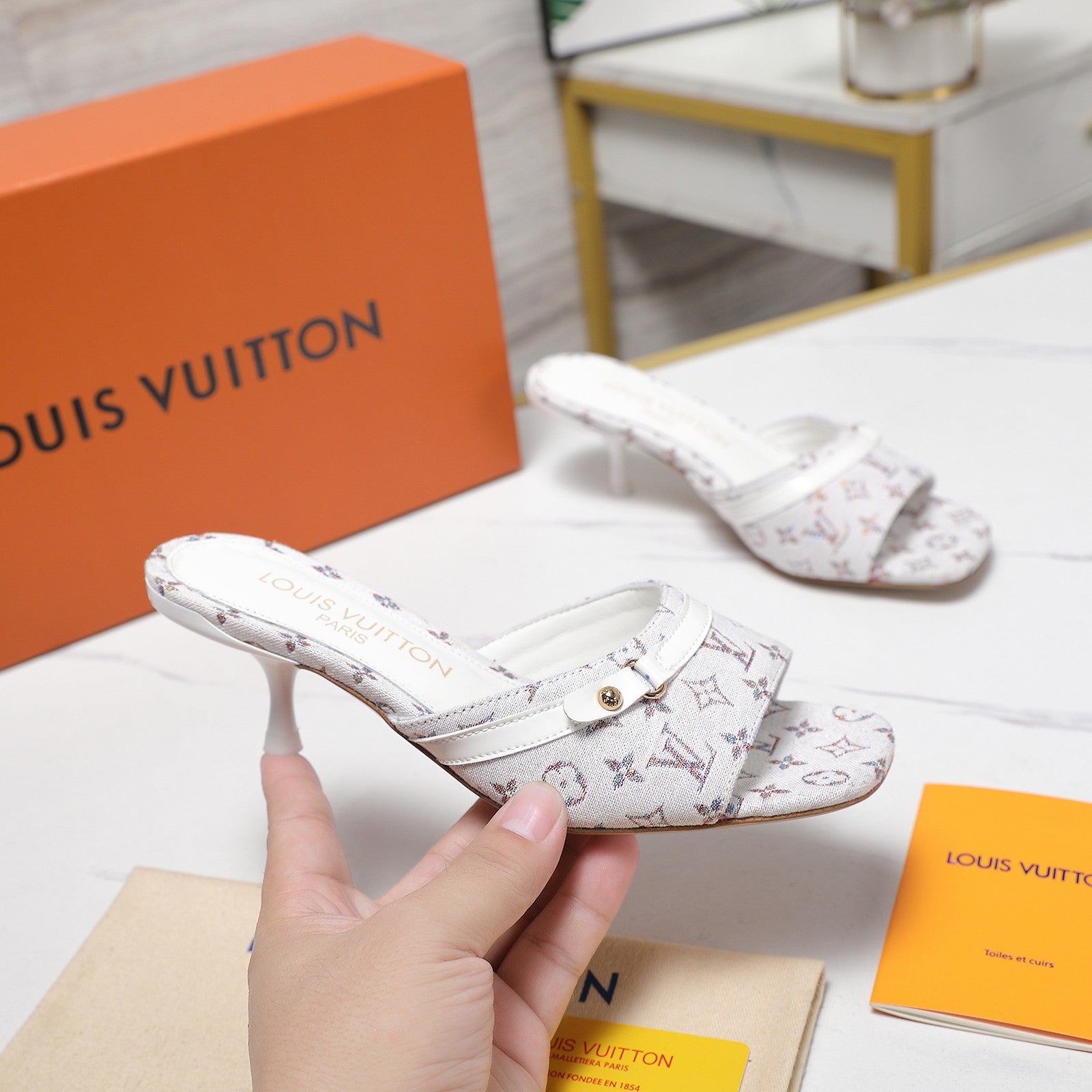 LV 6AM Mule 55mm Multicolor Cowhide Monogram Canvas 456145