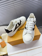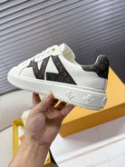 LV 1AIEFF Time Out Sneaker White Cowhide Brown Monogram Canvas 511748