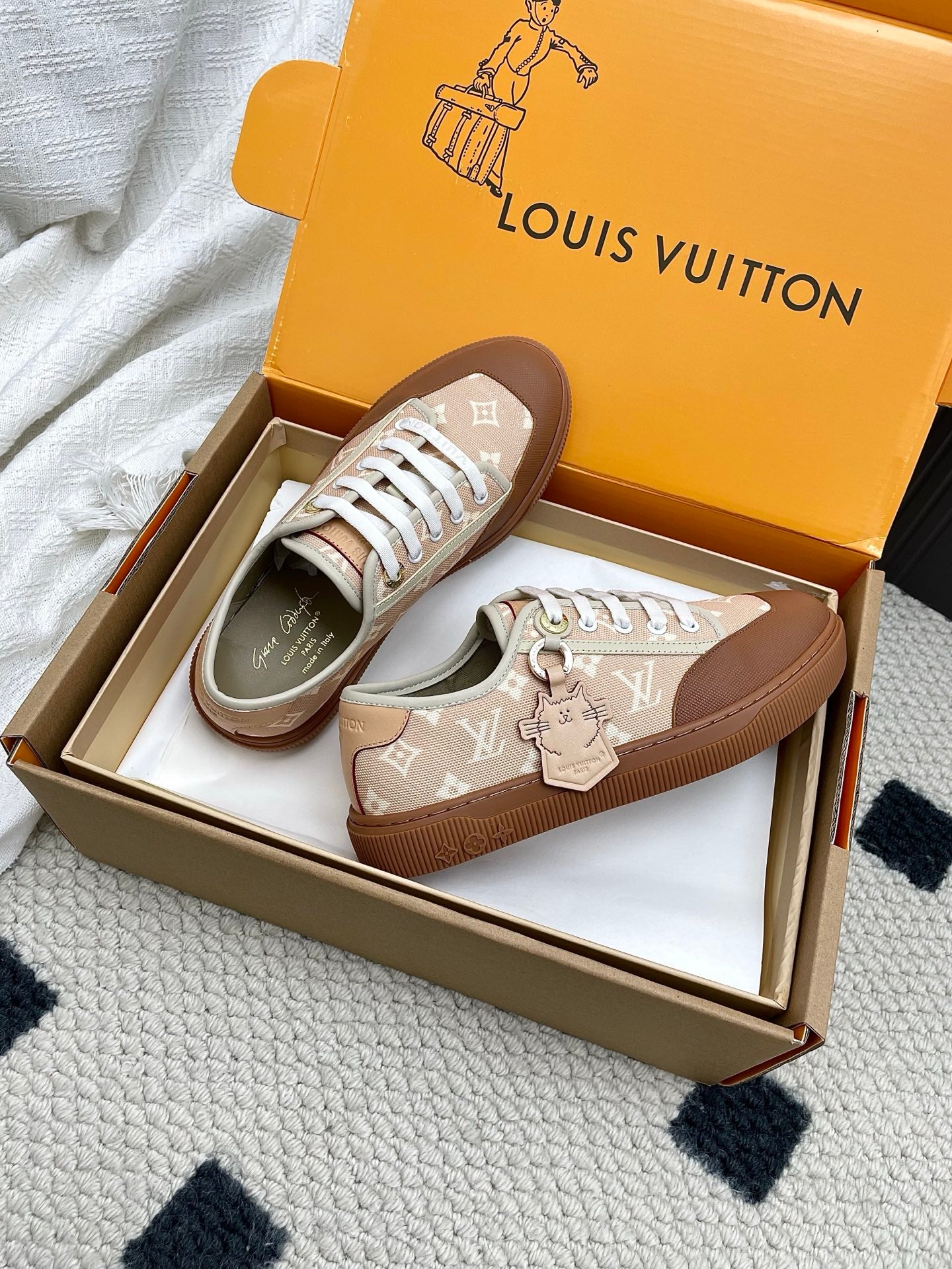 LV 1AIFAY Lagoon Sneakers Beige Monogram Flowers Canvas 511585