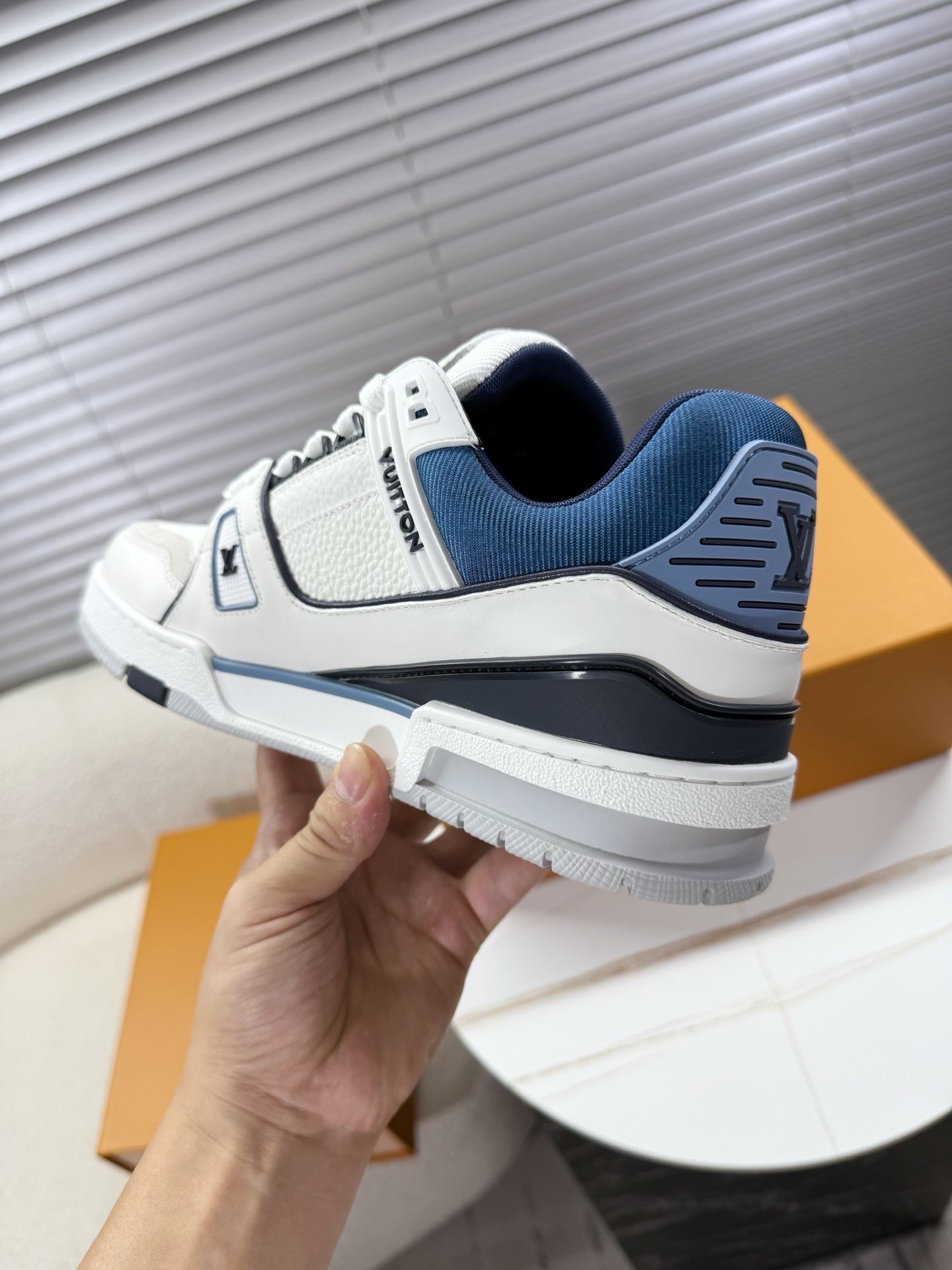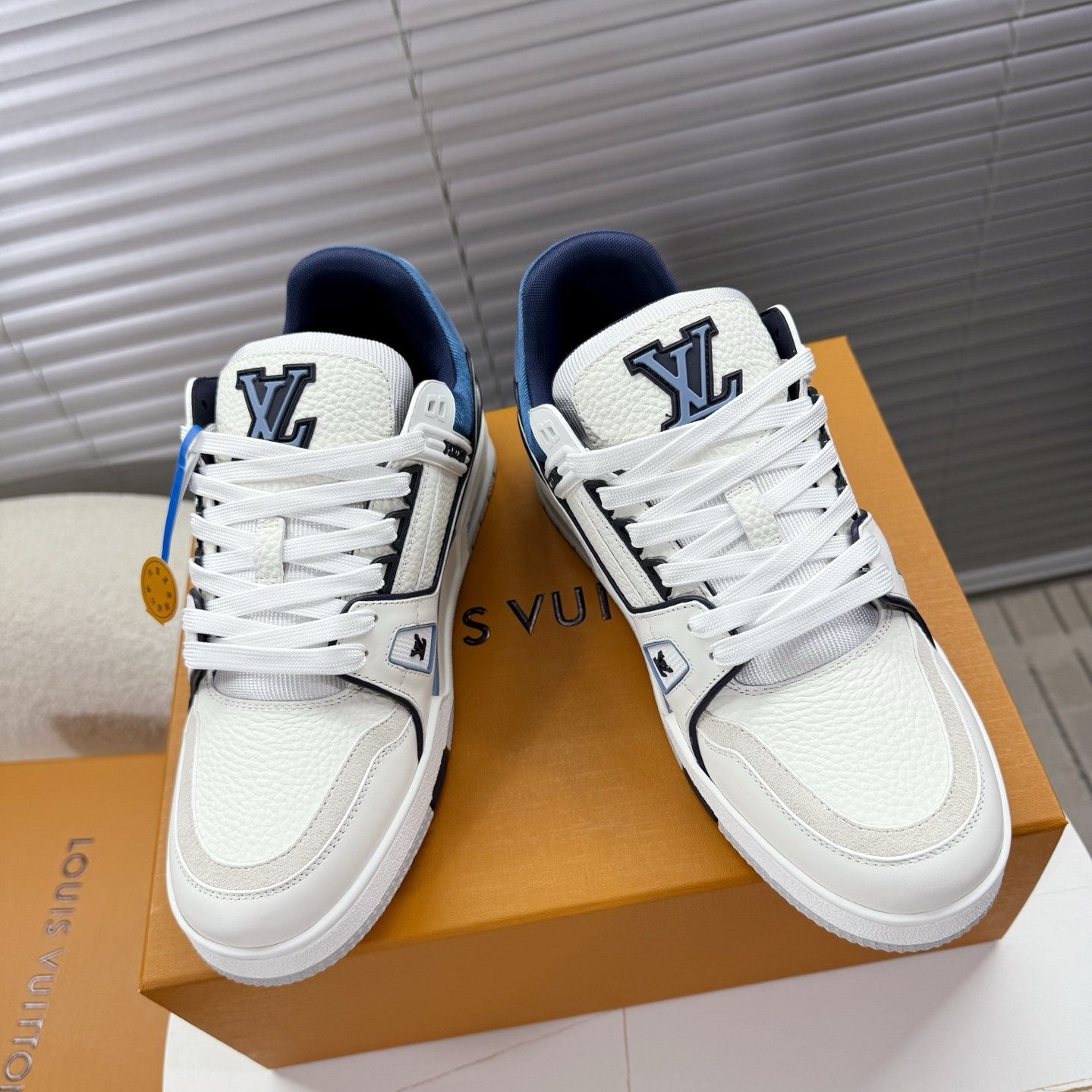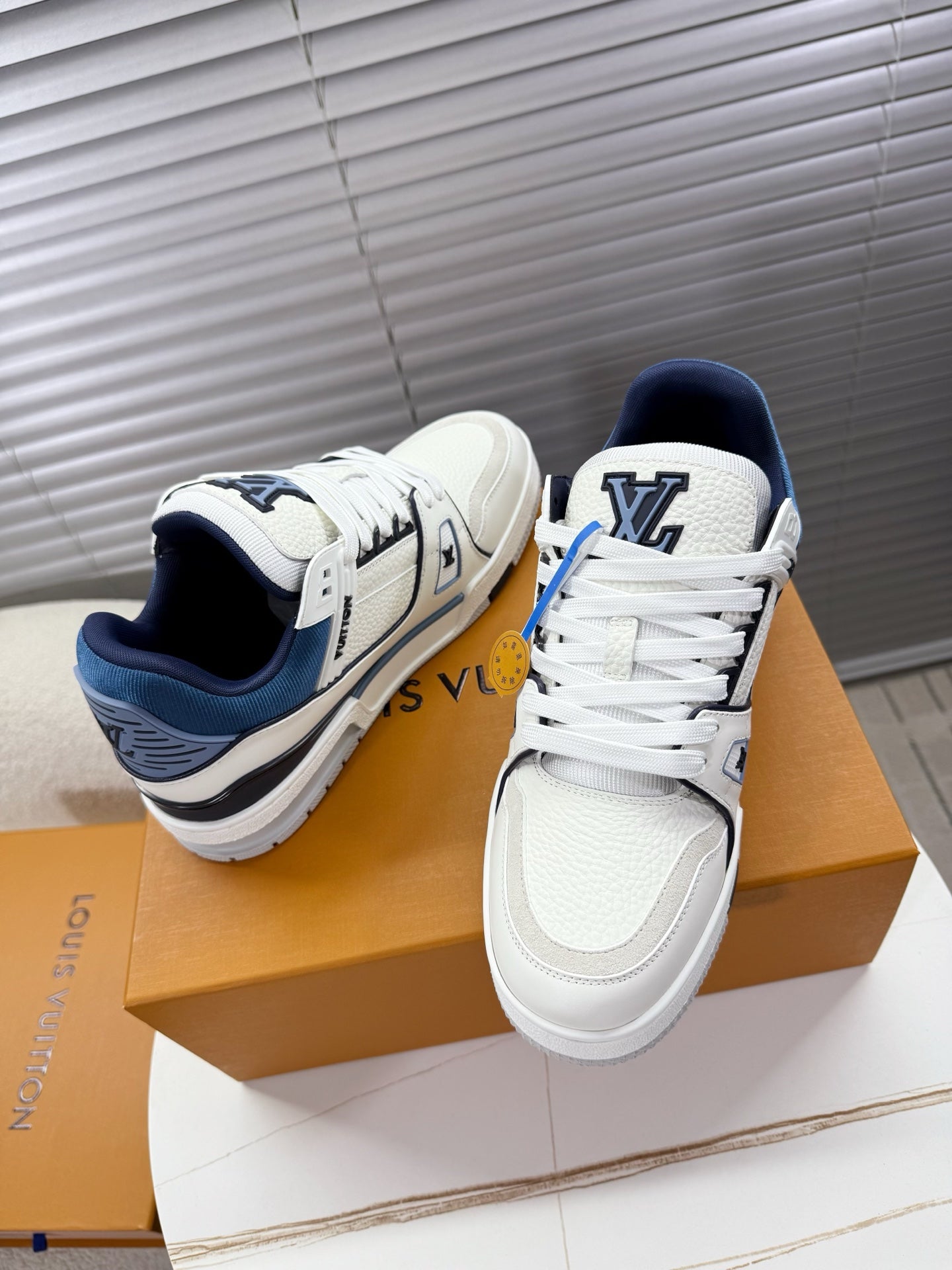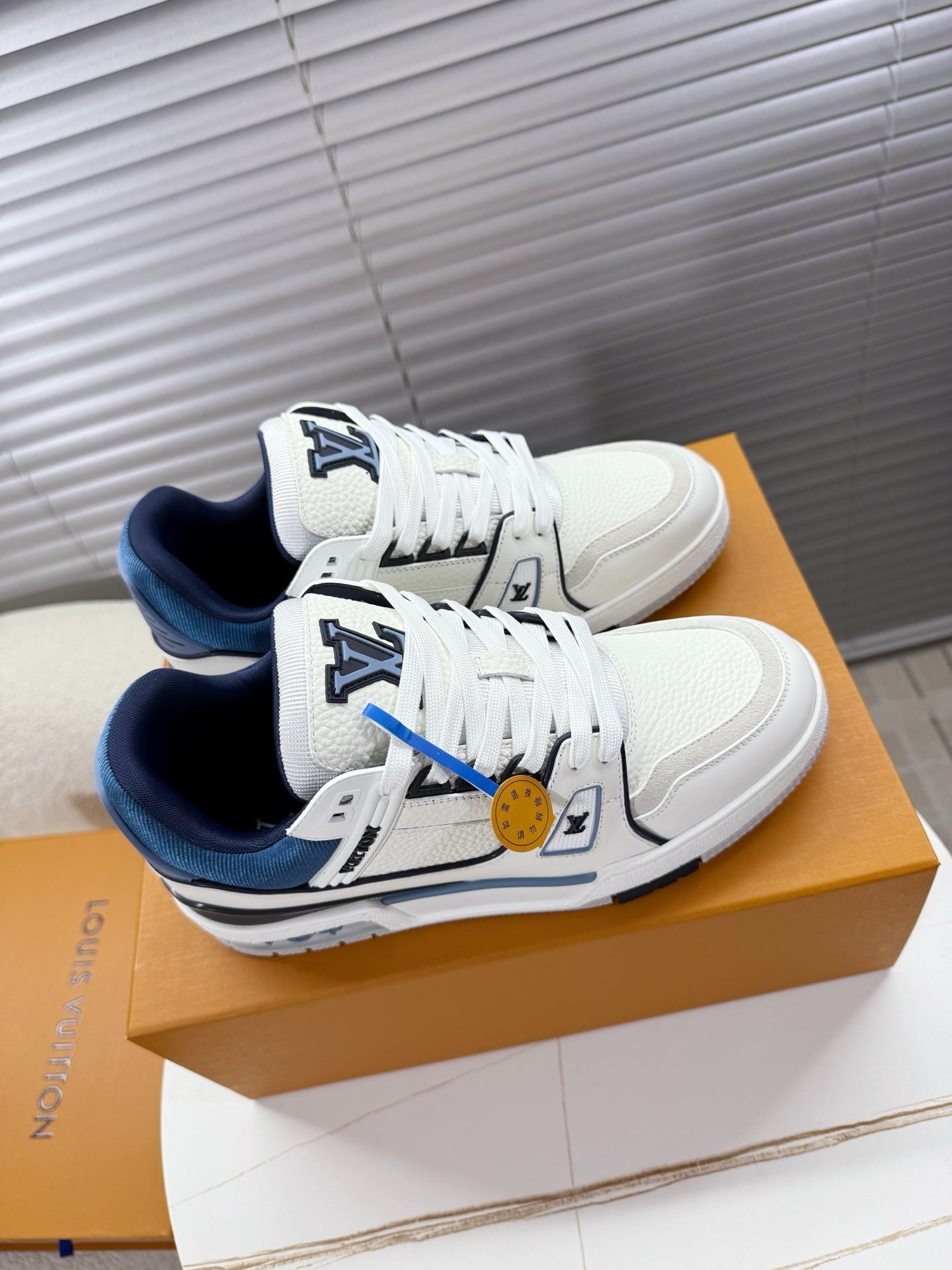 LV 1AIJ41 Trainer Sports Shoes White Blue Grained Calfskin 511754