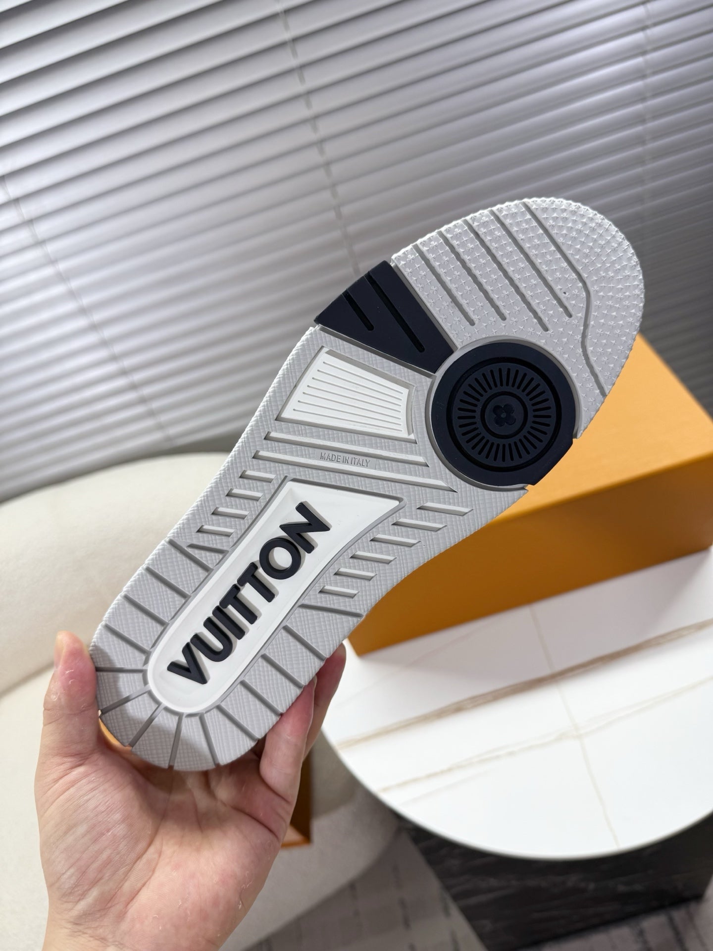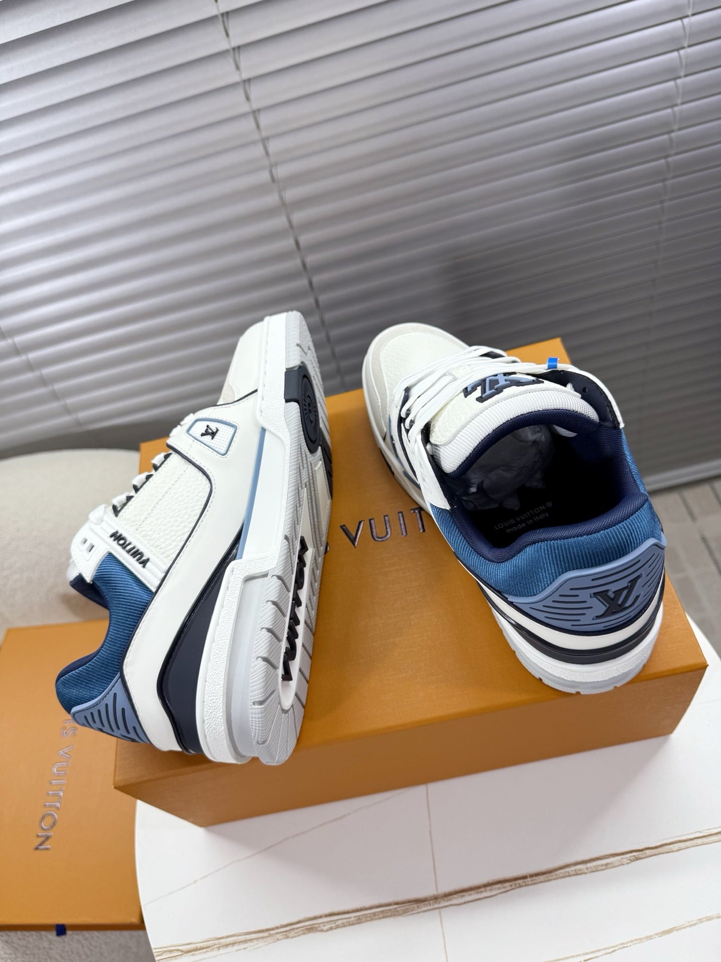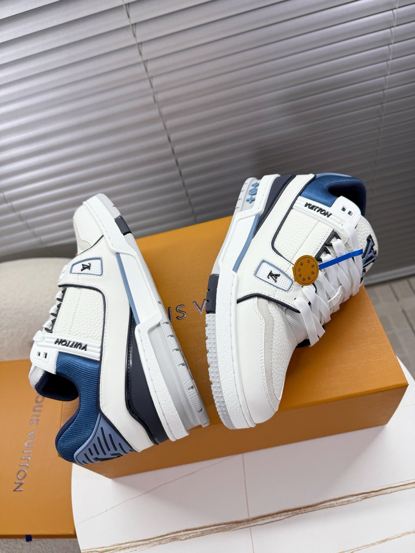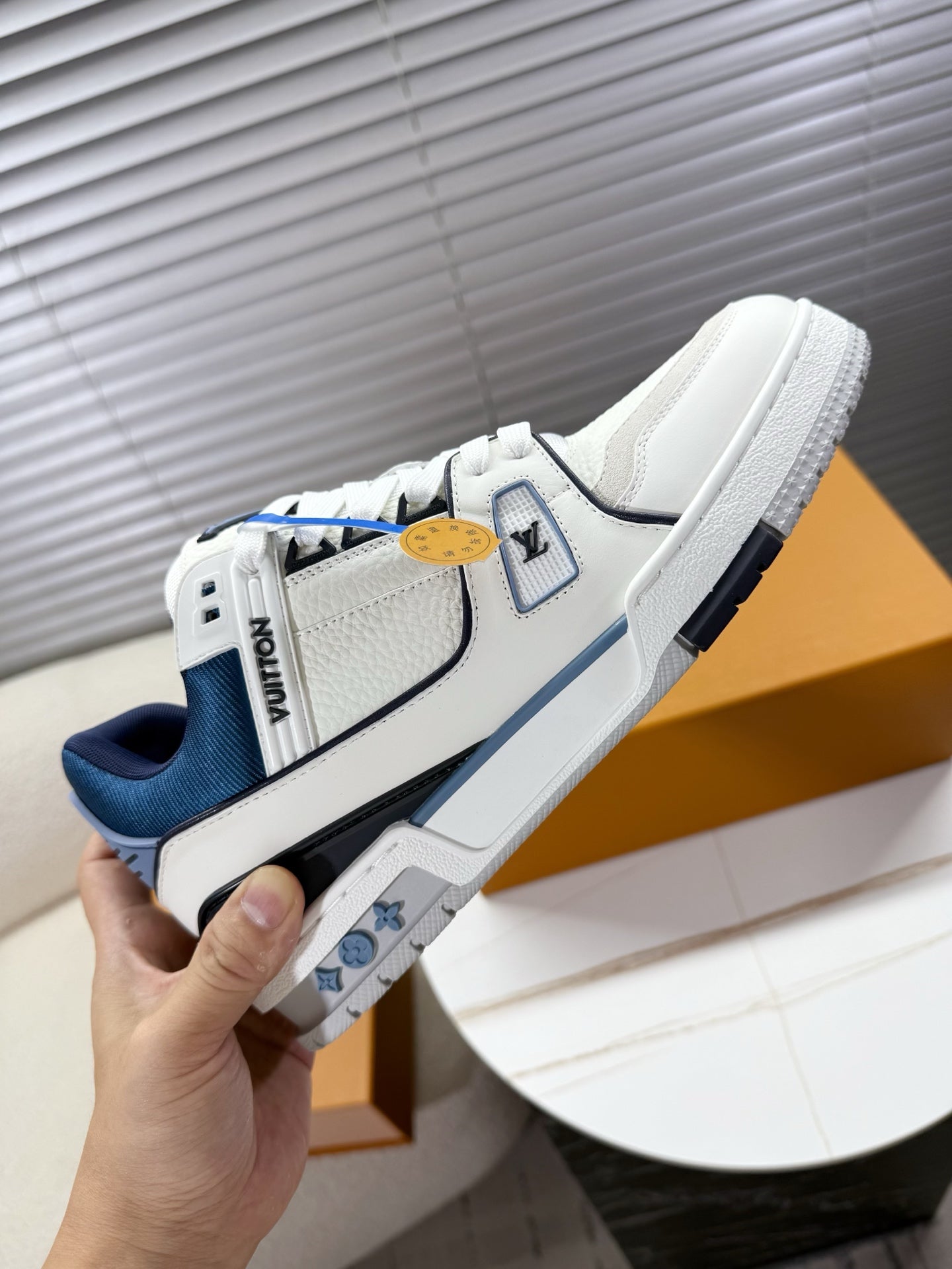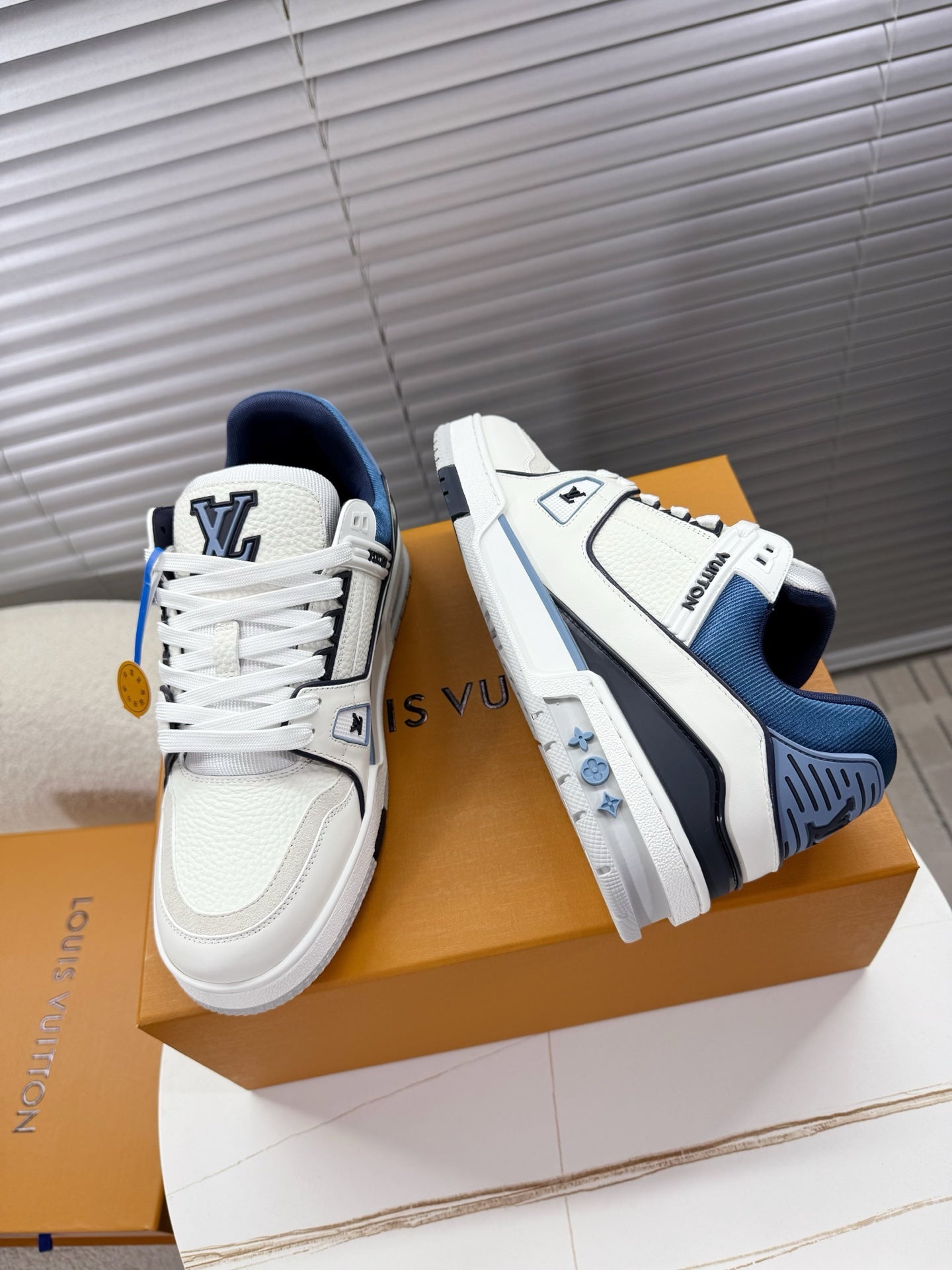 LV 1AIJ41 Trainer Sports Shoes White Blue Grained Calfskin 511754