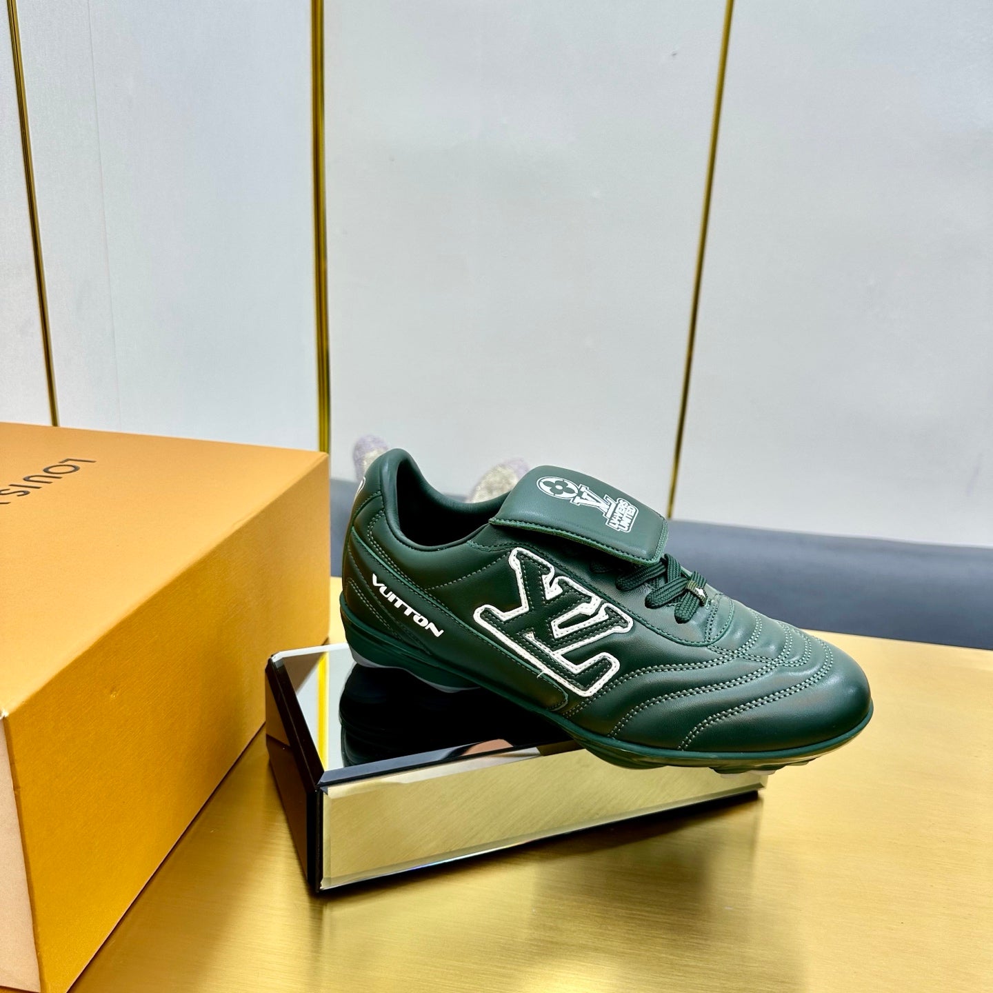 LV 25C Sneaker LV Footprint Soccer Vert Cuir de Veau uni 219933