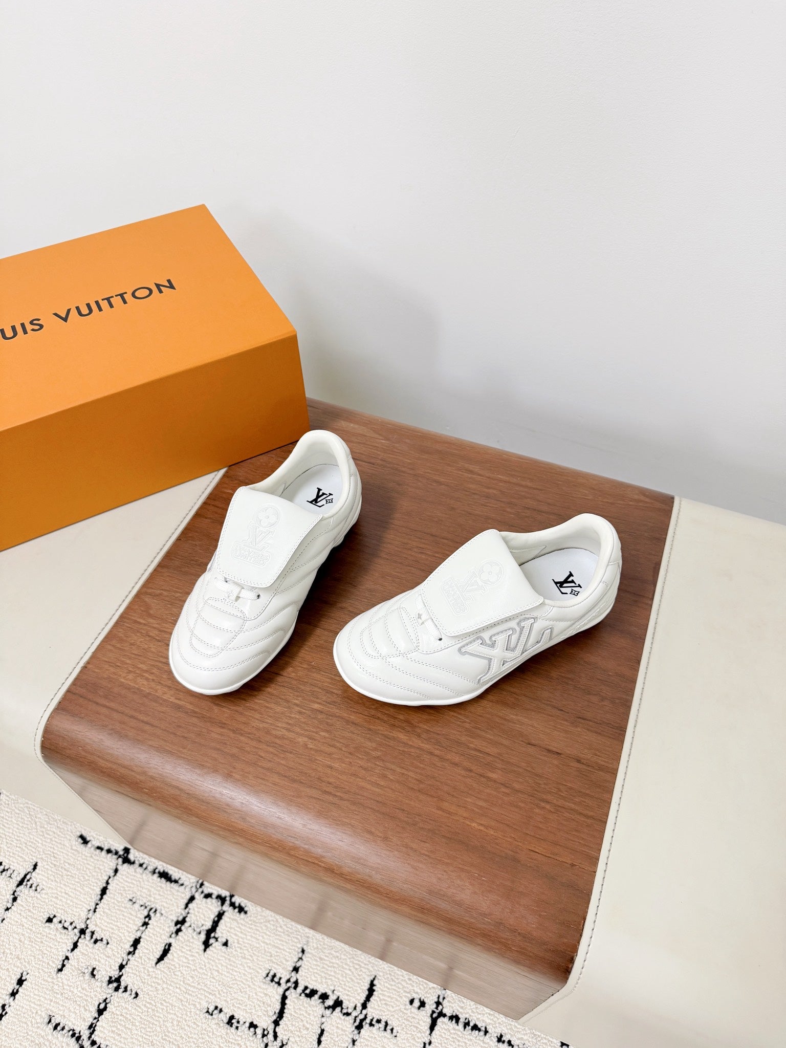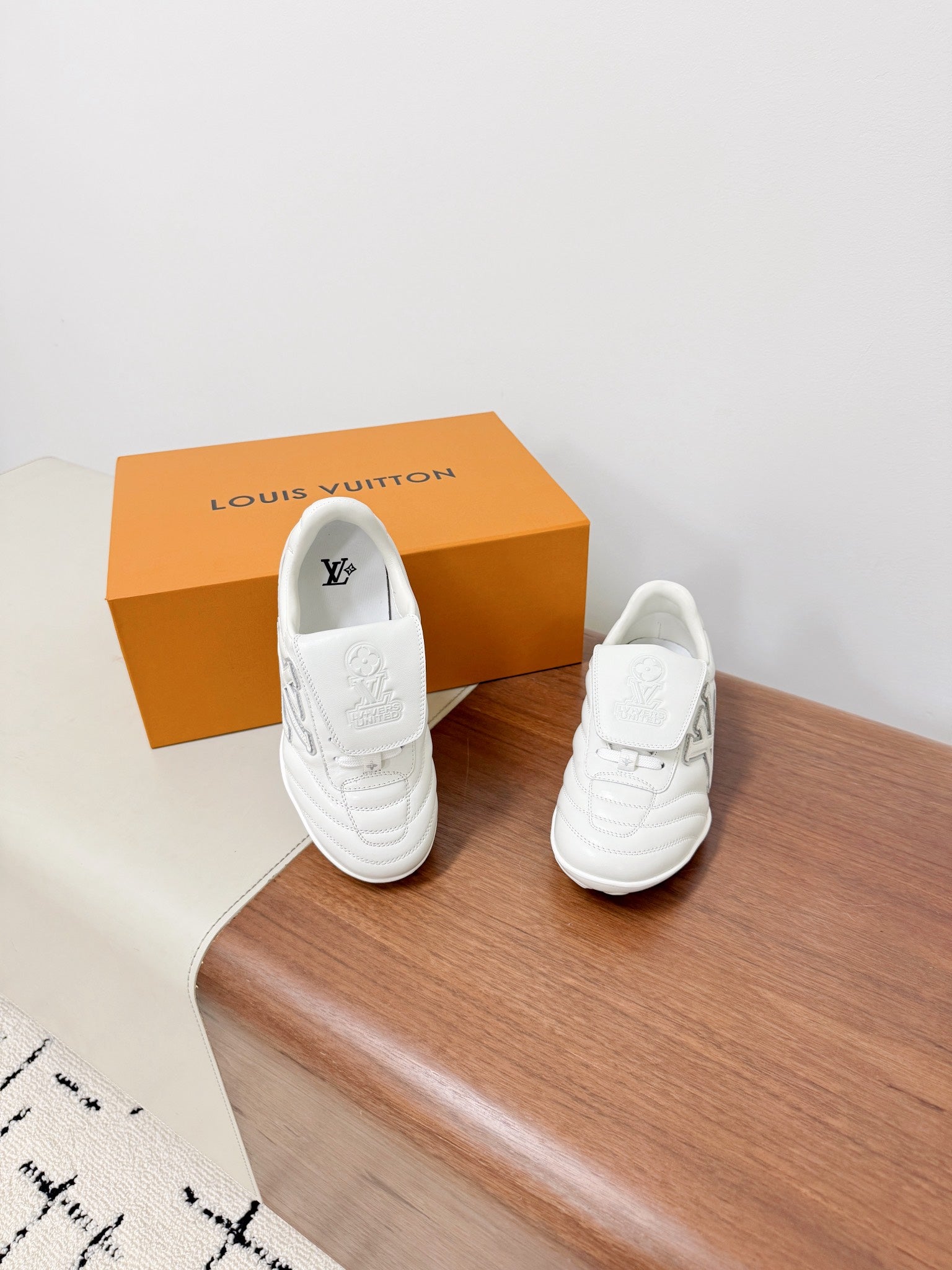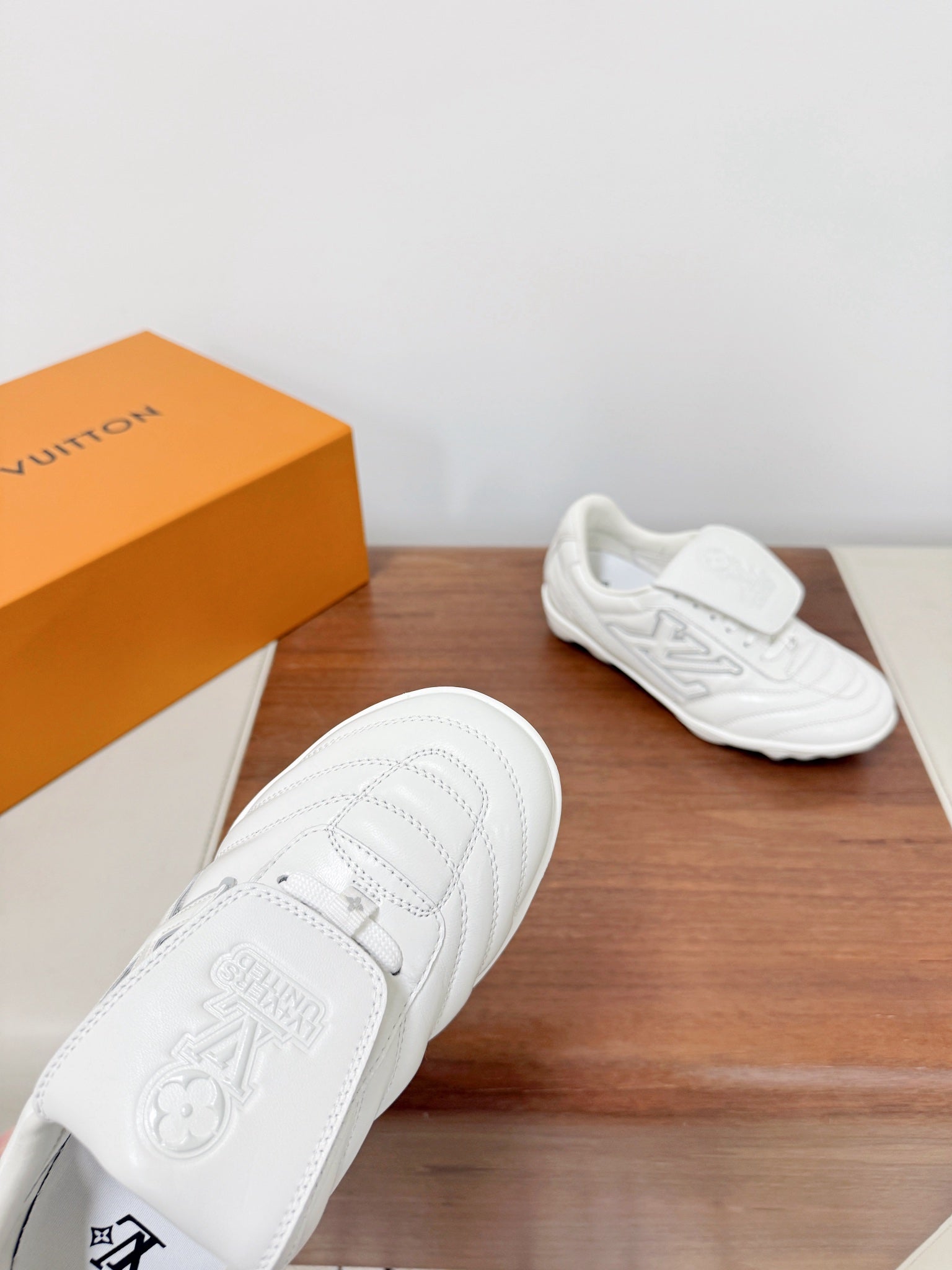 LV Footprint Soccer Sneaker White Cowhide Leather 492886