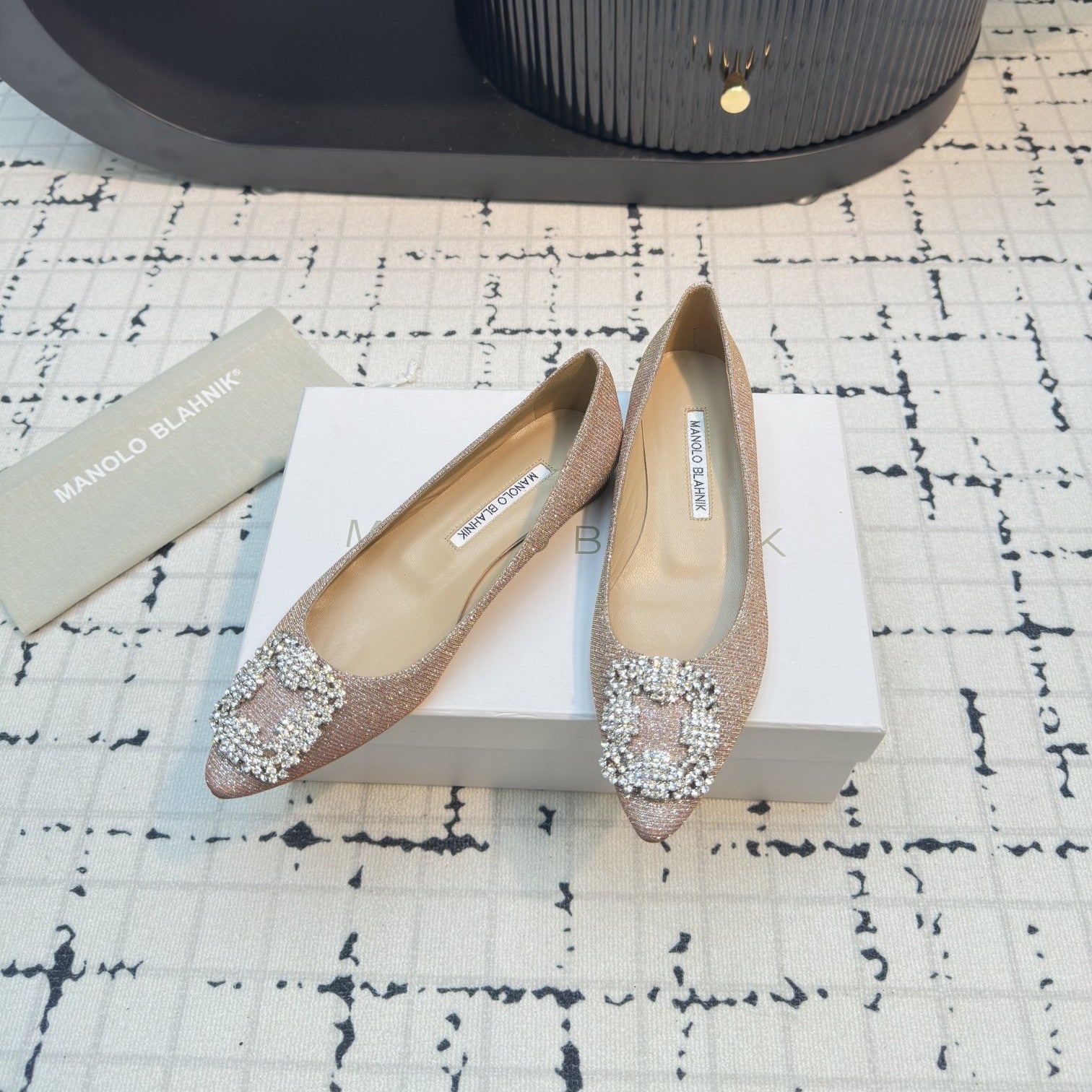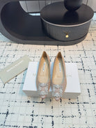 Hangisi 20 Ballet Flat Beige Glitter Fabric Leather Jewel Buckle 912605