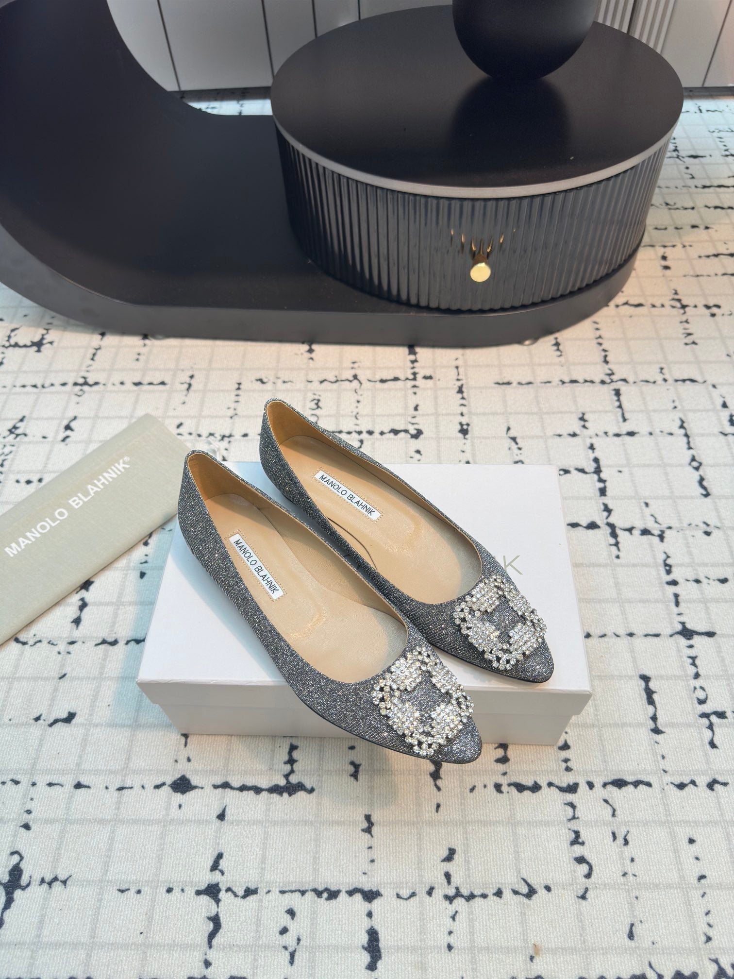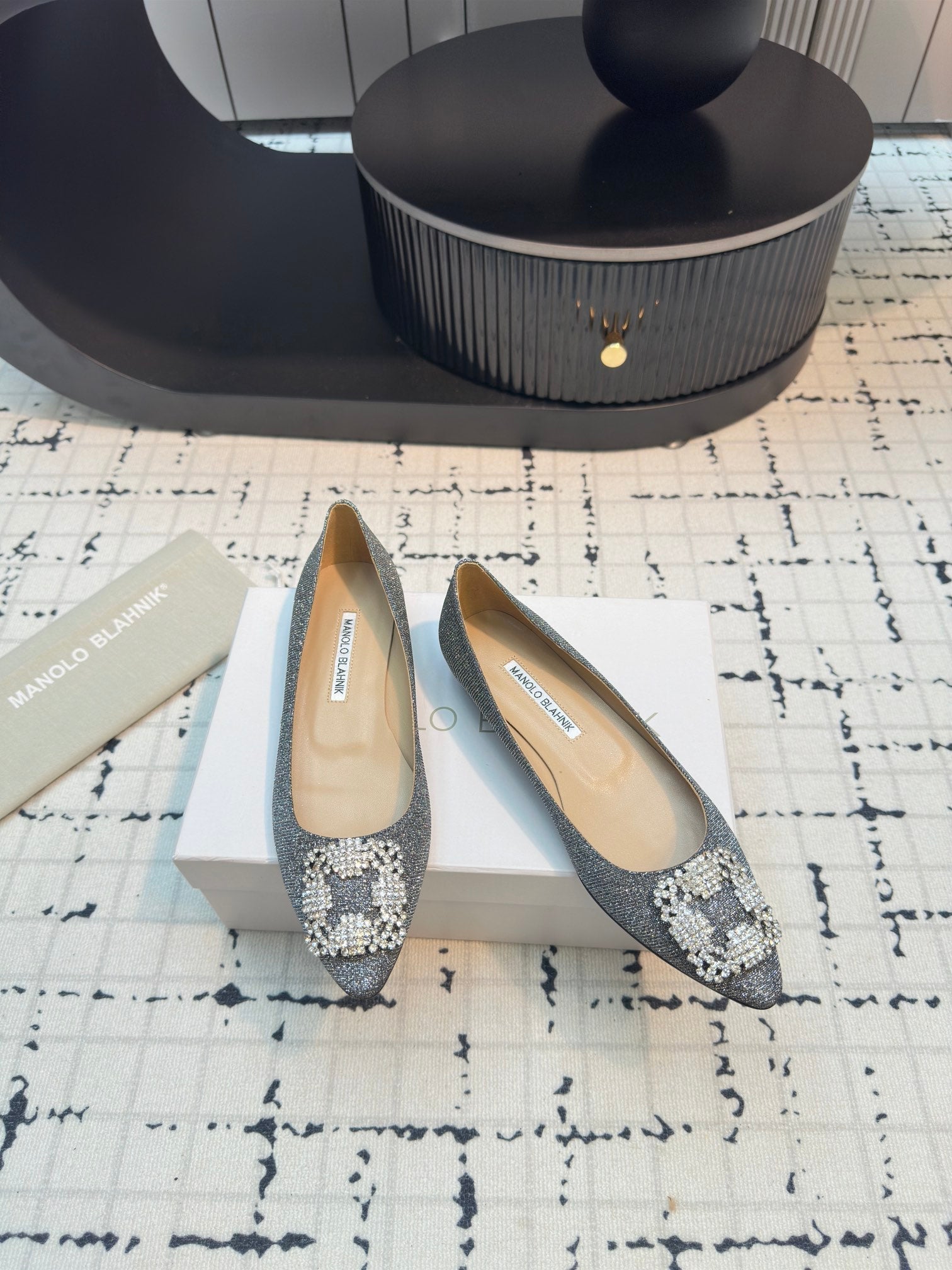 Hangisi 20 Ballet Flat Silver Glitter Fabric Leather Jewel Buckle 912607
