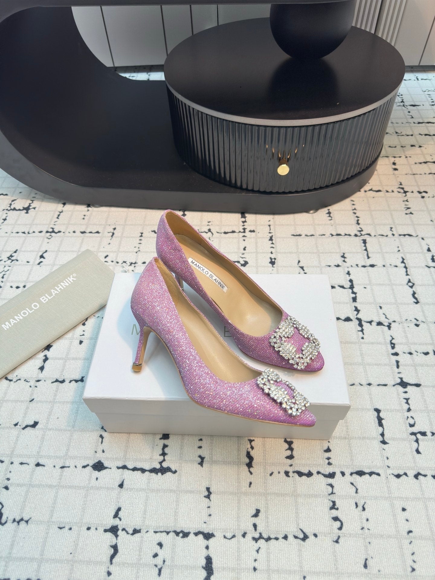 Hangisi 70 Pink Glitter Fabric Leather Jewel Buckle Pumps 912613