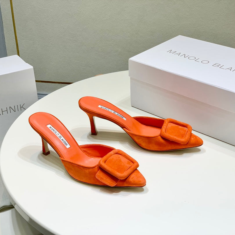 Manolo Mules 7cm Orange Suede Leather Bottom 451189