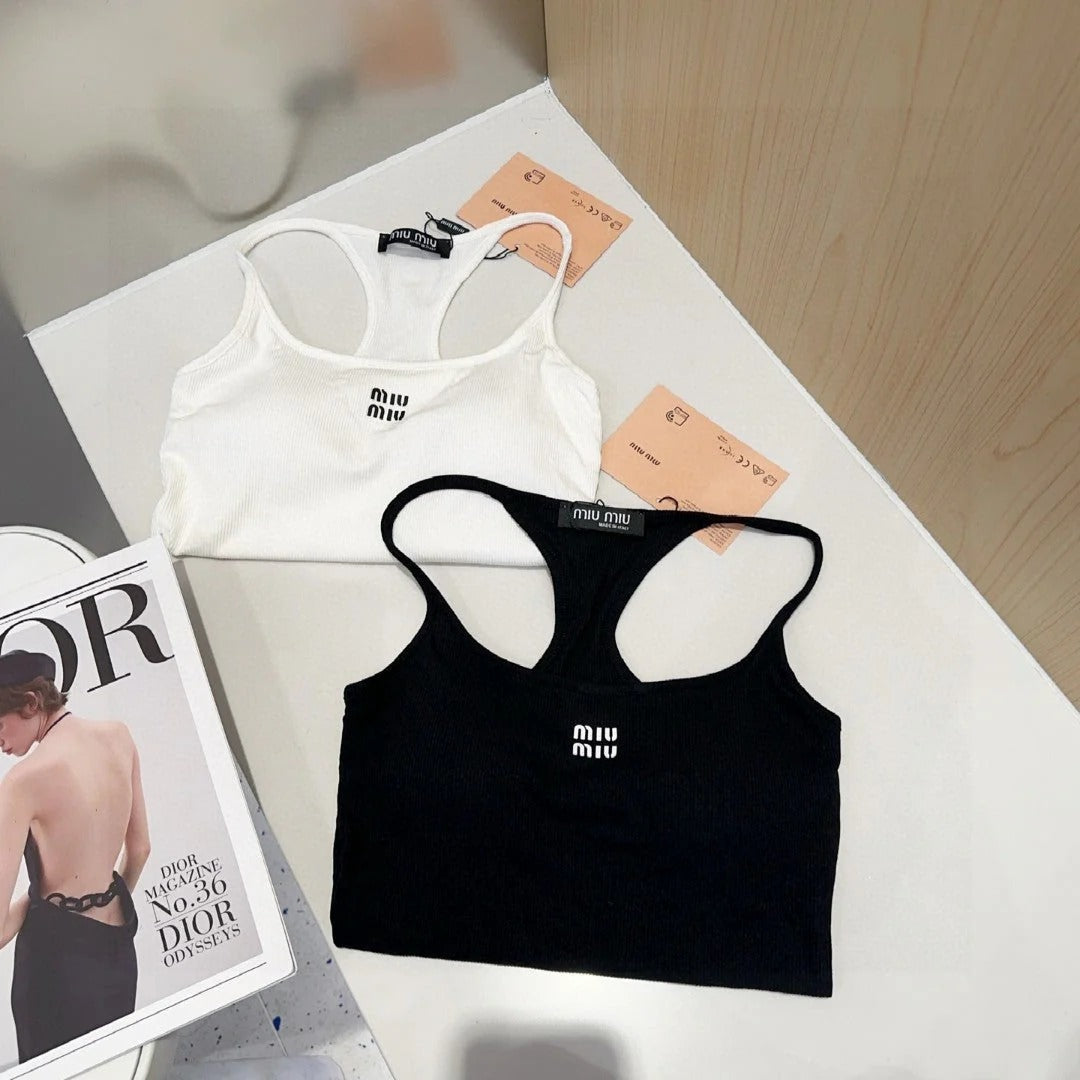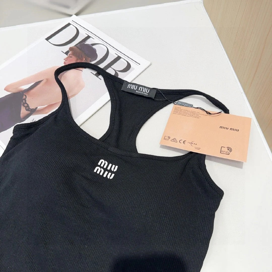 CAMISOLE 617514 IN BLACK COTTON RIBBED KNIT