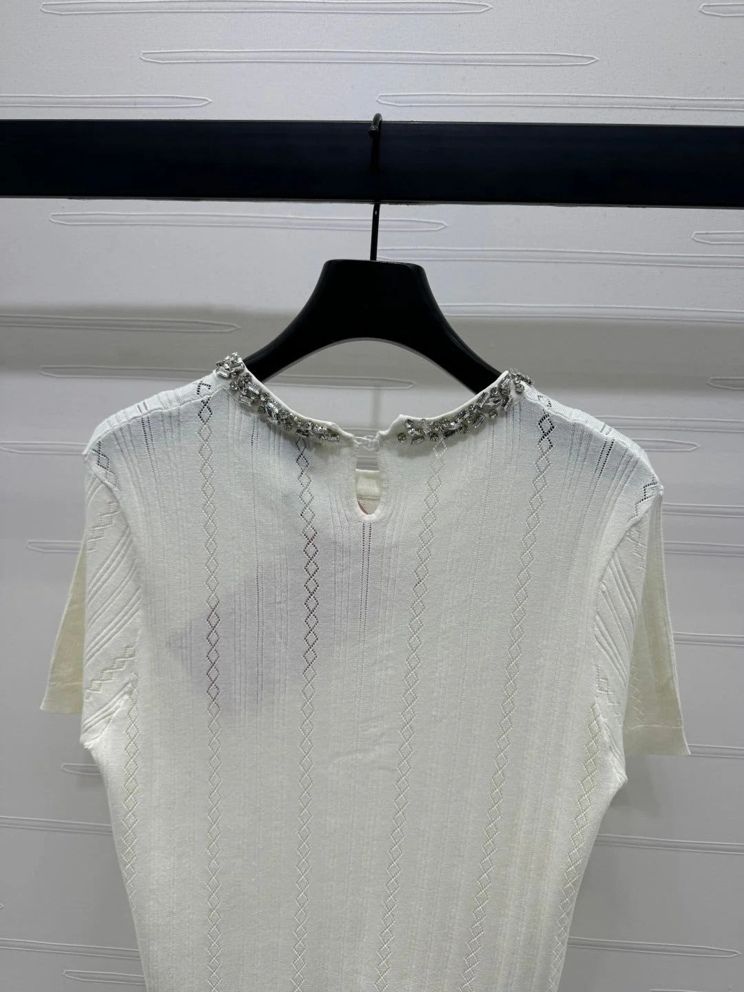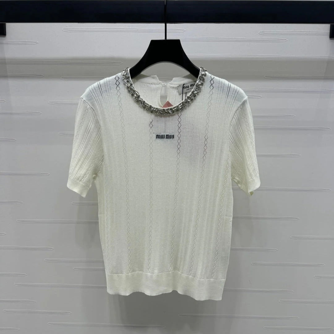 MIU 25S RHINESTONE COLLAR T-SHIRT 264095