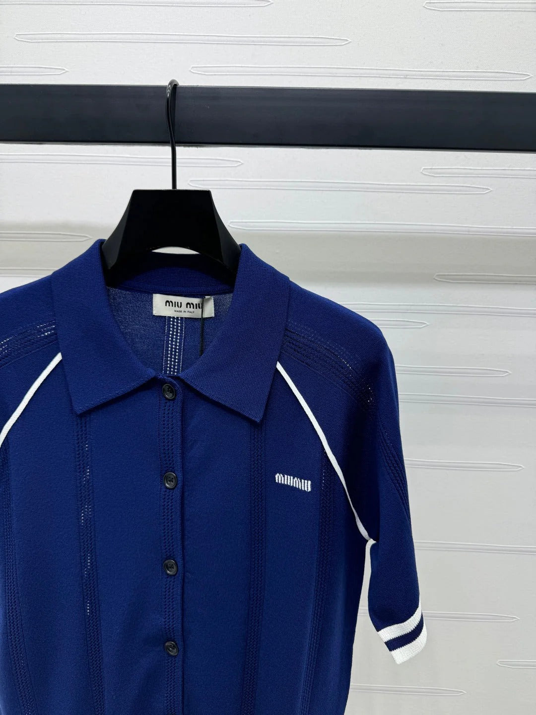 MIU 25S ROUND NECK STRIPED KNIT RAGLAN SHORT SLEEVES 264109