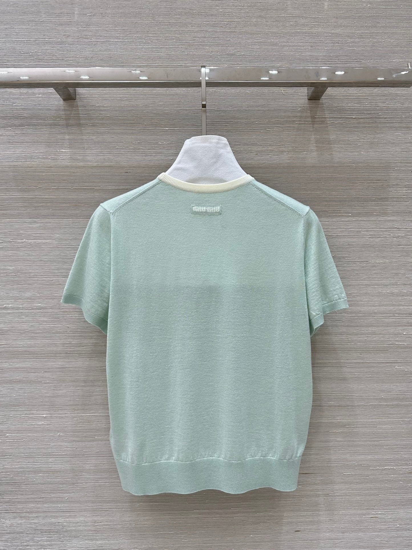Miu Miu 25 Short-sleeve Top Mint Green Wool