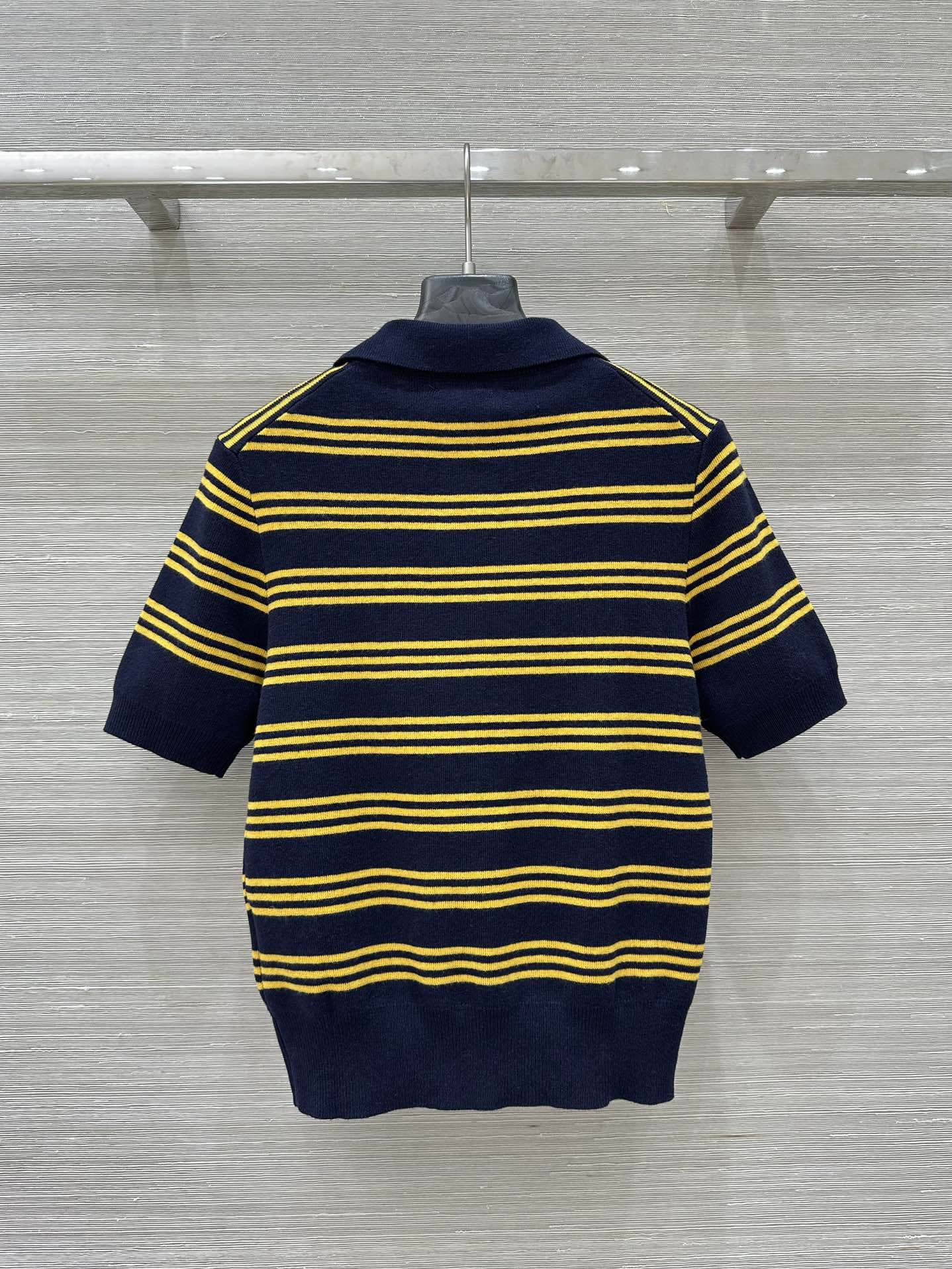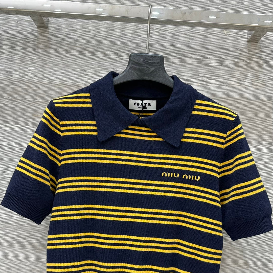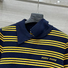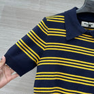 Miu Miu 25 Striped Polo Top Dark Blue Yellow Wool
