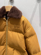 Miu Miu Collar Down jacket Camel Brown Polyester Fiber