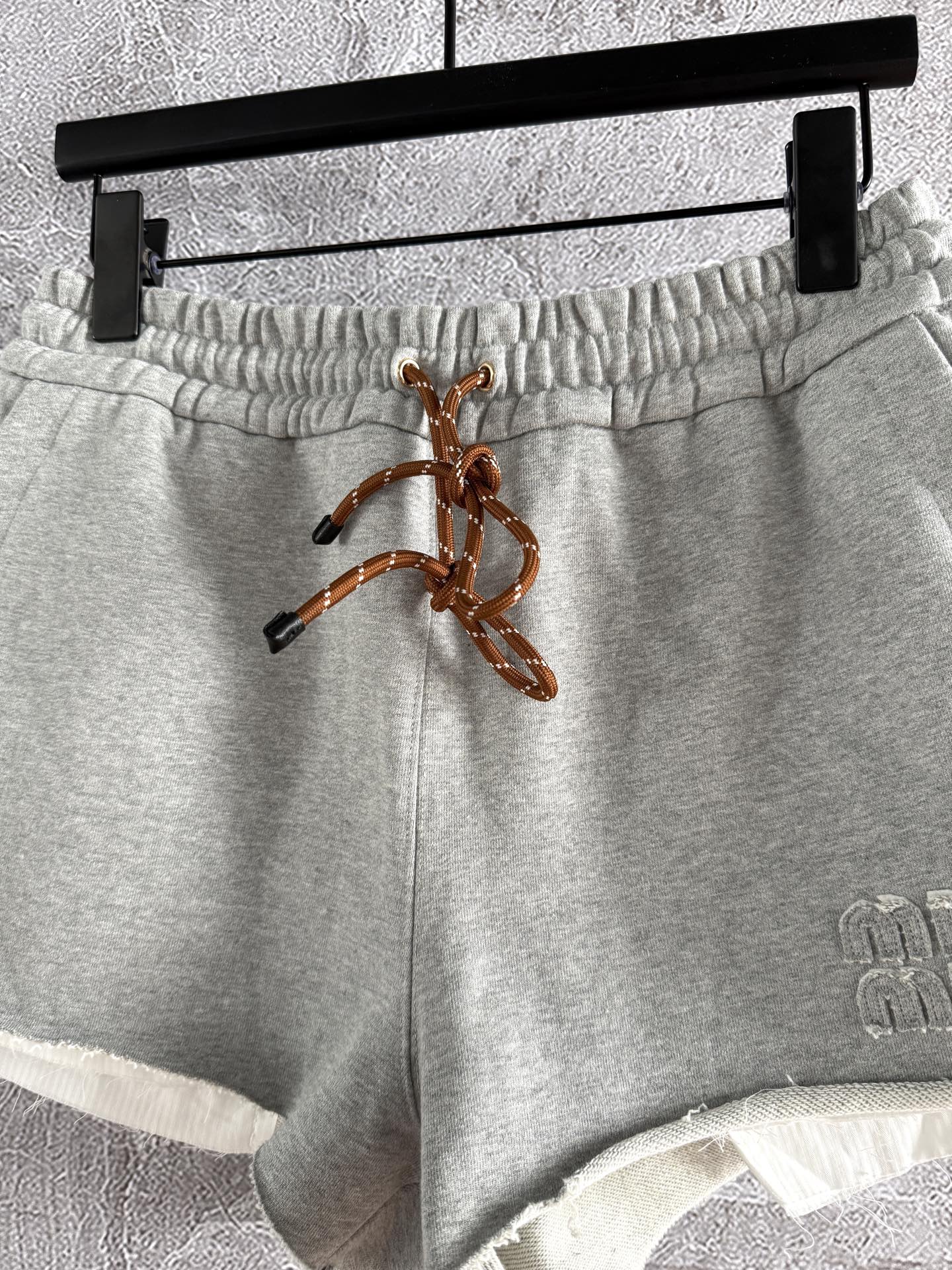 Miu Miu Drawstring raw edge shorts Ligth Gray Cotton