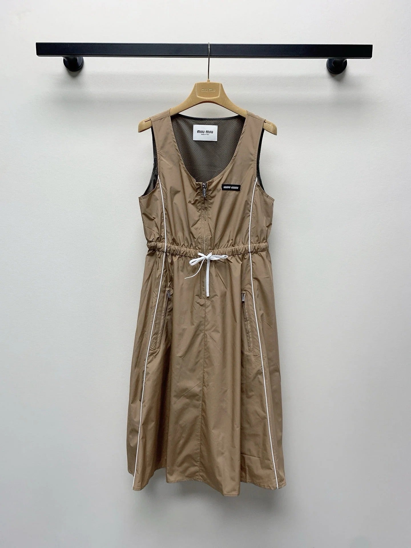 MIUMIU DRAWSTRING WAIST BLAZER DRESS WITH CREW NECK 268044