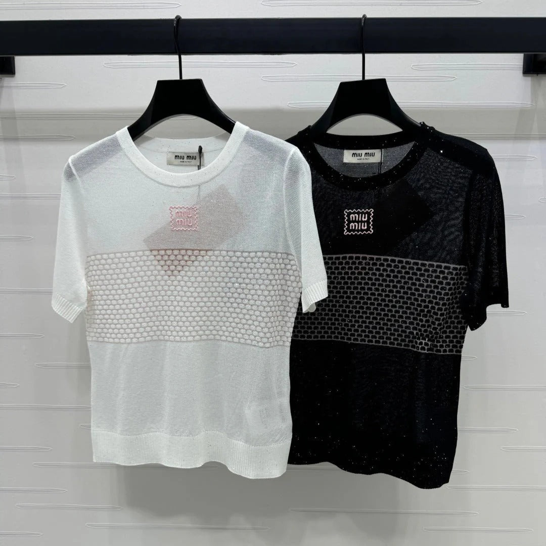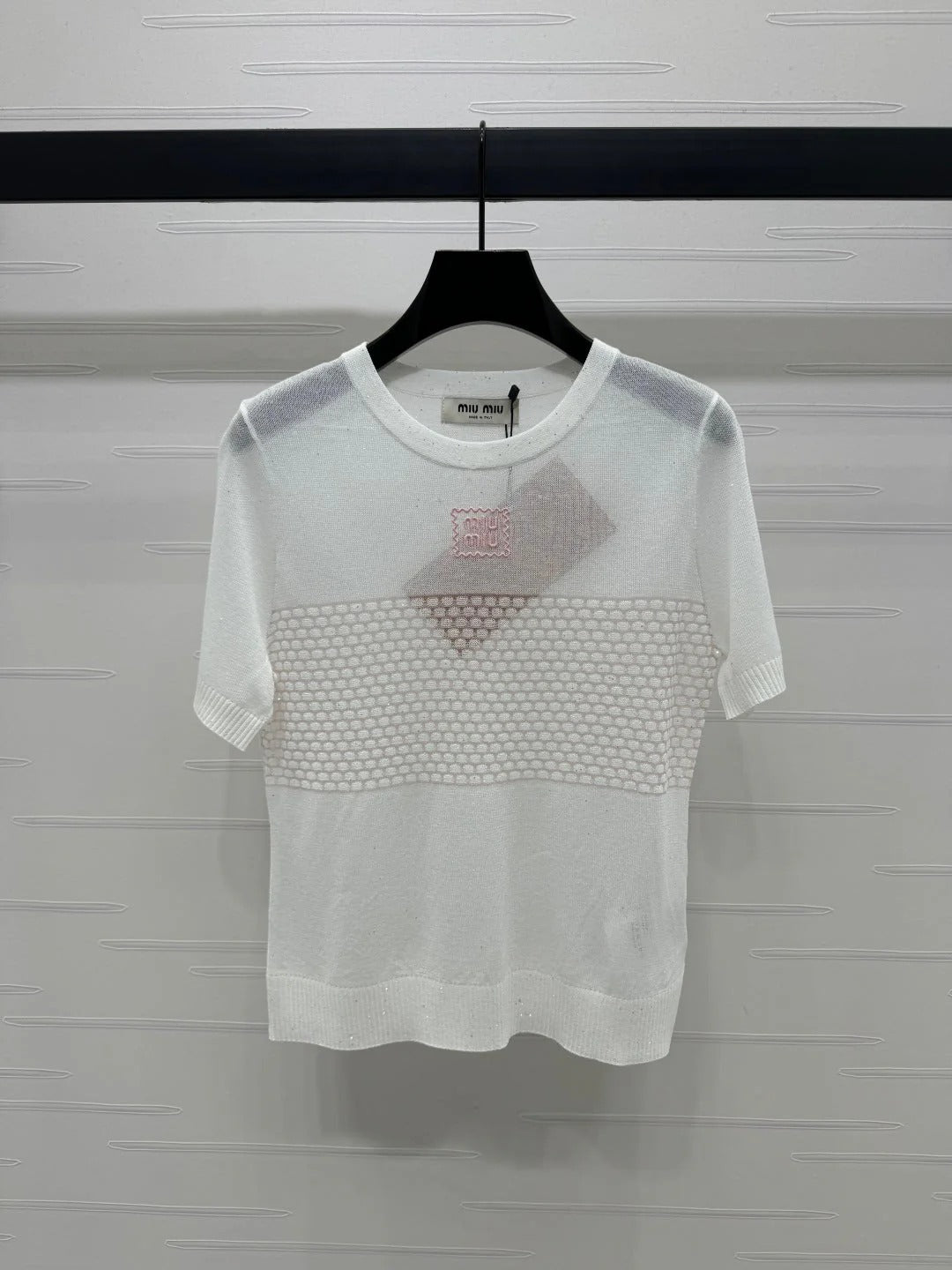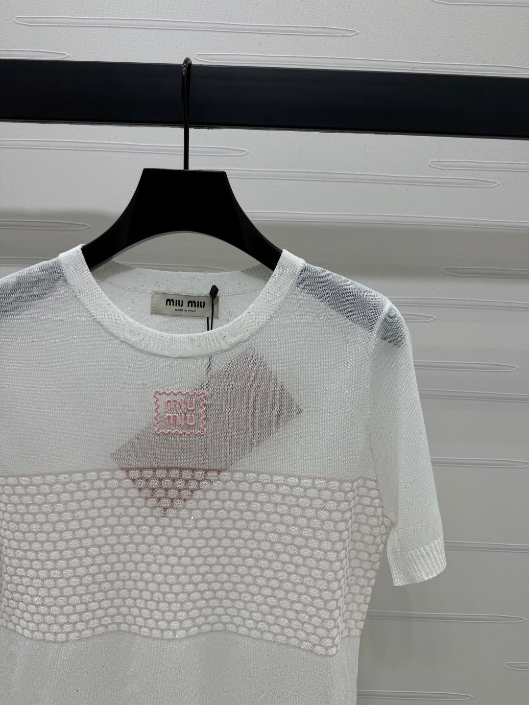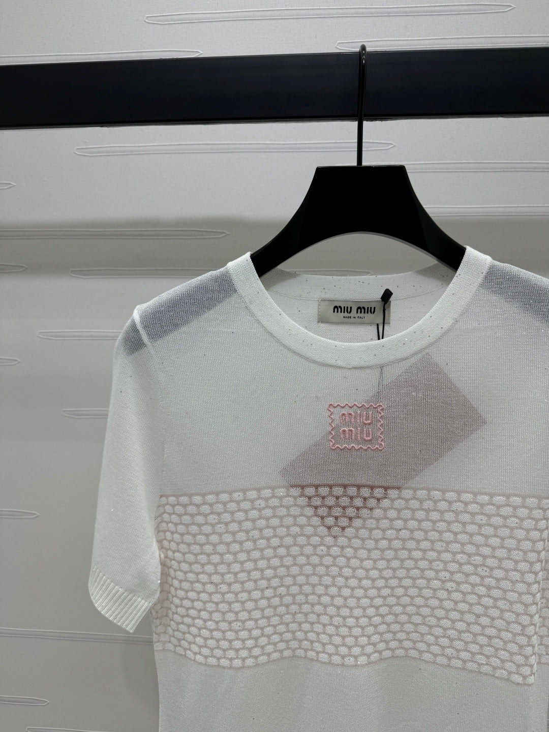 MIUMIU SHORT-SLEEVE EMBROIDERED LOGO T-SHIRT 269462