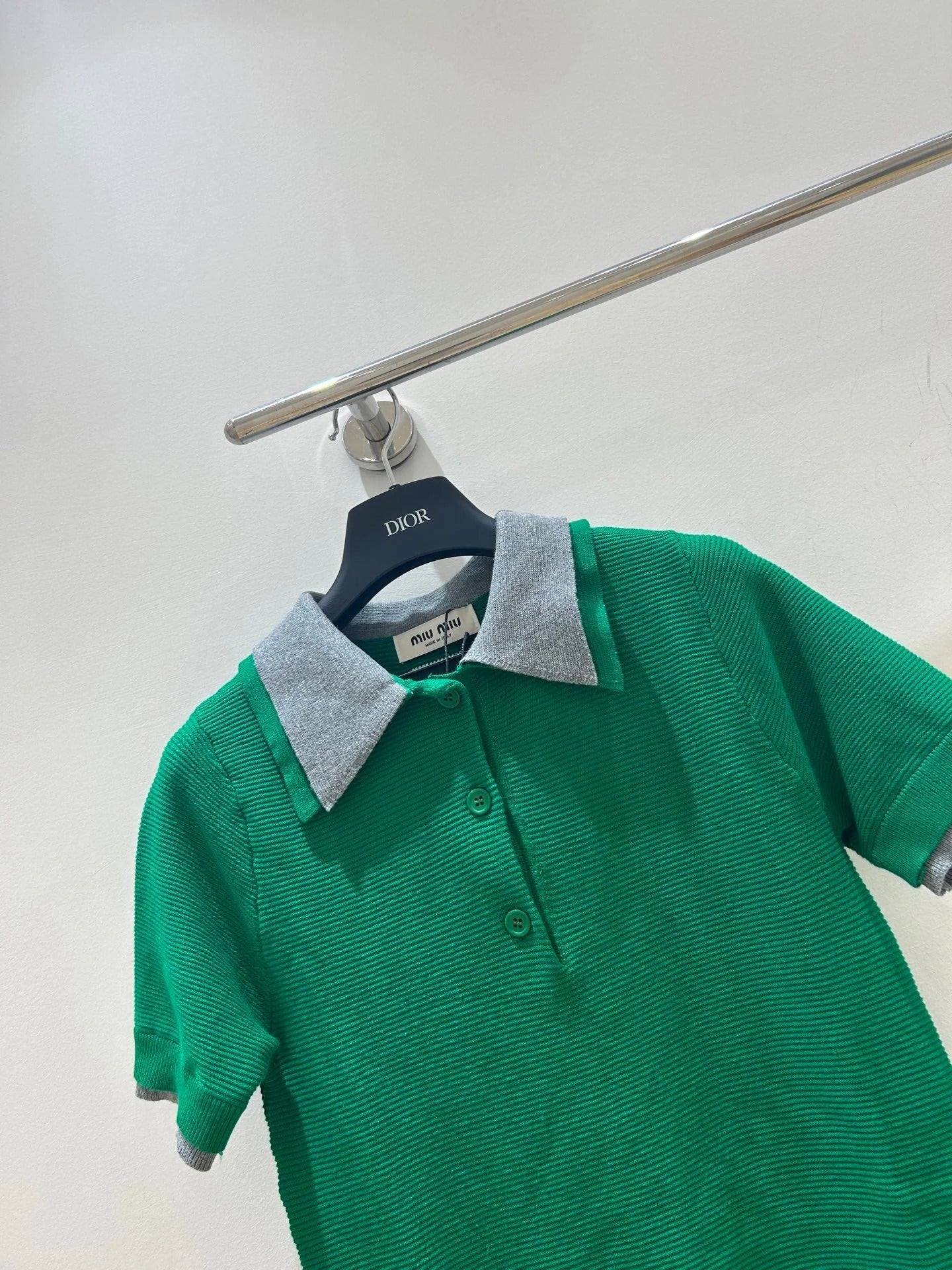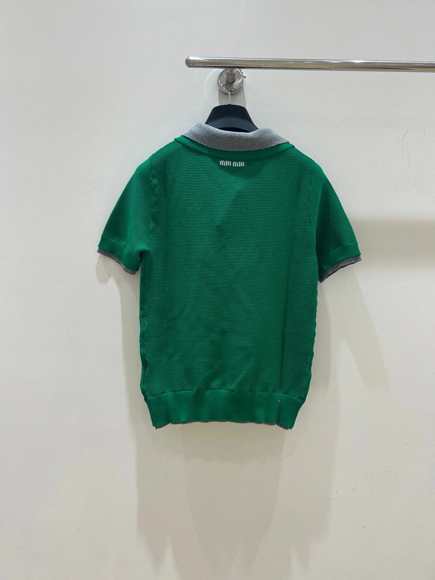 MIUMIU SHORT-SLEEVE KNIT POLO SHIRT STYLE 202