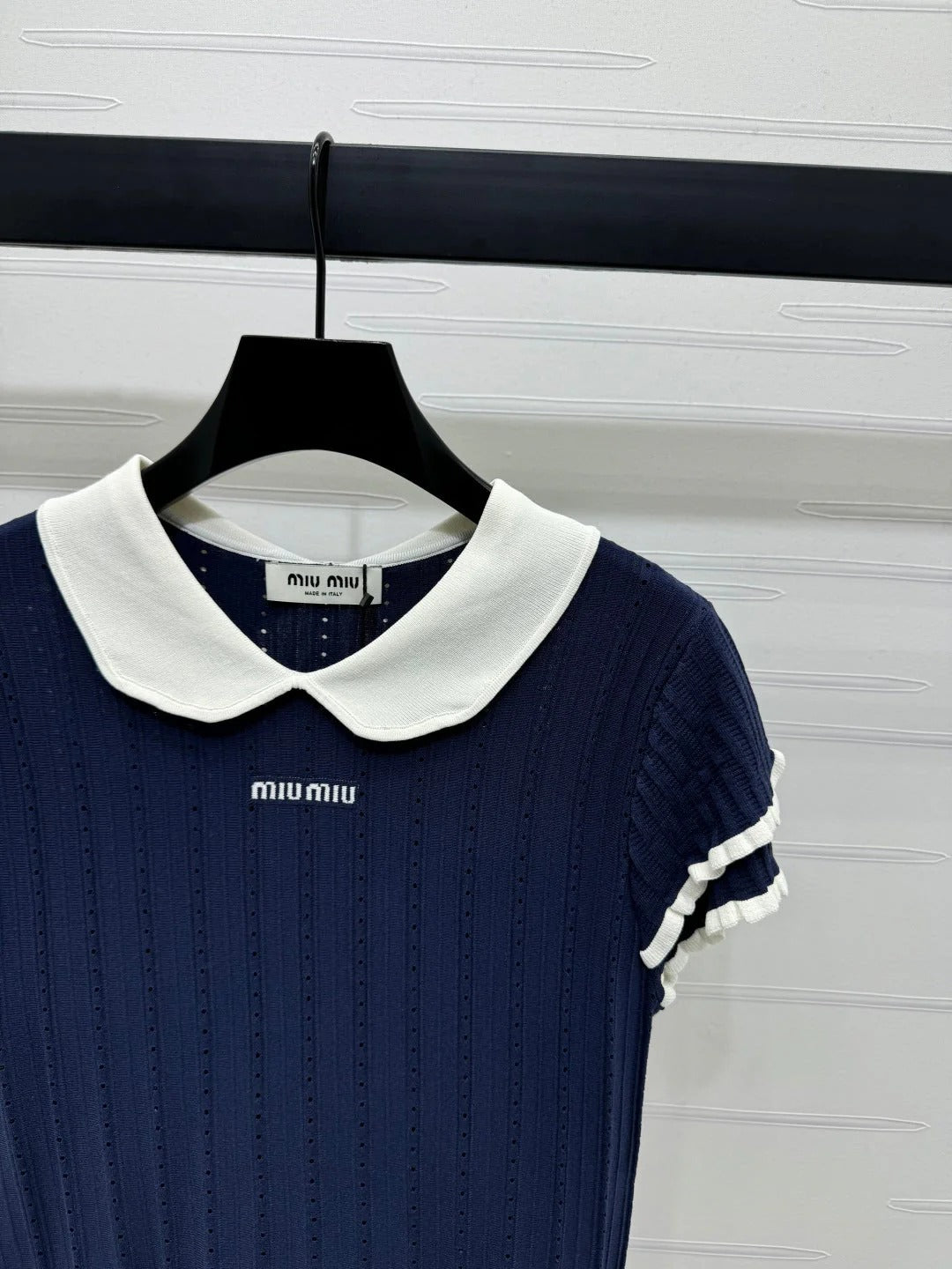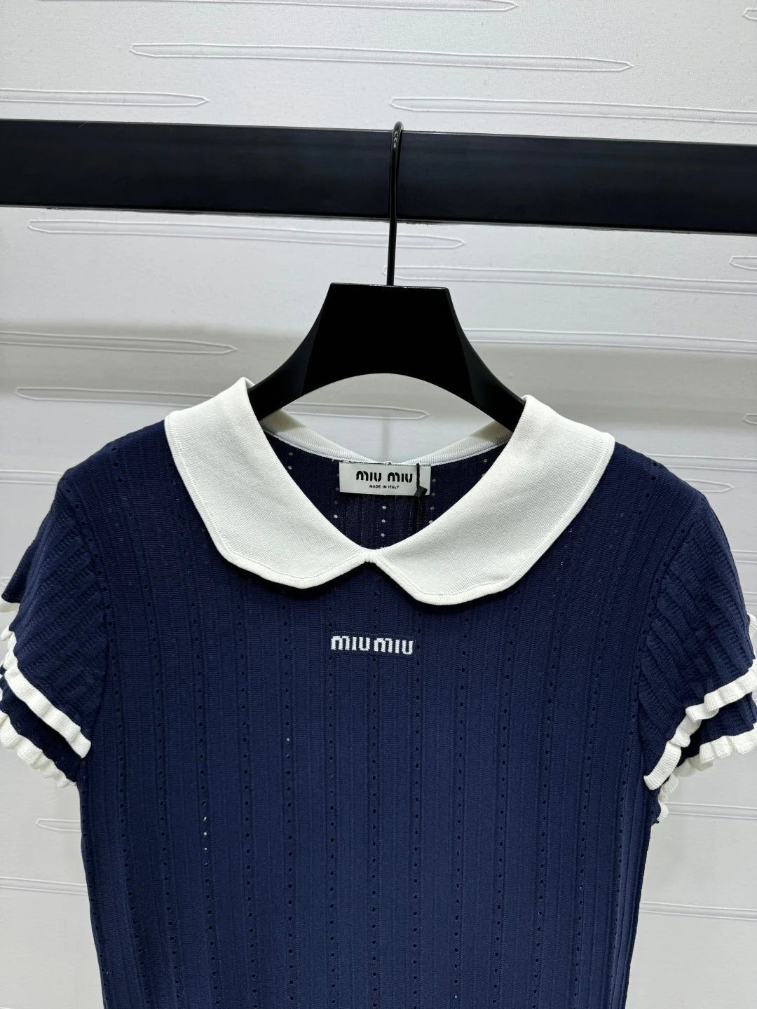 MIUMIU SHORT-SLEEVE PETER PAN COLLAR TOP 274827