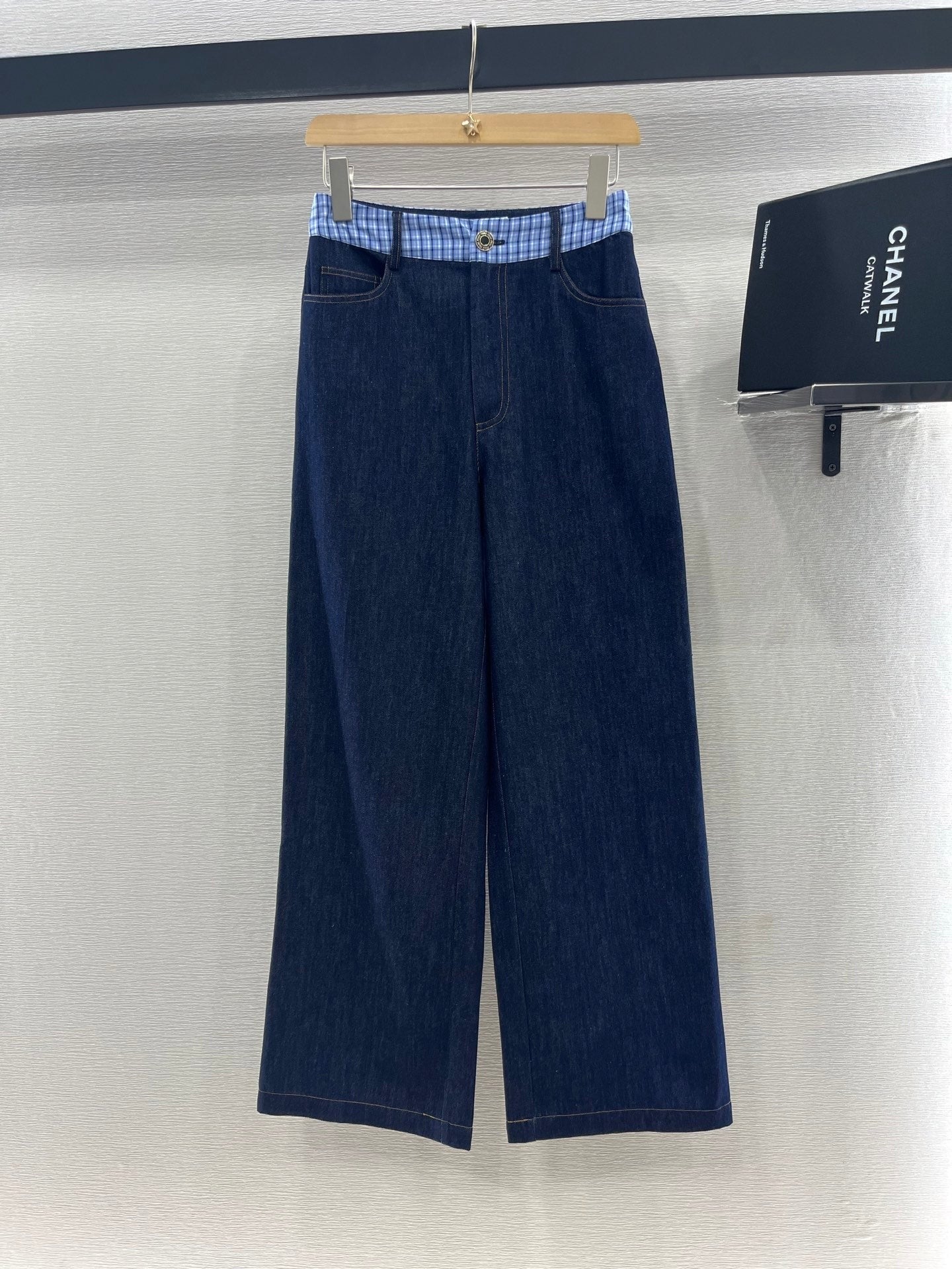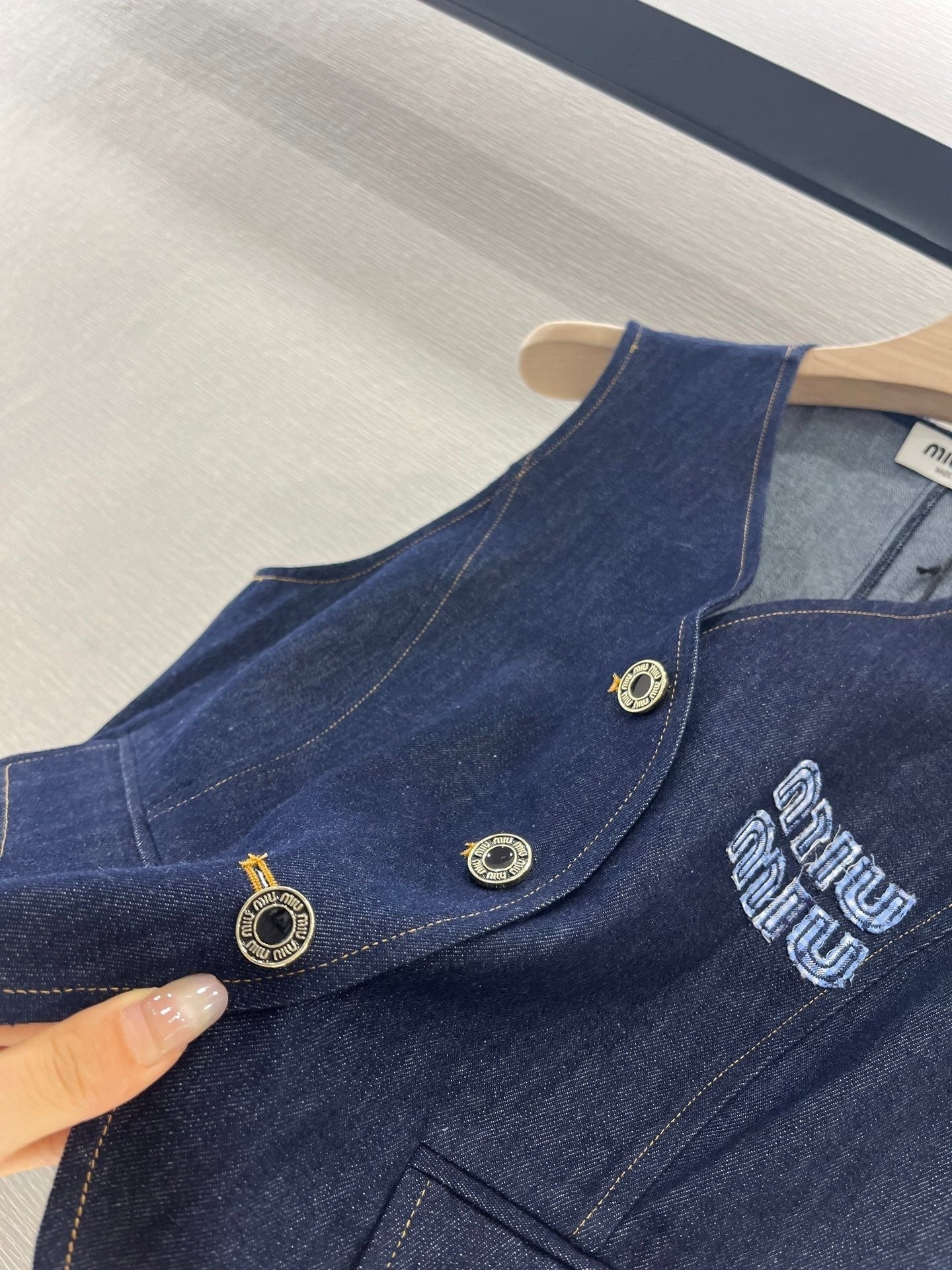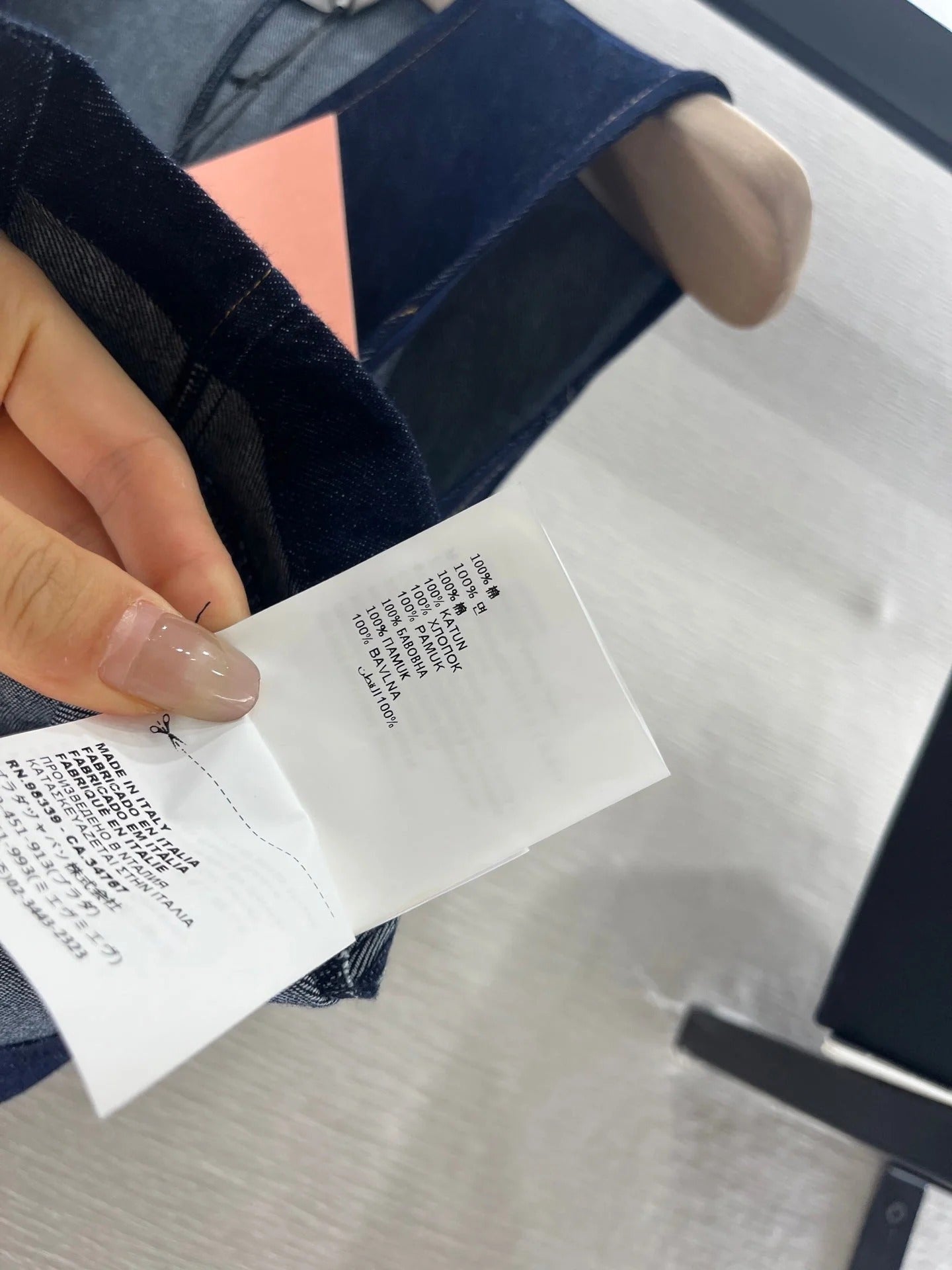 MIUMIU V-NECK BLAZER AND WIDE-LEG PANTS IN BLUE DENIM