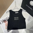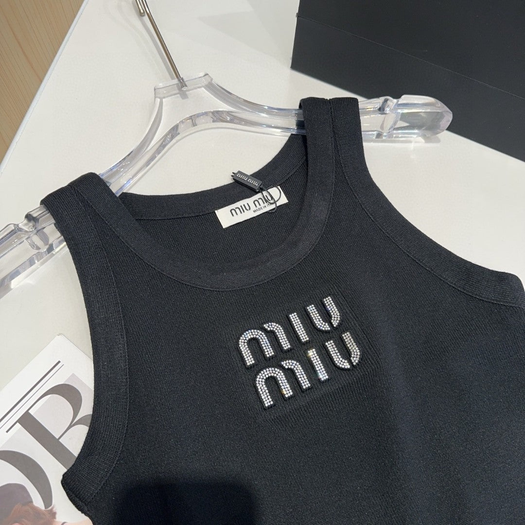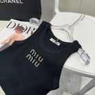 VISCOSE TANK TOP 643230 IN BLACK RIBBED KNIT WITH EMBELLISHED LOGO