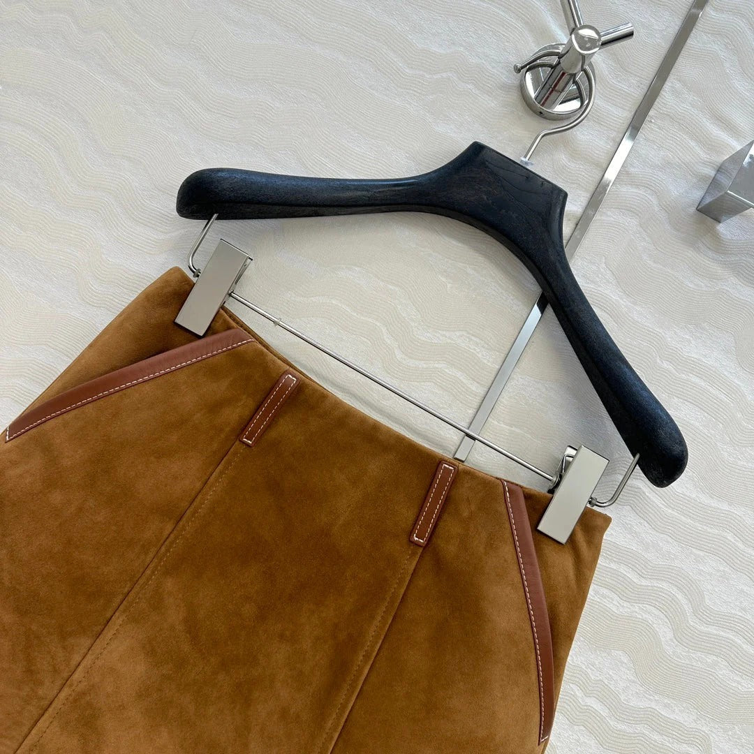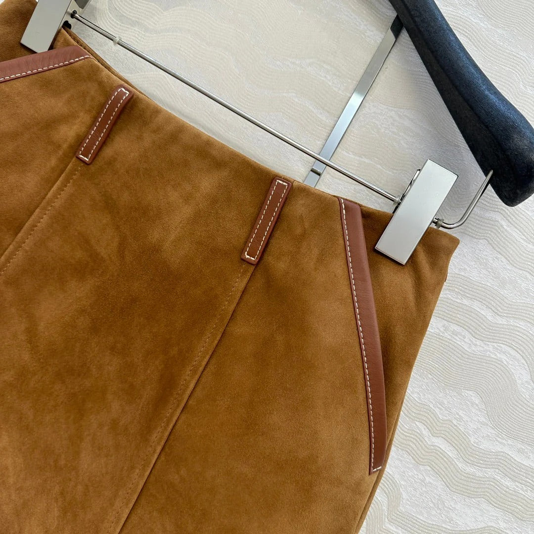 MIU MAHOGANY DOWN GOATSKIN SUEDE SKIRT 274613